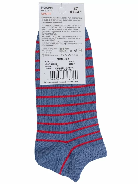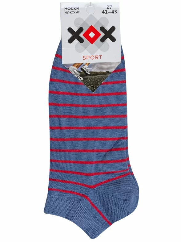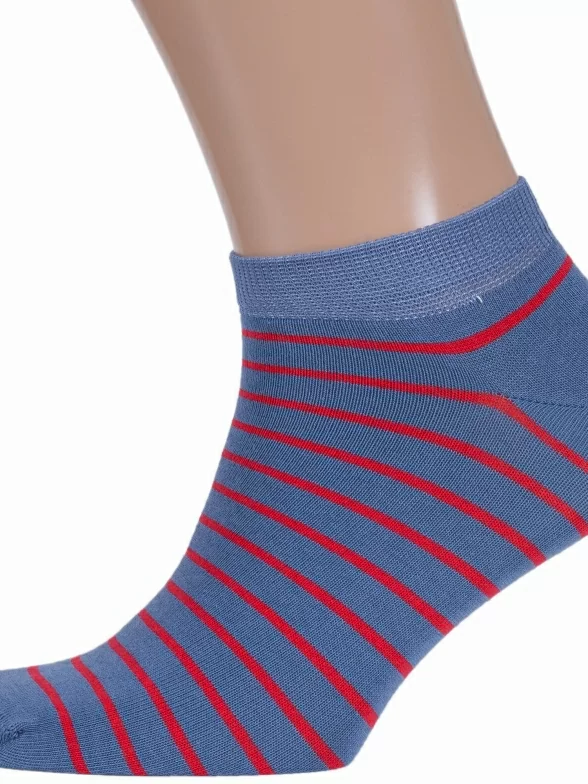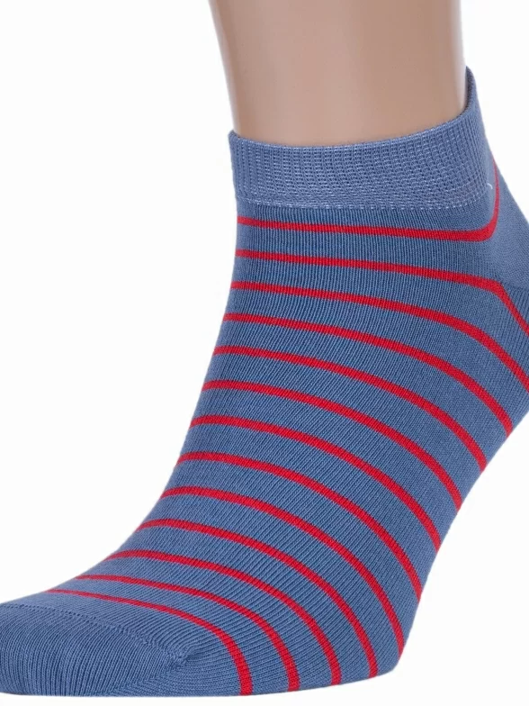 Летние короткие мужские носки, цвет многоцветные (мультиколор)-джинс, спортивные, классические, возможно бесшовные, принт (рисунок): полоски, с узором, состав: 80% хлопок, 15% полиамид, 5% эластан, арт. SPM-177. Производитель «ХОХ» Россия под брендом «Хох».