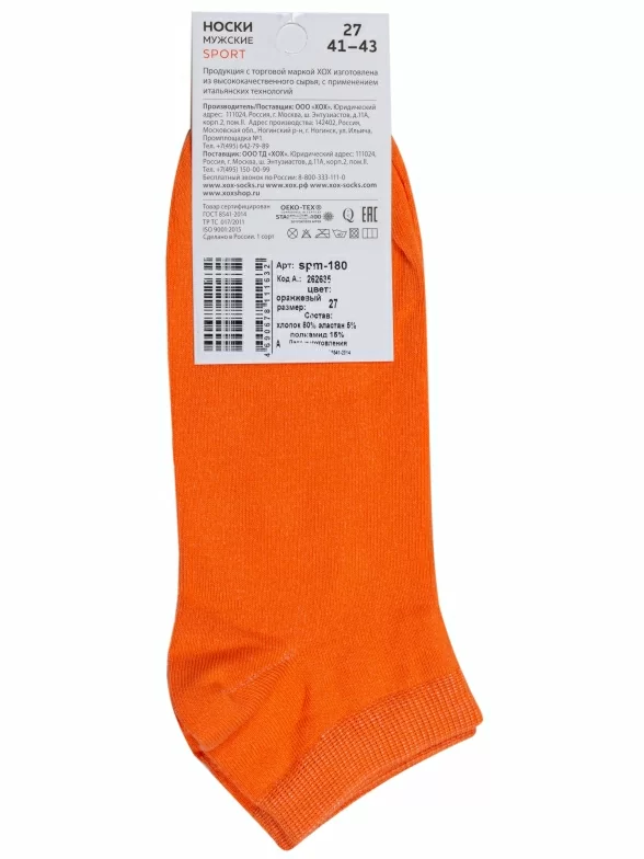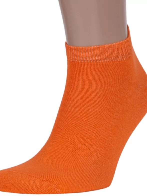 Летние короткие мужские носки, цвет оранжевый, классические, спортивные, повседневные, шов плоский, принт (рисунок): однотонный, без рисунков/узоров, состав: 80% хлопок, 15% полиамид, 5% эластан, арт. SPM-180. Производитель «ХОХ» Россия под брендом «Хох».