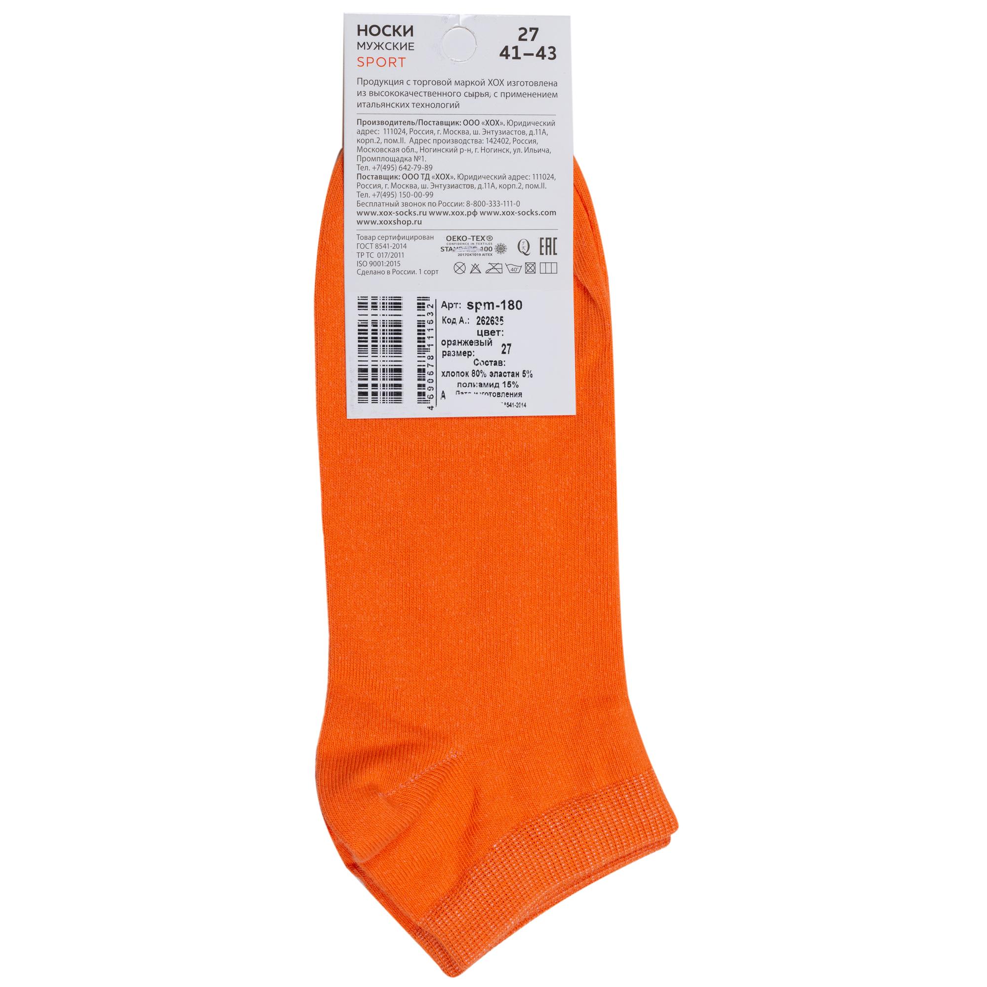 Летние короткие мужские носки, цвет оранжевый, спортивные, классические, возможно бесшовные, принт (рисунок): однотонный, без рисунков/узоров, состав: 80% хлопок, 15% полиамид, 5% эластан, арт. SPM-180. Производитель «ХОХ» Россия под брендом «Хох».