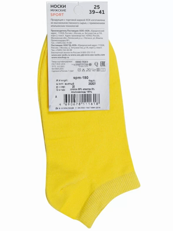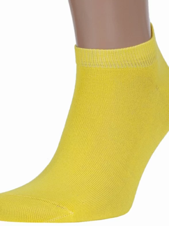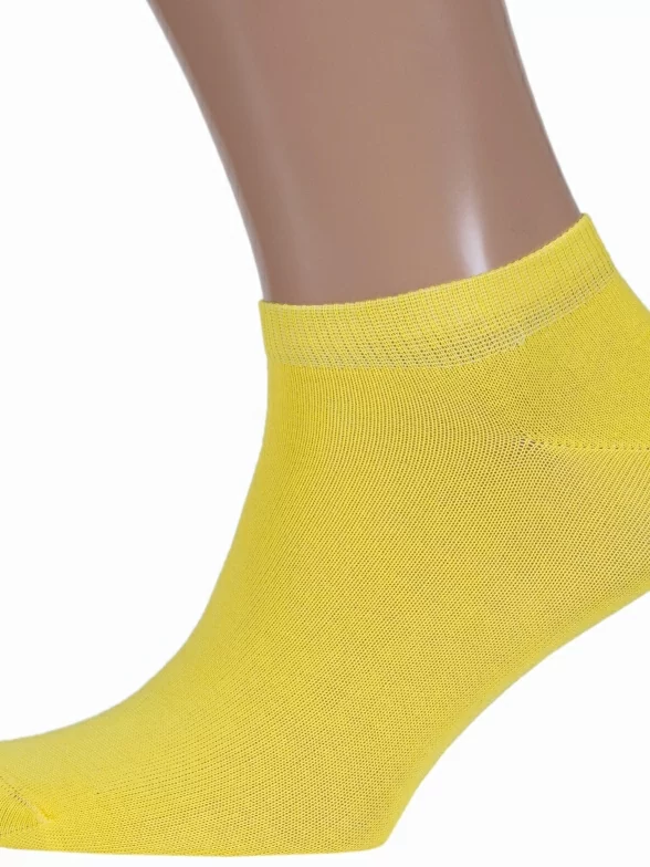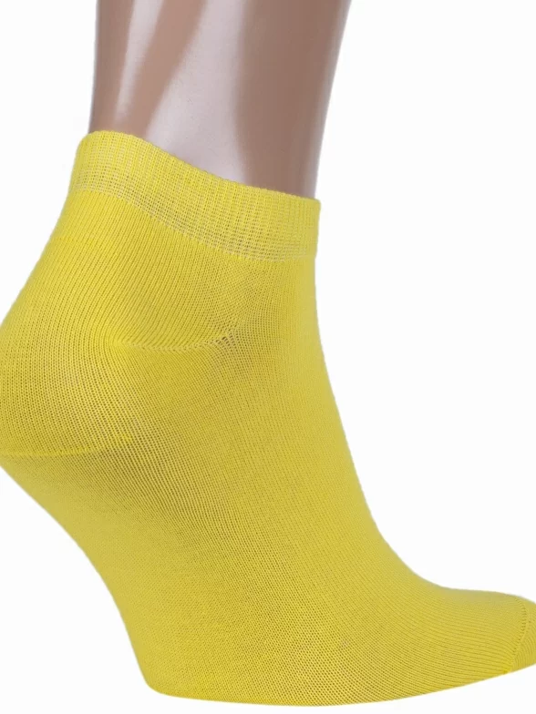 Летние короткие мужские носки, цвет желтый, спортивные, классические, возможно бесшовные, принт (рисунок): однотонный, без рисунков/узоров, состав: 80% хлопок, 15% полиамид, 5% эластан, арт. SPM-180. Производитель «ХОХ» Россия под брендом «Хох».