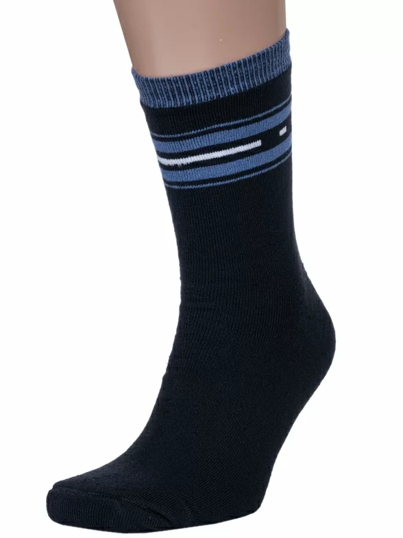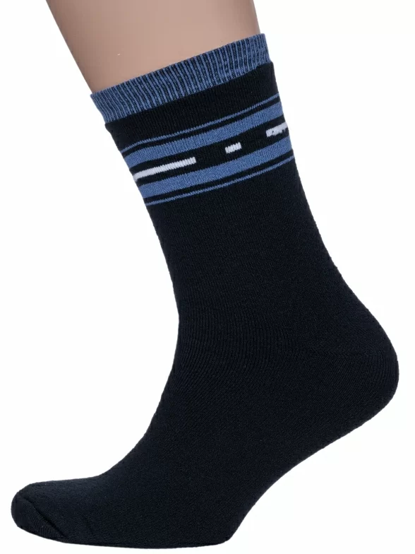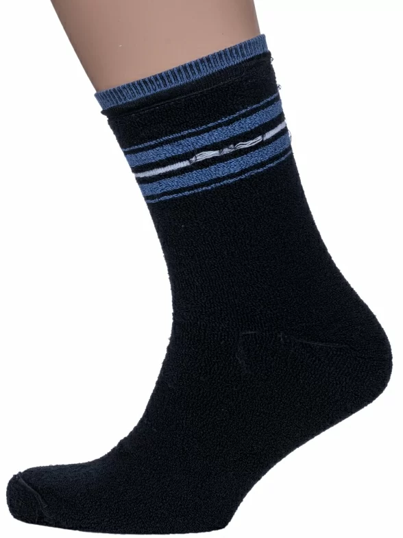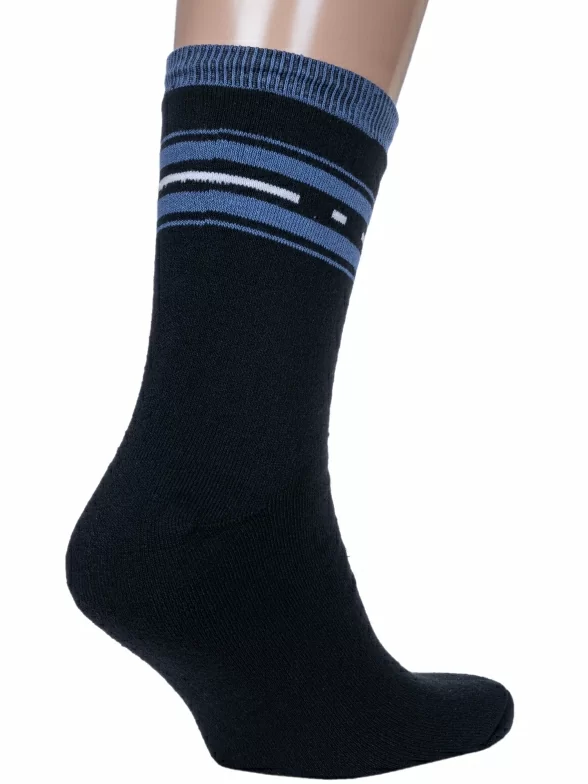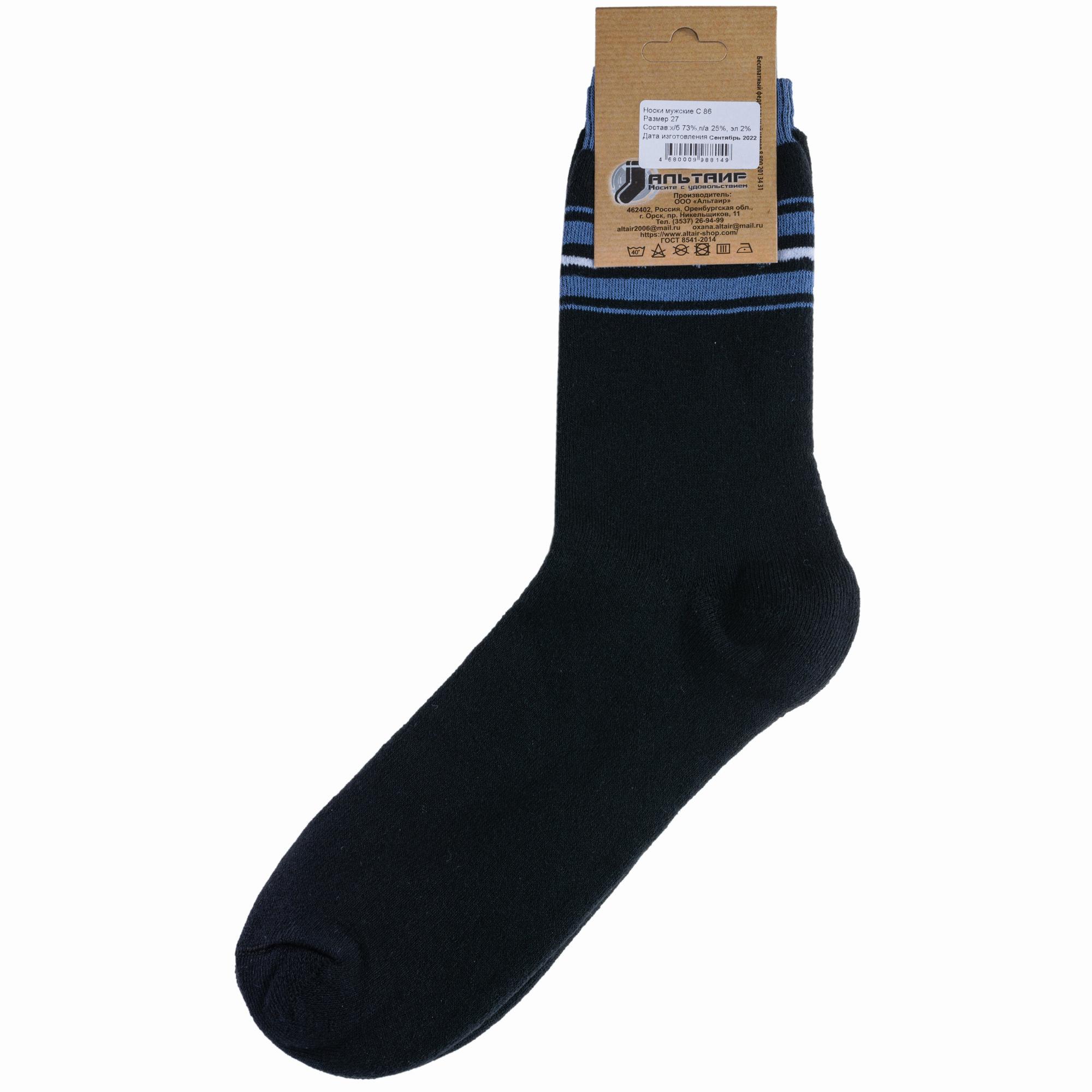 Зимние средней длины мужские носки, цвет черный, теплые, махровые, классические, шов обычный (не бесшовные), принт (рисунок): полоски, контрастная резинка чулок, с узором, состав: 73% хлопок, 25% полиамид, 2% эластан, арт. С86. Производитель «ООО Альтаир, г. Орск, Оренбургская обл, Россия» под брендом «Альтаир».