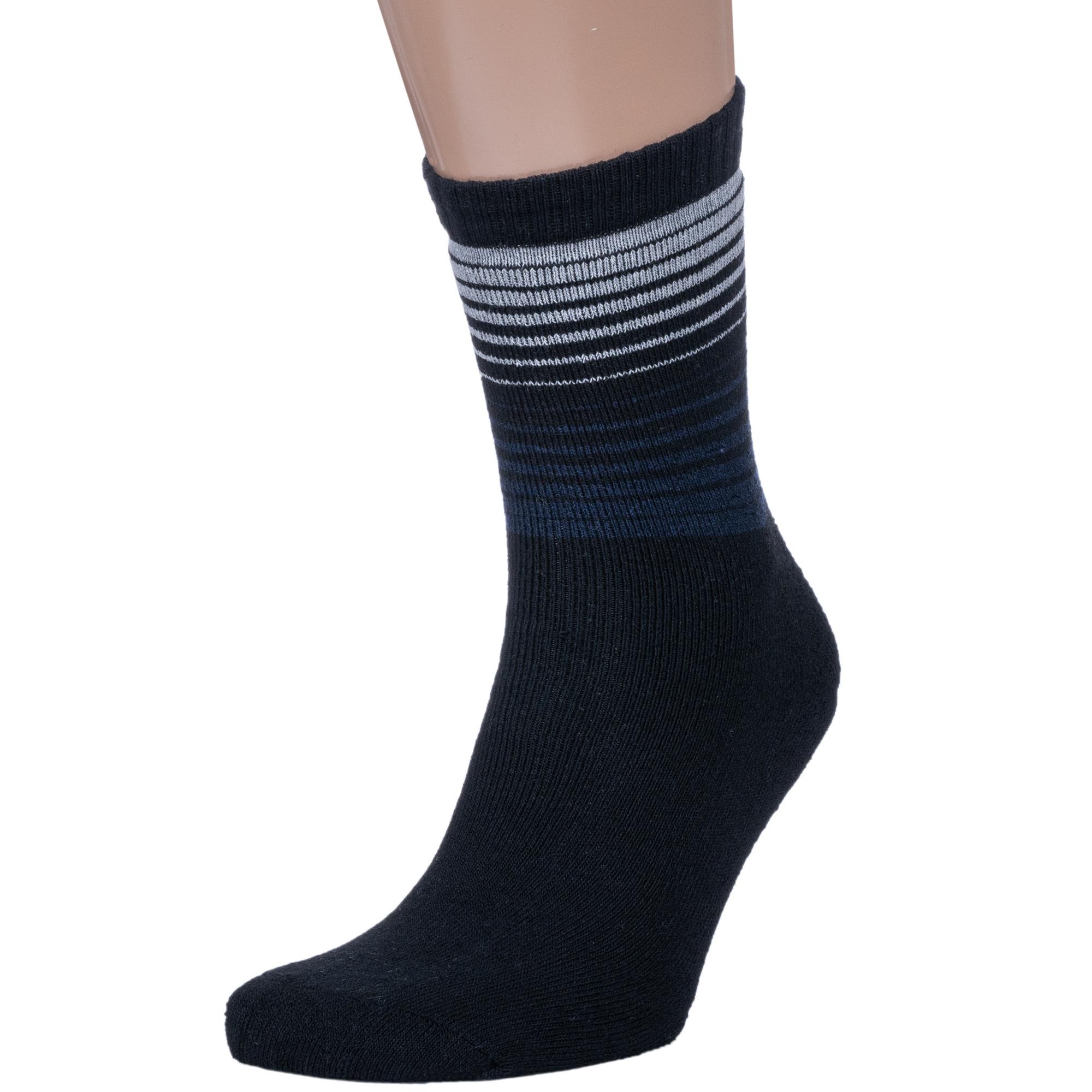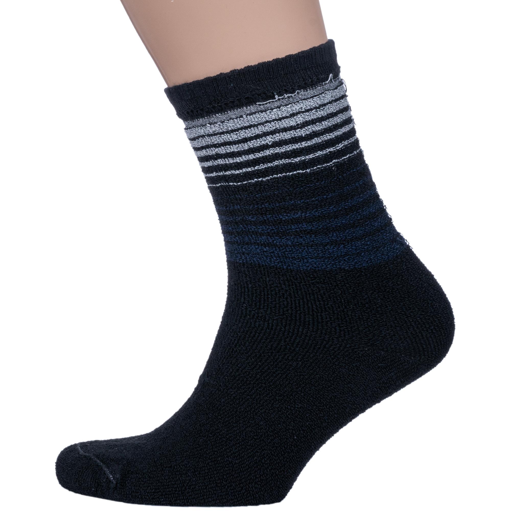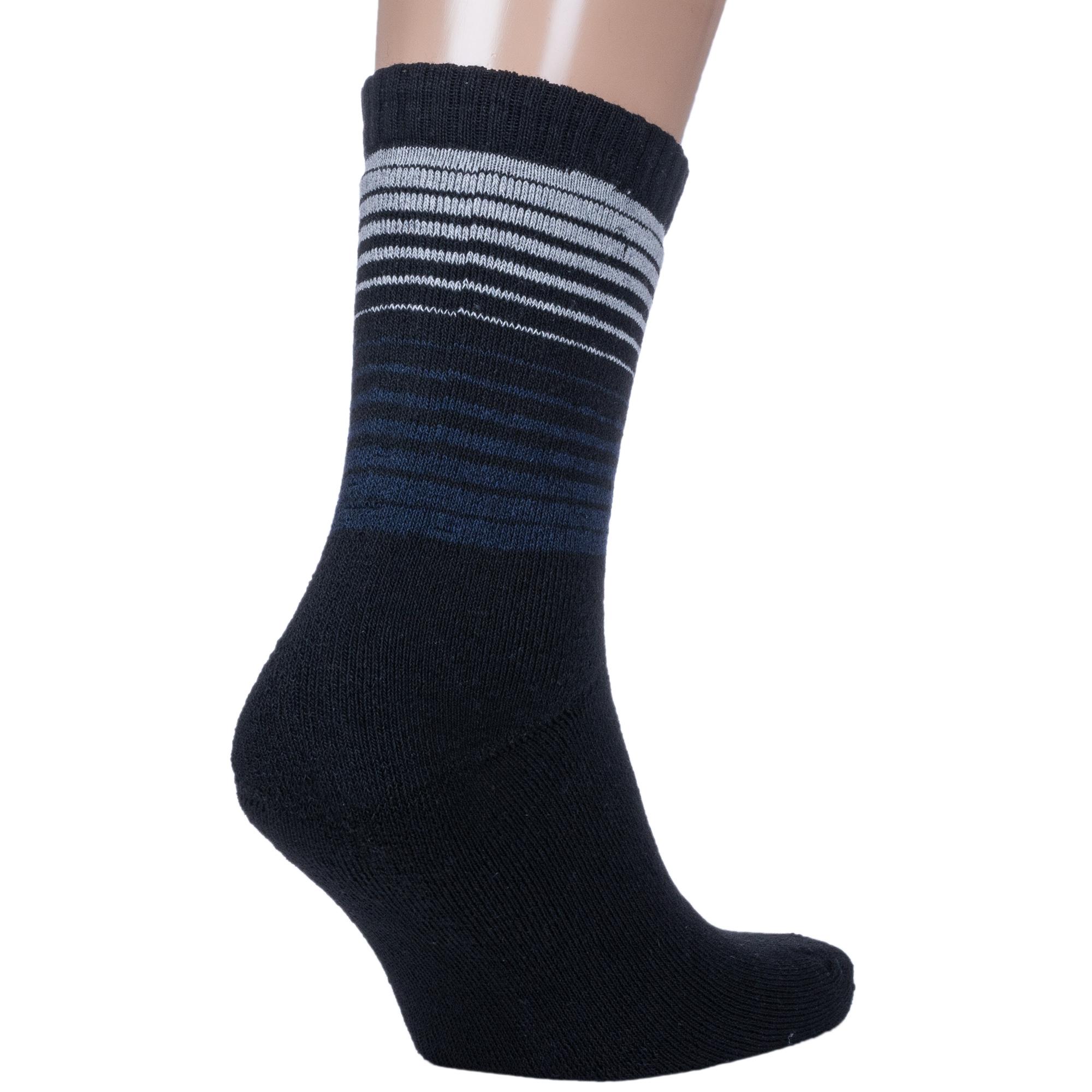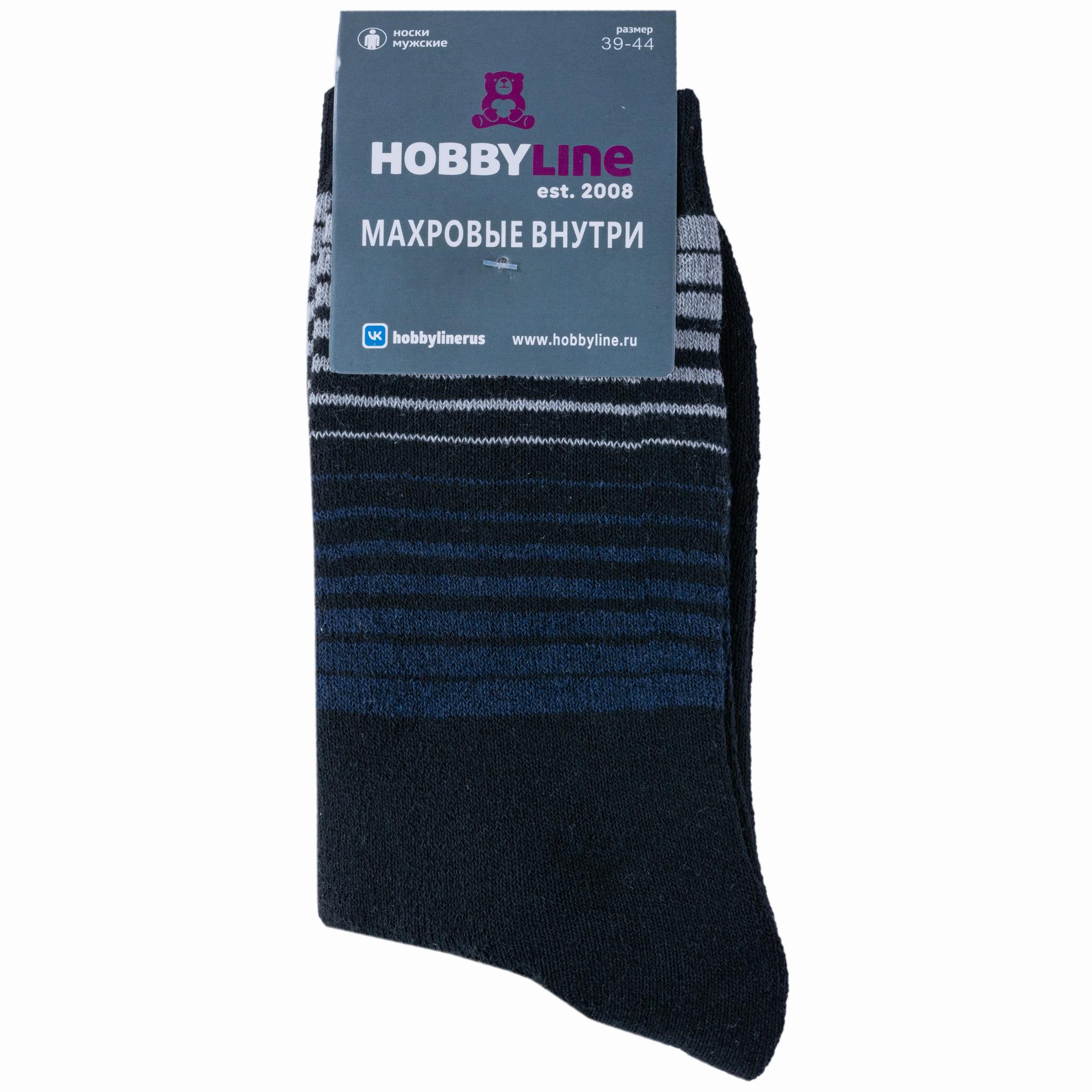 Зимние средней длины мужские носки, цвет черный, теплые, махровые, классические, шов обычный (не бесшовные), принт (рисунок): полоски, с узором, состав: 80% хлопок, 17% полиэстер, 3% эластан, арт. 9885. Производитель «Китай, страна бренда - Россия» под брендом «Hobby line».