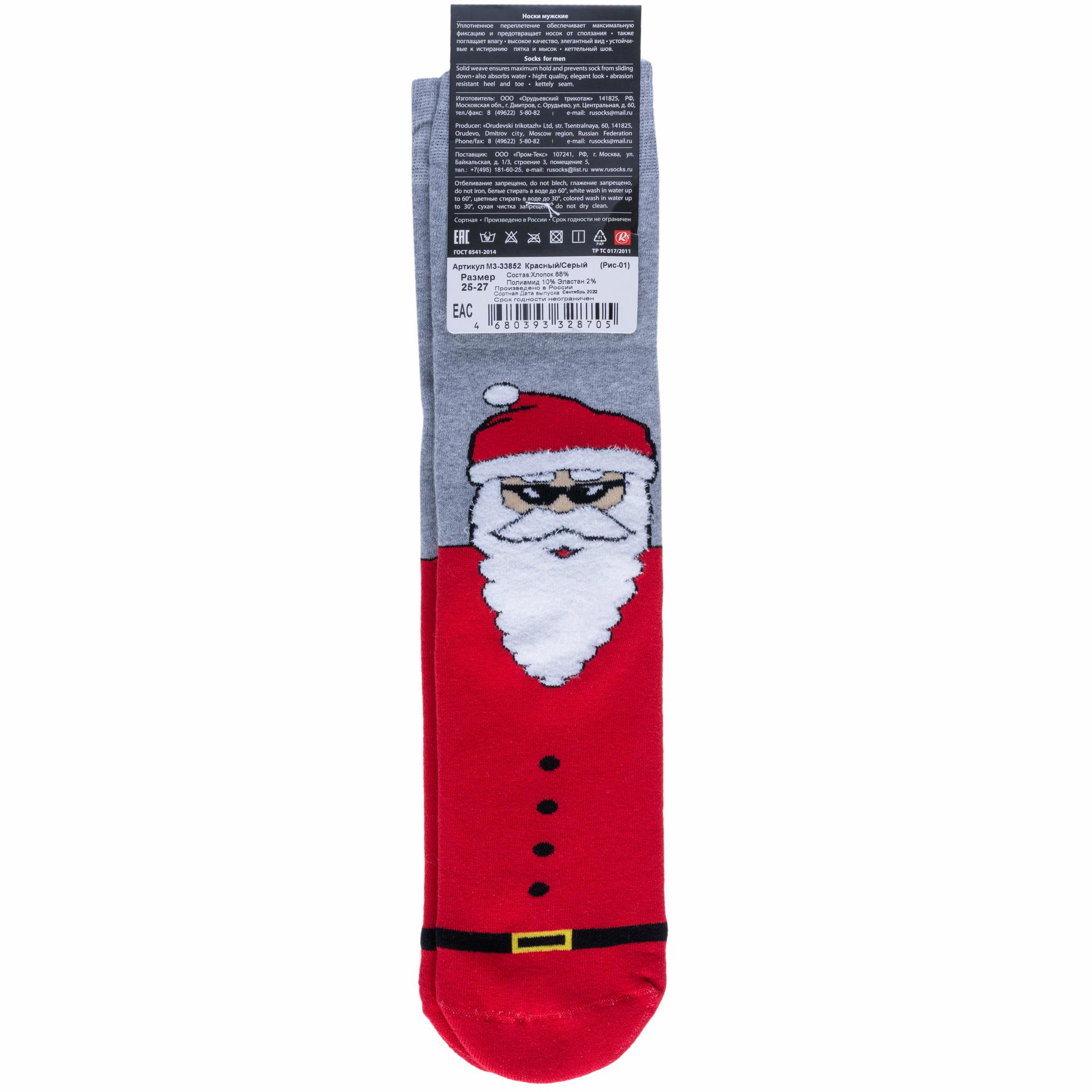 Зимние средней длины мужские носки, цвет многоцветные (мультиколор)-красный, теплые, махровые, повседневные, шов кеттельный (бесшовная технология), принт (рисунок): пушистый, новый год, зимний, с узором, крупные контрастные рисунки, состав: 88% хлопок, 10% полиамид, 2% эластан, арт. М3-33852. Производитель «ООО Орудьевский трикотаж, Россия» под брендом «Rusocks (орудьевский трикотаж)».