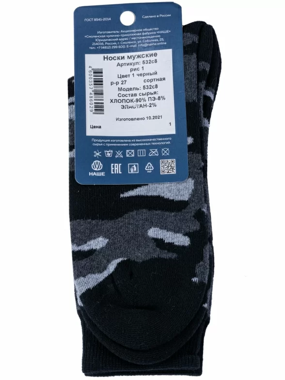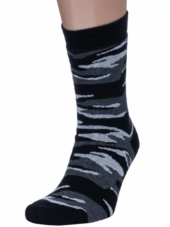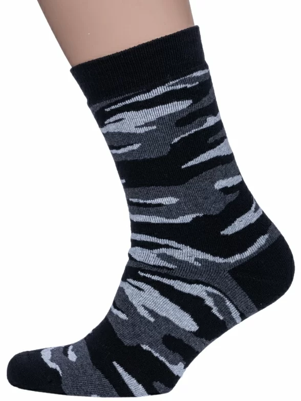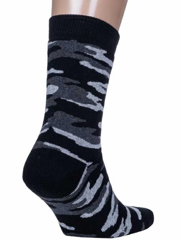 Зимние средней длины мужские носки, цвет темно-серый, теплые, махровые, повседневные, шов обычный (не бесшовные), принт (рисунок): милитари, с узором, состав: 90% хлопок, 8% полиэстер, 2% эластан, арт. 532С8. Производитель «Смоленская чулочная фабрика, Россия» под брендом «Наше смоленской чулочной фабрики».