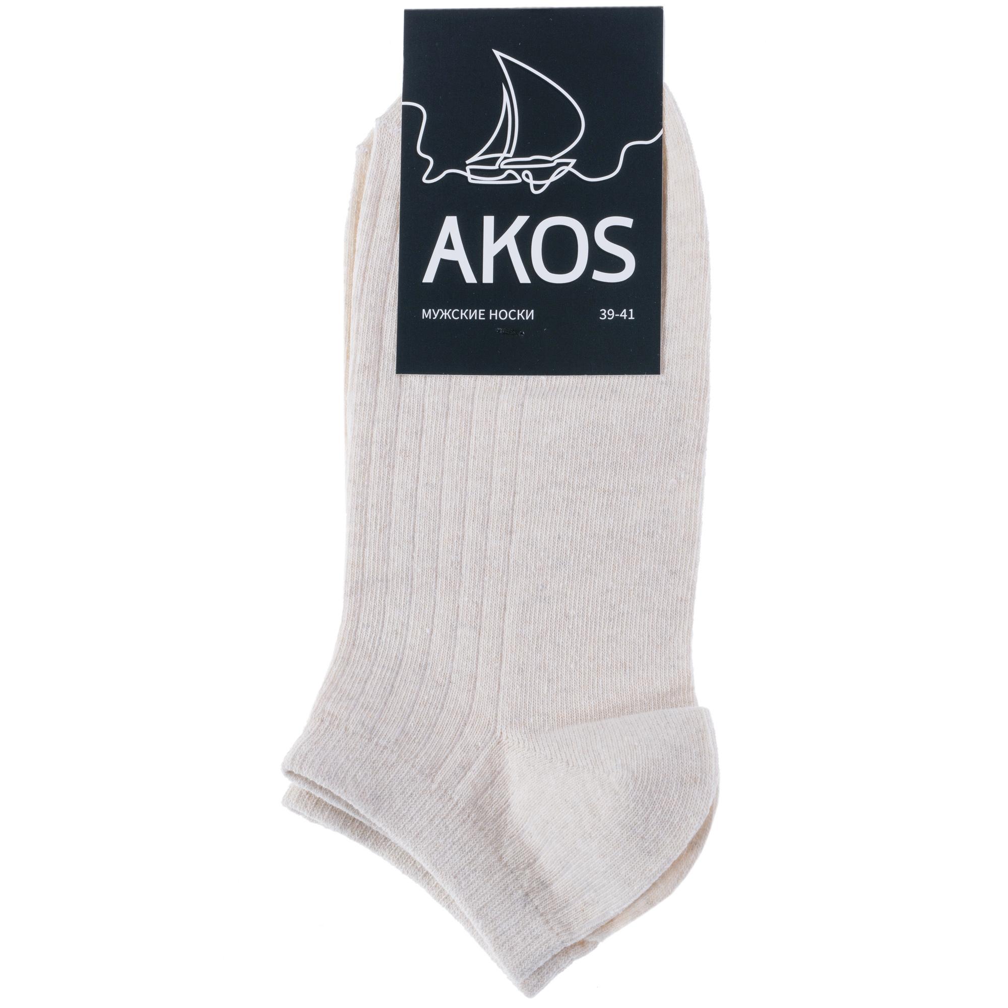 Круглогодичные или летние короткие мужские носки, цвет кремовый-бежевый, спортивные, классические, шов обычный (не бесшовные), принт (рисунок): в рубчик, однотонный, состав: 44% хлопок, 30% полиэстер, 23% полиамид, 3% эластан, арт. R46N1. Производитель «ООО «АКОС ТЭКС», Московская область, Россия» под брендом «Akos».