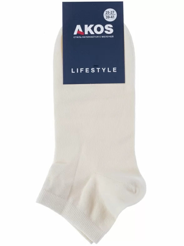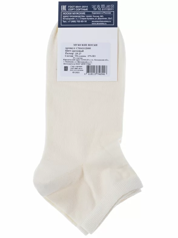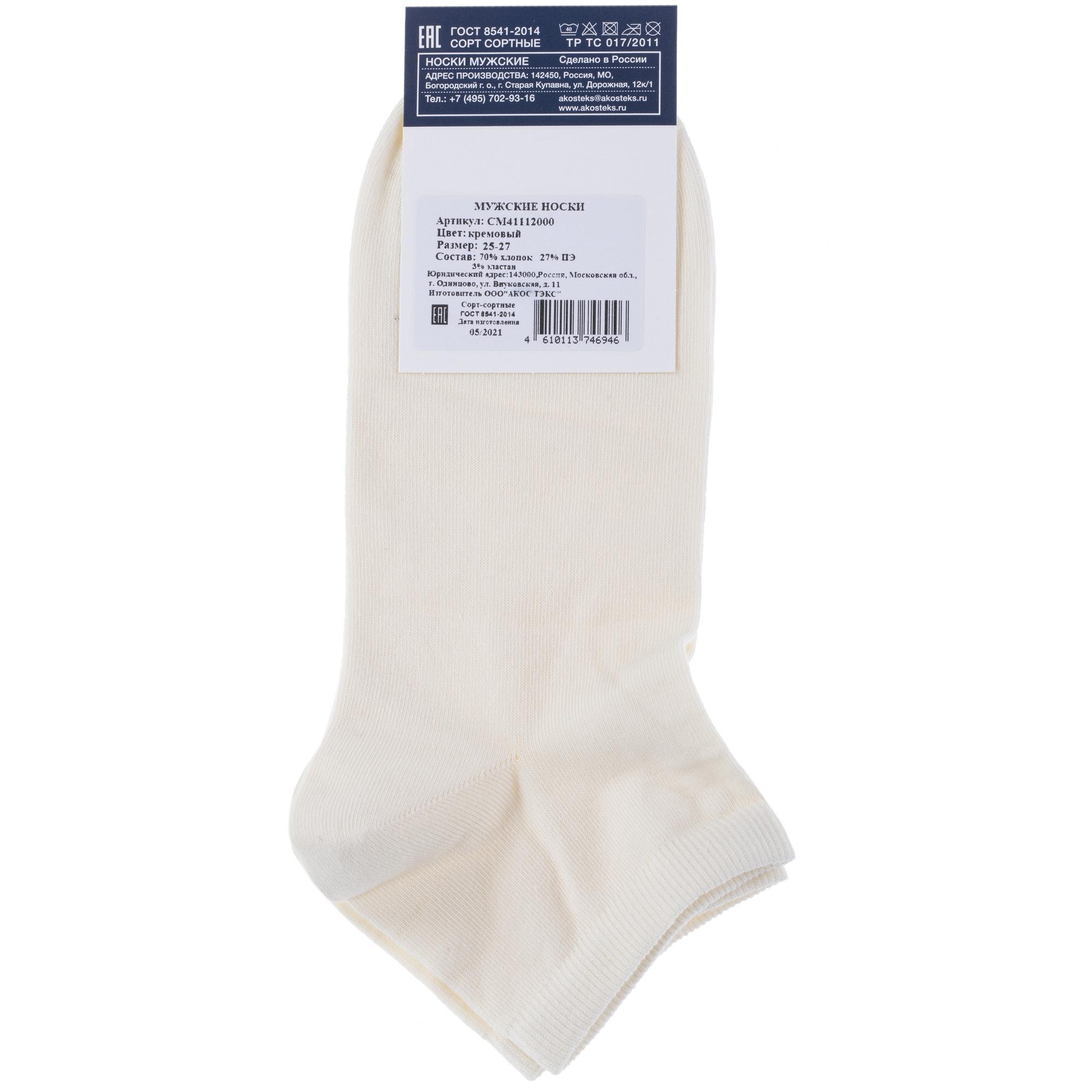 Круглогодичные короткие мужские носки, цвет кремовый-бежевый, классические, шов кеттельный (бесшовная технология), принт (рисунок): однотонный, без рисунков/узоров, состав: 70% хлопок, 27% полиамид, 3% эластан, арт. CM41112 000. Производитель «ООО «АКОС ТЭКС», Московская область, Россия» под брендом «Akos».