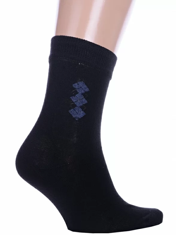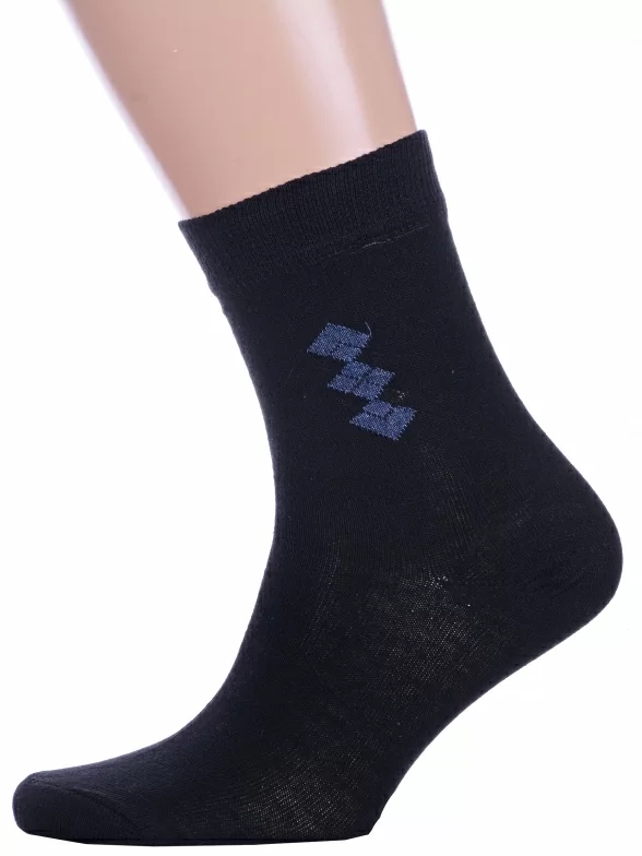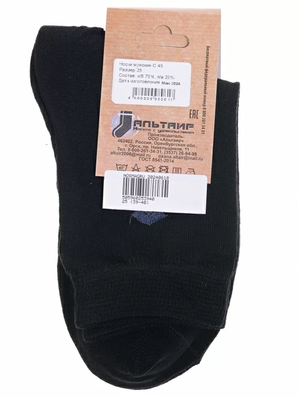 Межсезонные или летние укороченные мужские носки, цвет черный, классические, шов обычный (не бесшовные), принт (рисунок): аргайл, однотонный, небольшой рисунок, состав: 75% хлопок, 25% полиамид, арт. С45. Производитель «ООО Альтаир, г. Орск, Оренбургская обл, Россия» под брендом «Альтаир».