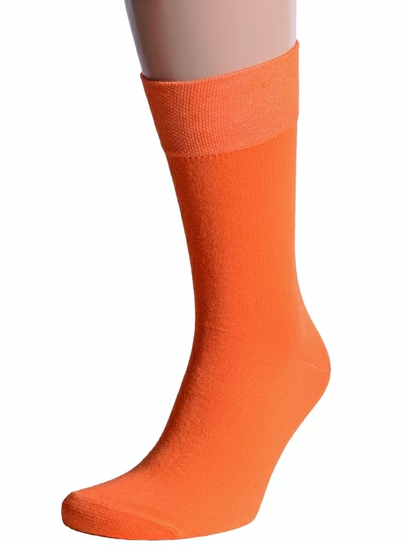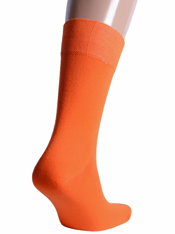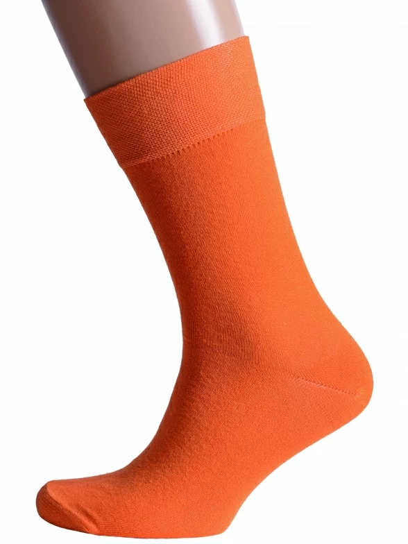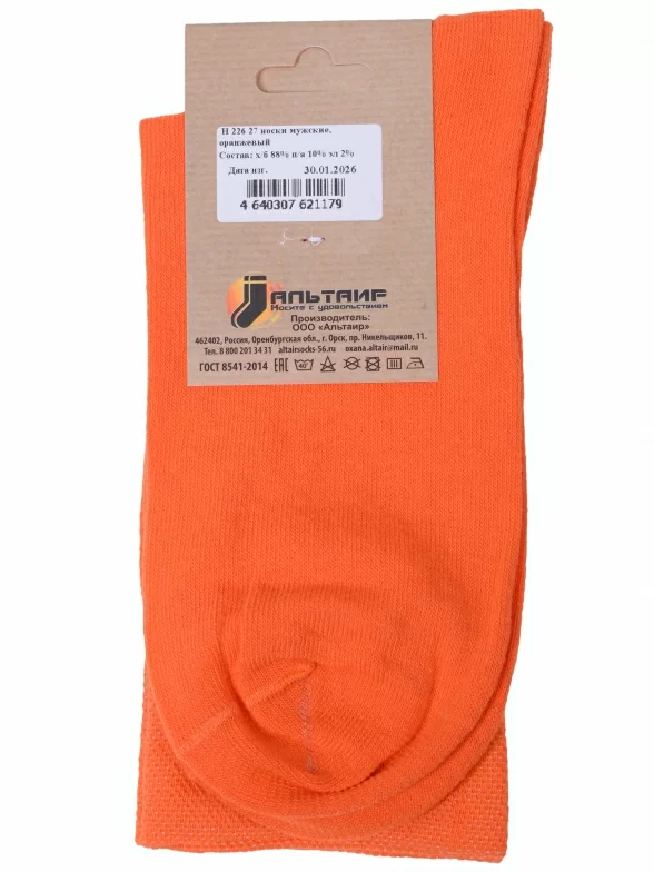 Круглогодичные средней длины мужские носки, цвет оранжевый, классические, шов обычный (не бесшовные), принт (рисунок): однотонный, без рисунков/узоров, состав: 80% хлопок, 18% полиамид, 2% эластан, арт. H226. Производитель «ООО Альтаир, г. Орск, Оренбургская обл, Россия» под брендом «Альтаир».