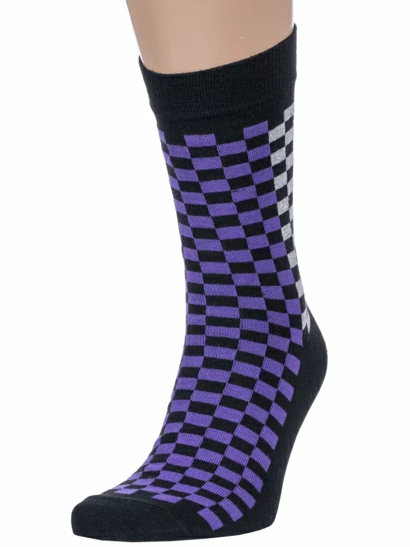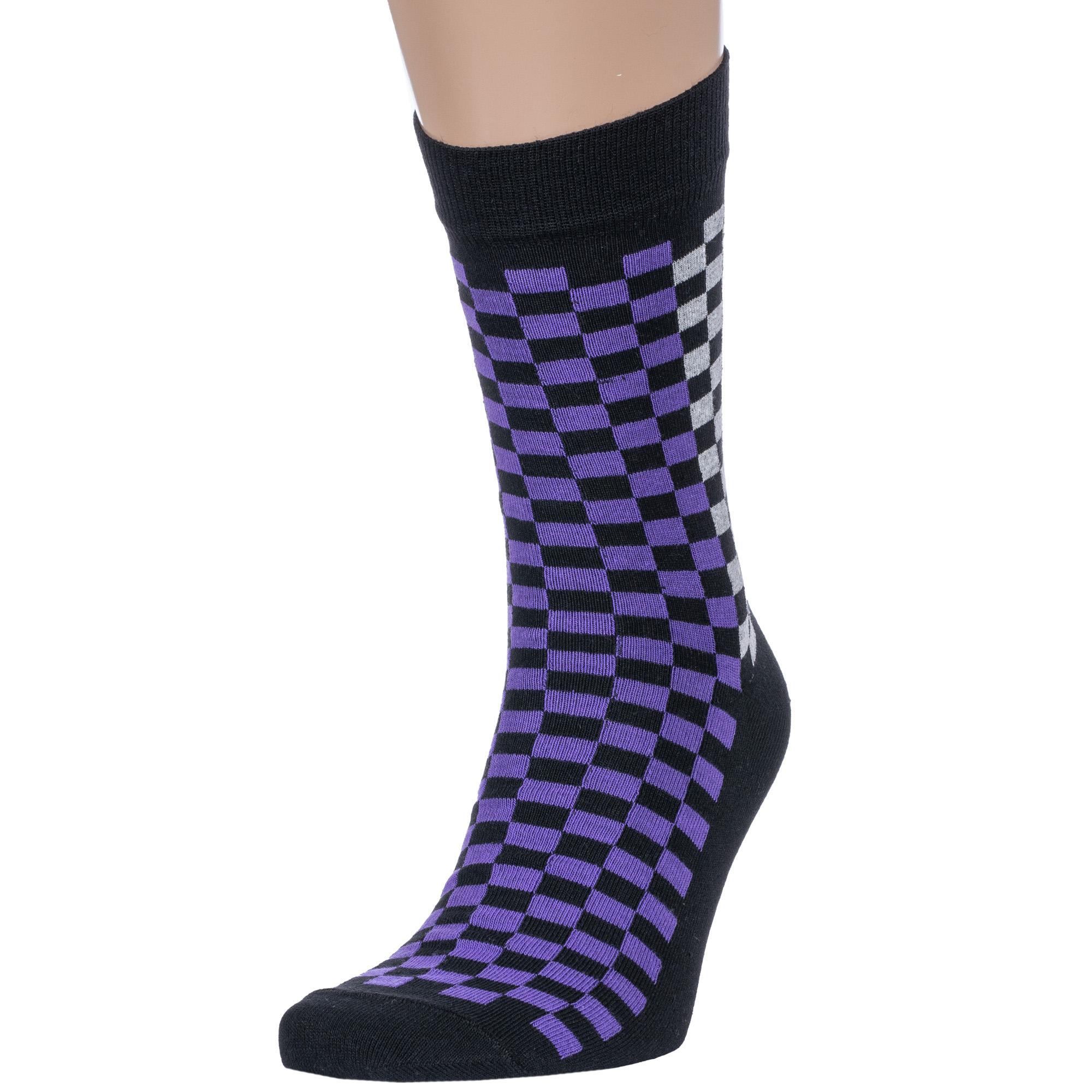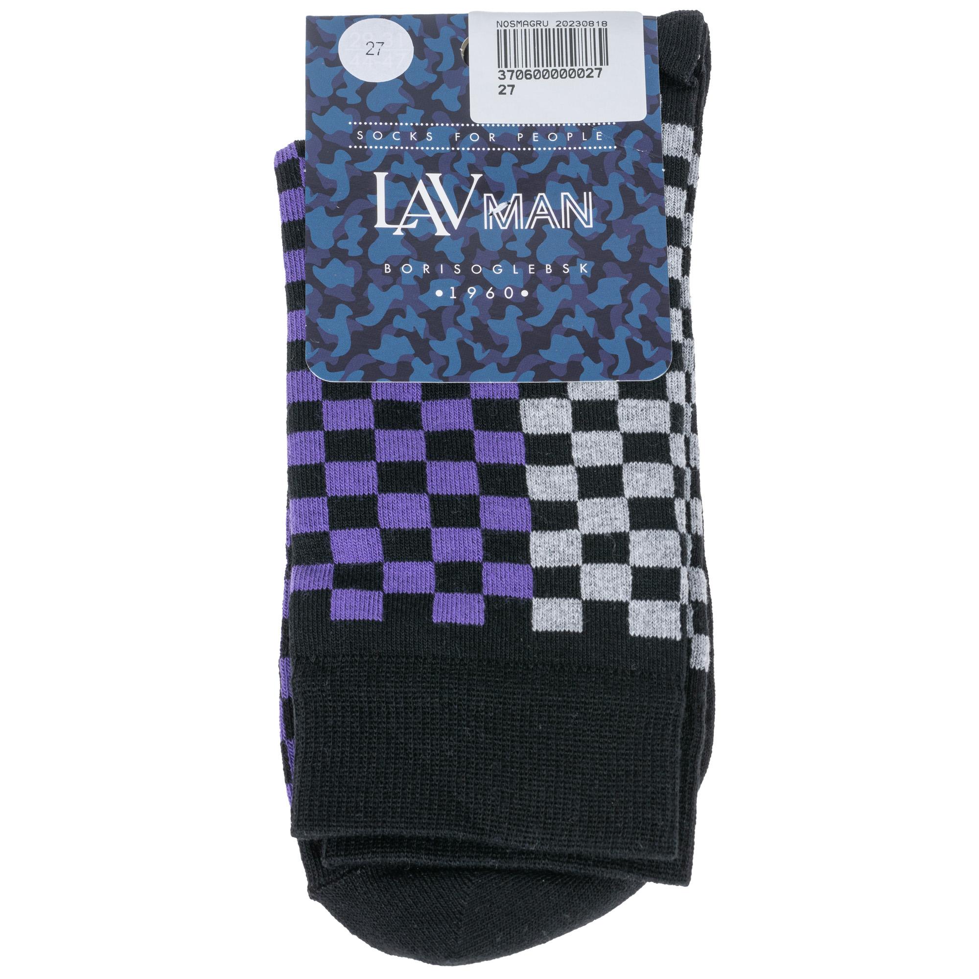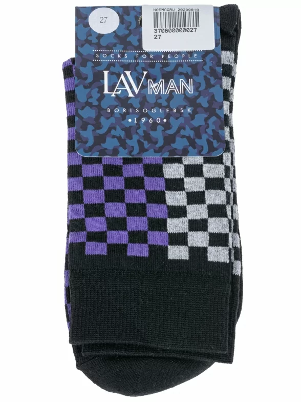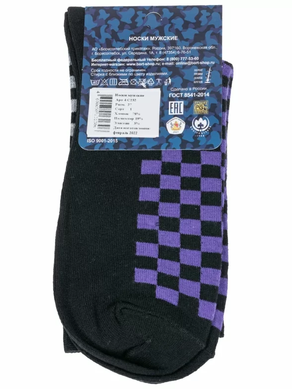 Круглогодичные средней длины мужские носки, цвет черный, повседневные, шов обычный (не бесшовные), принт (рисунок): клетка, с узором, состав: 78% хлопок, 19% полиэстер, 3% эластан, арт. 4С232. Производитель «АО Борисоглебский трикотаж, Воронежская обл, Россия» под брендом «Борисоглебский трикотаж».