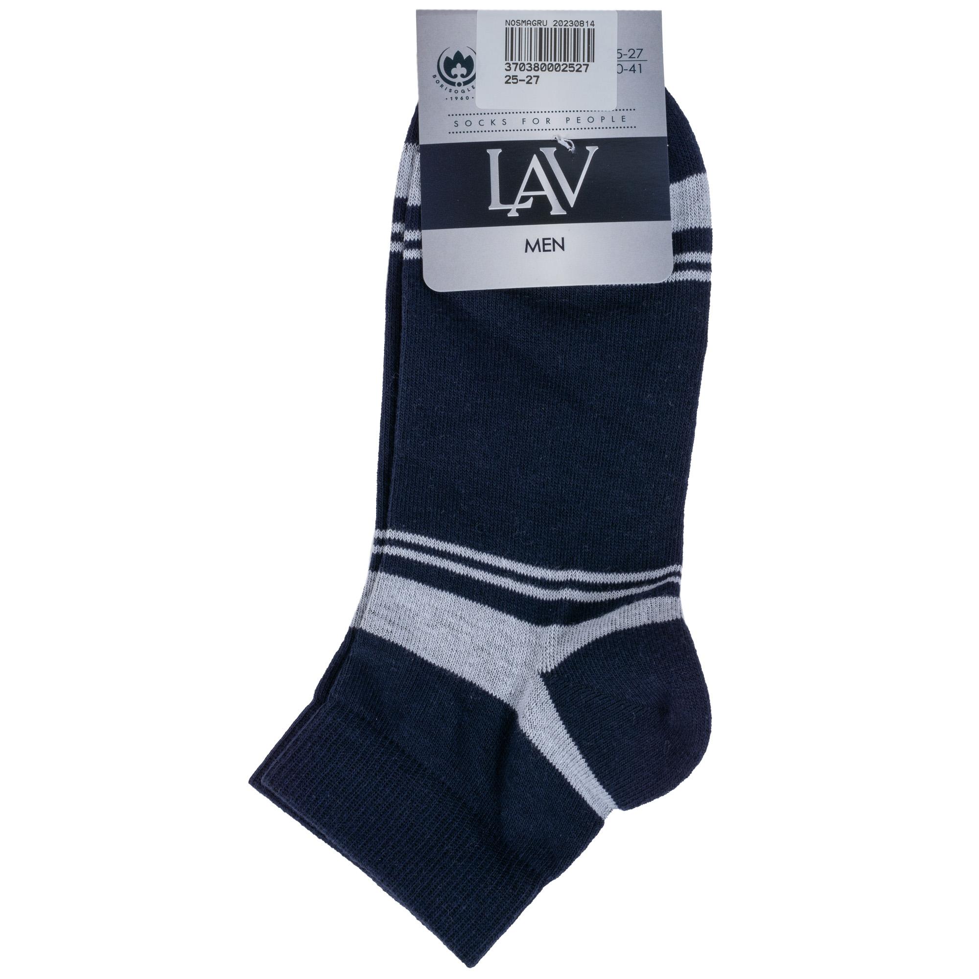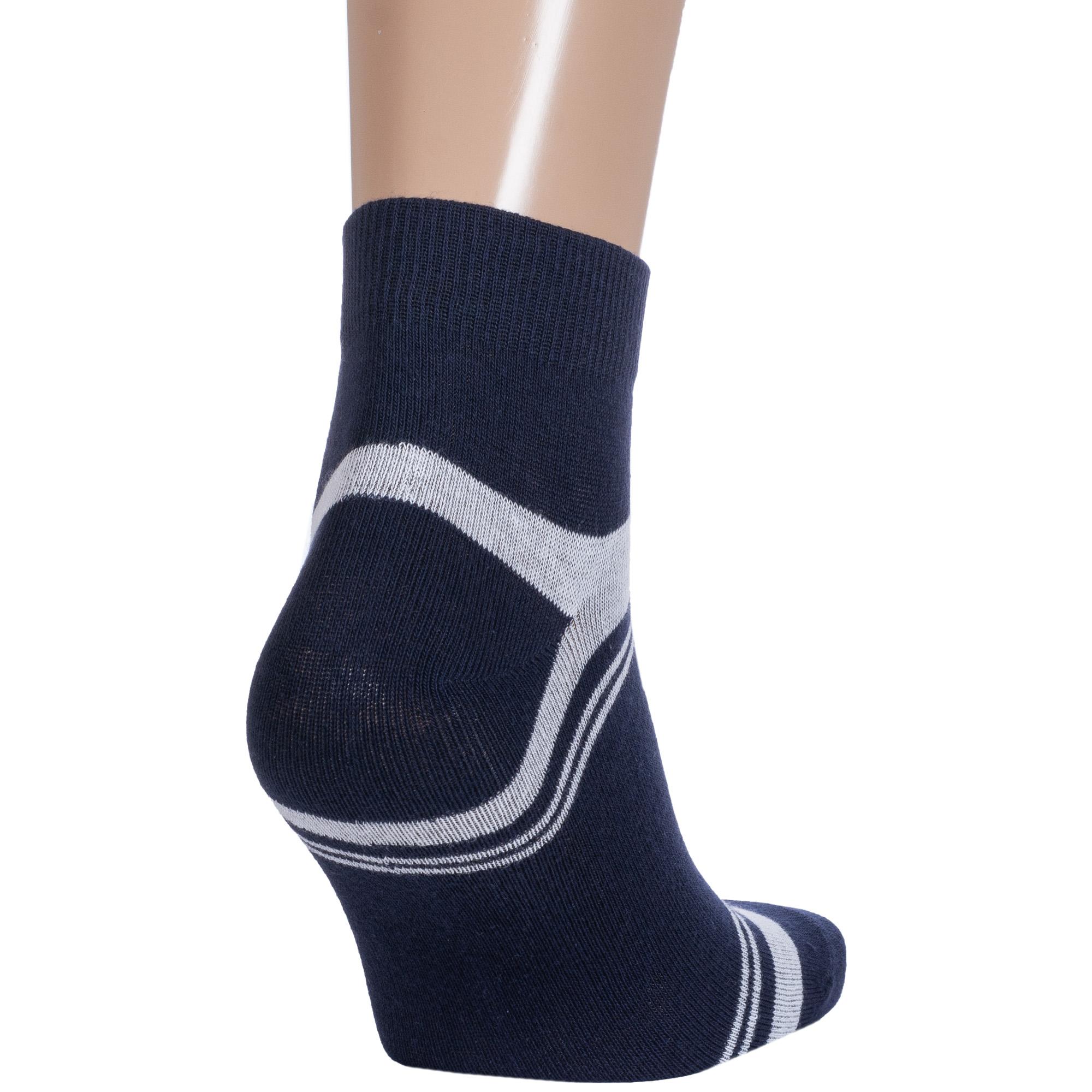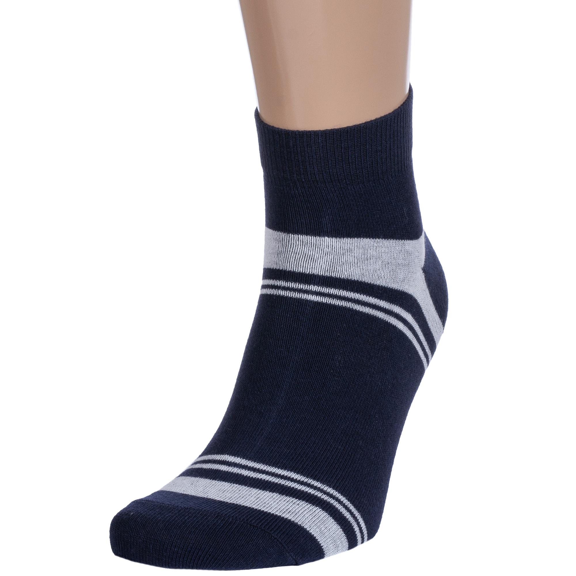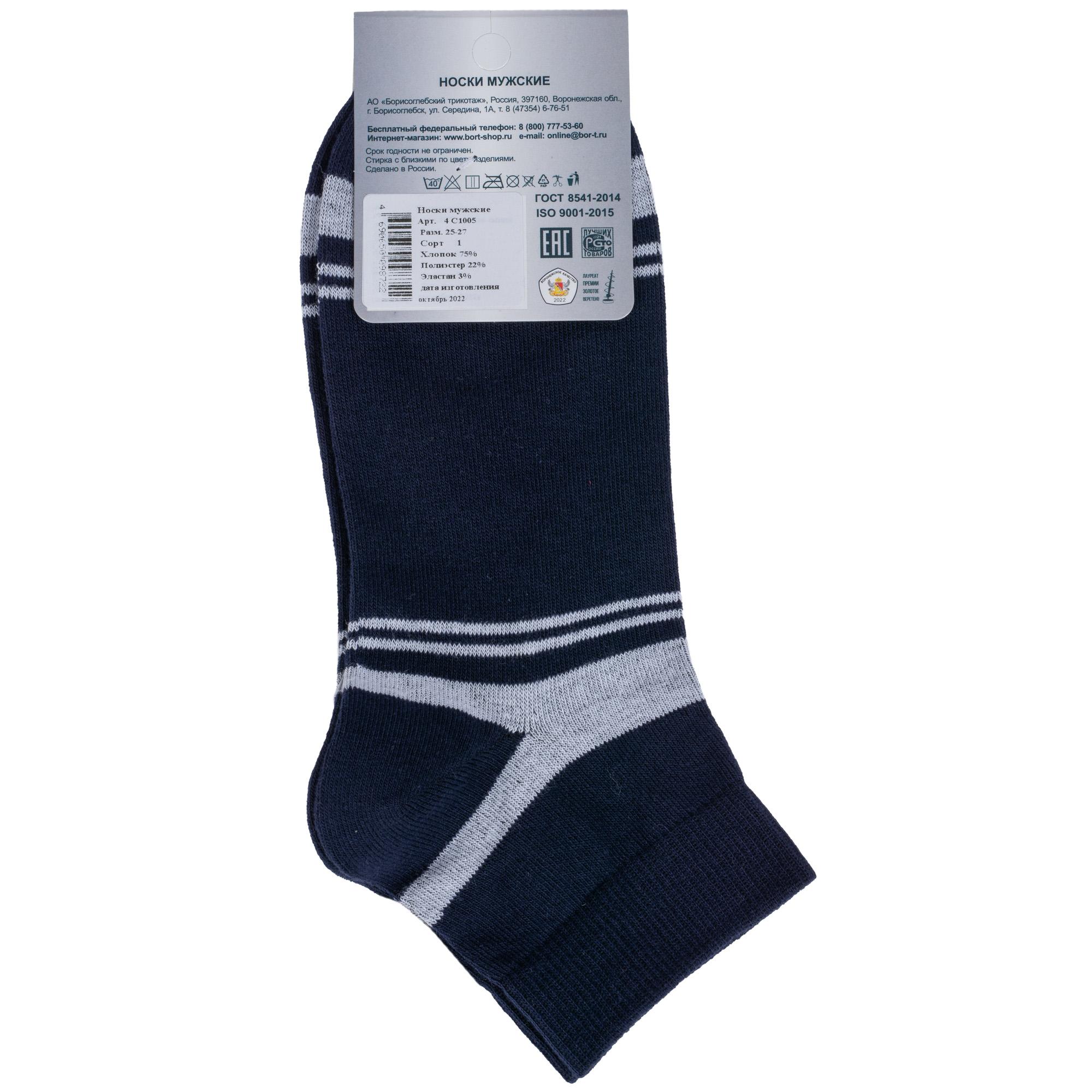 Круглогодичные укороченные мужские носки, цвет синий, классические, шов обычный (не бесшовные), принт (рисунок): спортивные, с узором, состав: 75% хлопок, 22% полиэстер, 3% эластан, арт. 4С1005. Производитель «АО Борисоглебский трикотаж, Воронежская обл, Россия» под брендом «Борисоглебский трикотаж».
