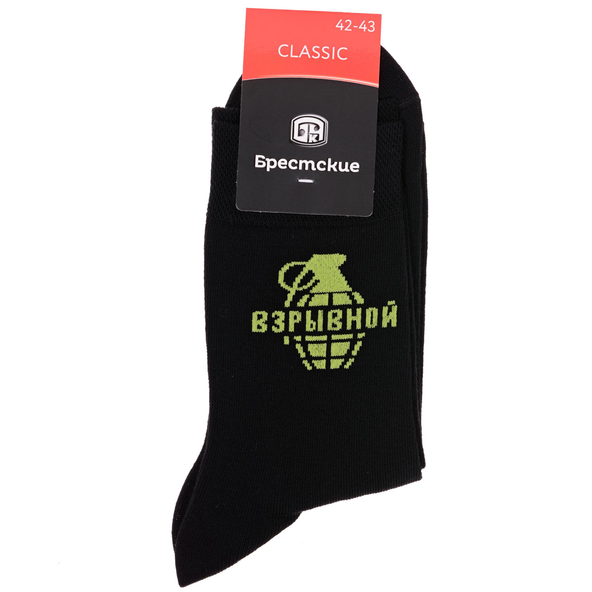 Круглогодичные средней длины мужские носки, цвет черный, повседневные, шов кеттельный (бесшовная технология), принт (рисунок): надписи, милитари, с узором, состав: 70% хлопок, 28% полиамид, 2% эластан, арт. 20С2146. Производитель «Брестский чулочный комбинат ОАО, Беларусь» под брендом «Брестские (бчк)».
