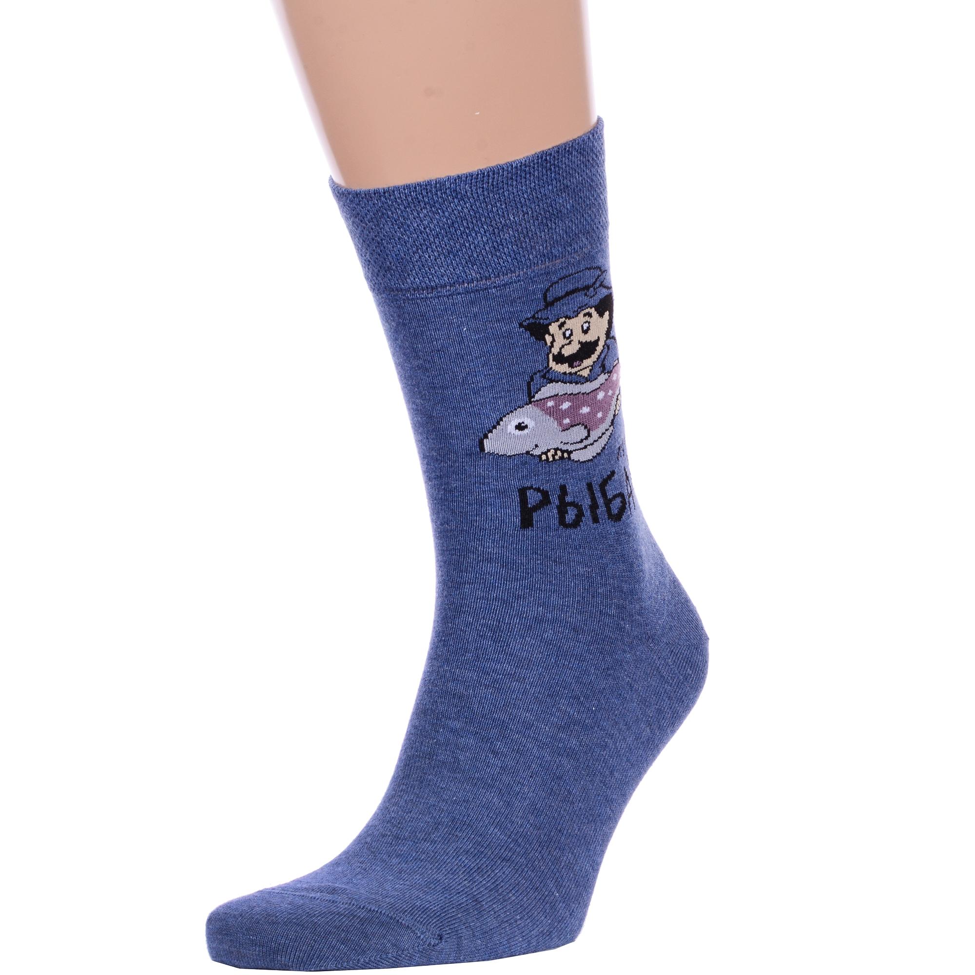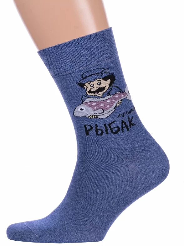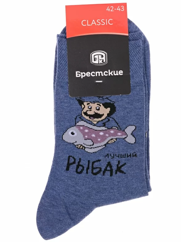 Круглогодичные средней длины мужские носки, цвет джинс, повседневные, шов кеттельный (бесшовная технология), принт (рисунок): охота / рыбалка, надписи, люди, с узором, состав: 70% хлопок, 28% полиамид, 2% эластан, арт. 20С2146. Производитель «Брестский чулочный комбинат ОАО, Беларусь» под брендом «Брестские (бчк)».