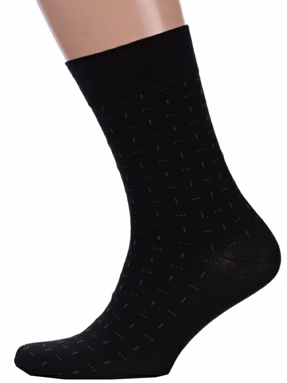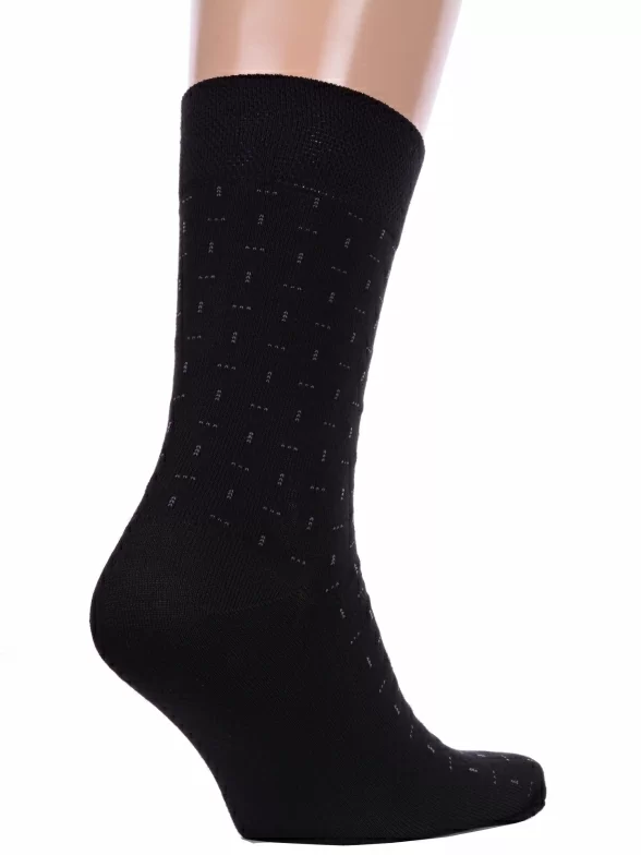 Круглогодичные средней длины мужские носки, цвет черный, повседневные, шов кеттельный (бесшовная технология), принт (рисунок): мелкий принт, с узором, состав: 73% хлопок, 25% полиэстер, 2% эластан, арт. 14с2122. Производитель «Брестский чулочный комбинат ОАО, Беларусь» под брендом «Брестские (бчк)».