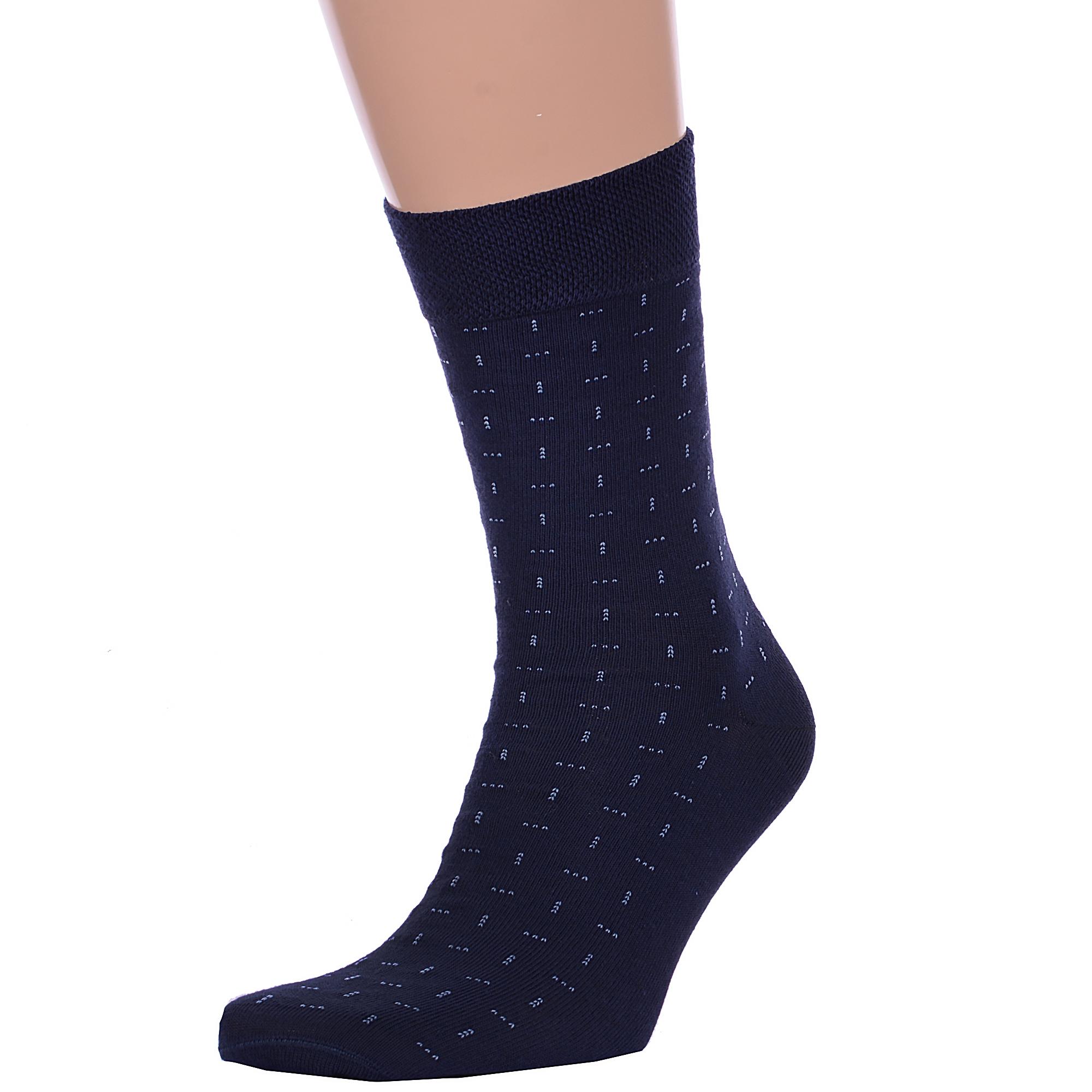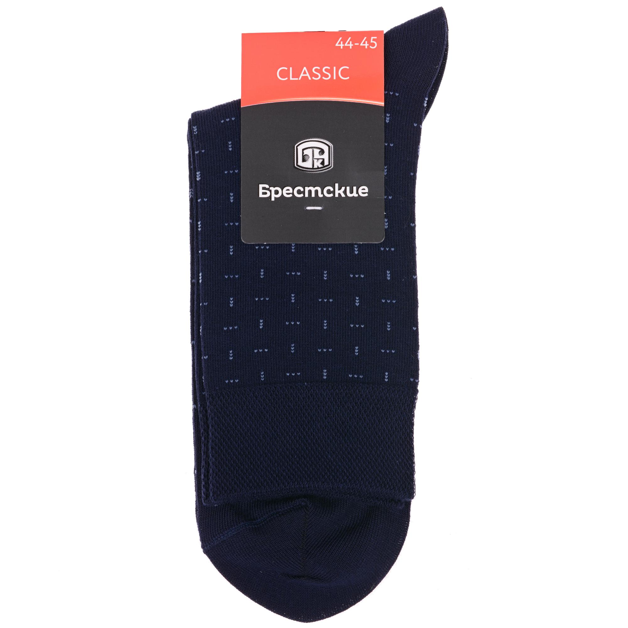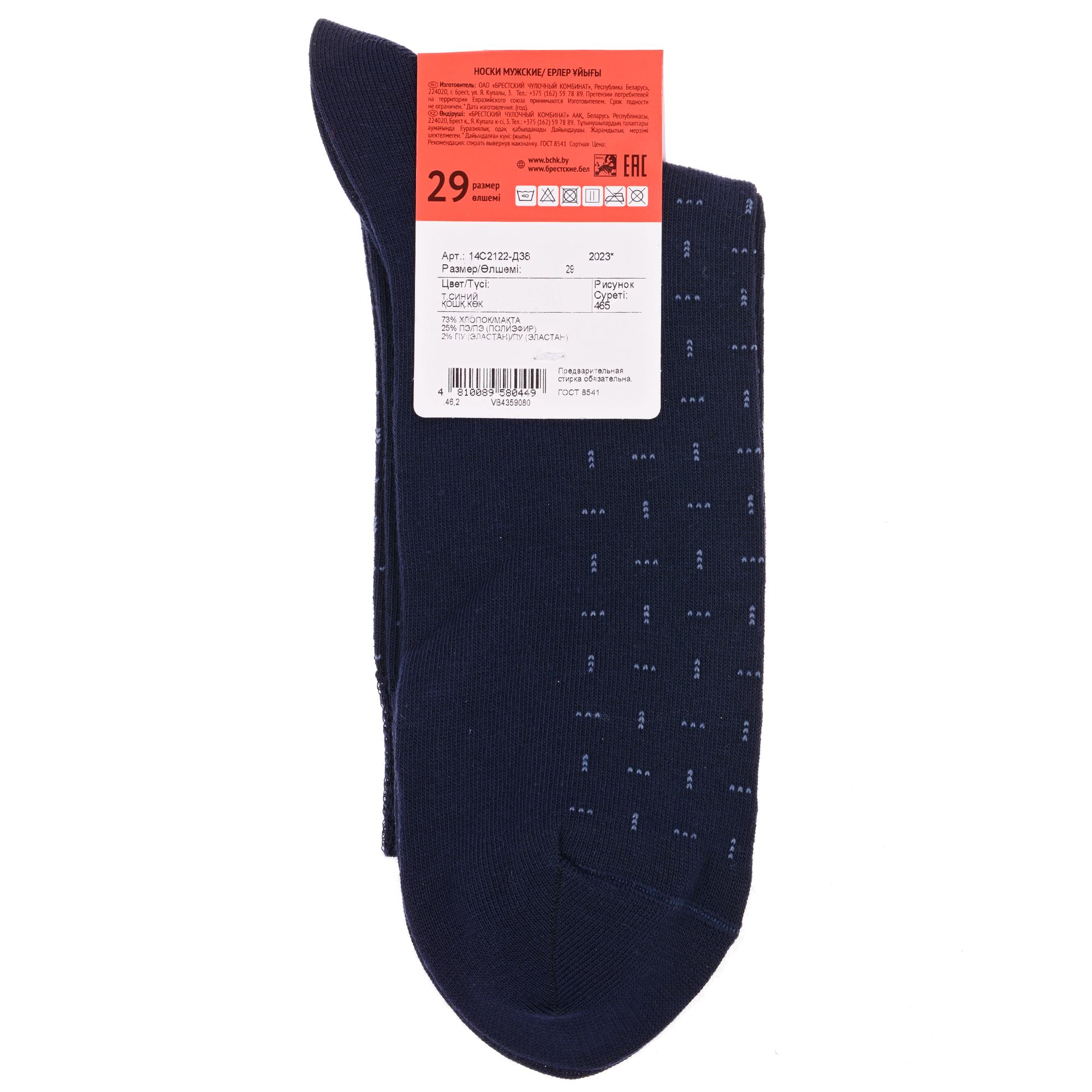 Круглогодичные средней длины мужские носки, цвет синий, повседневные, шов кеттельный (бесшовная технология), принт (рисунок): мелкий принт, с узором, состав: 73% хлопок, 25% полиэстер, 2% эластан, арт. 14с2122. Производитель «Брестский чулочный комбинат ОАО, Беларусь» под брендом «Брестские (бчк)».