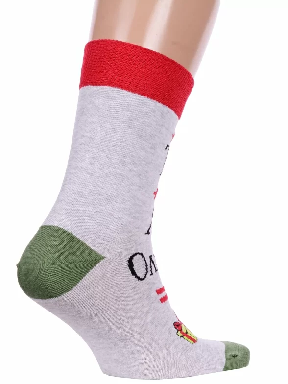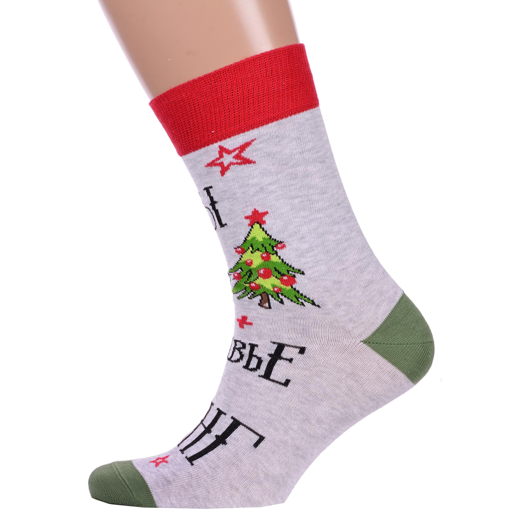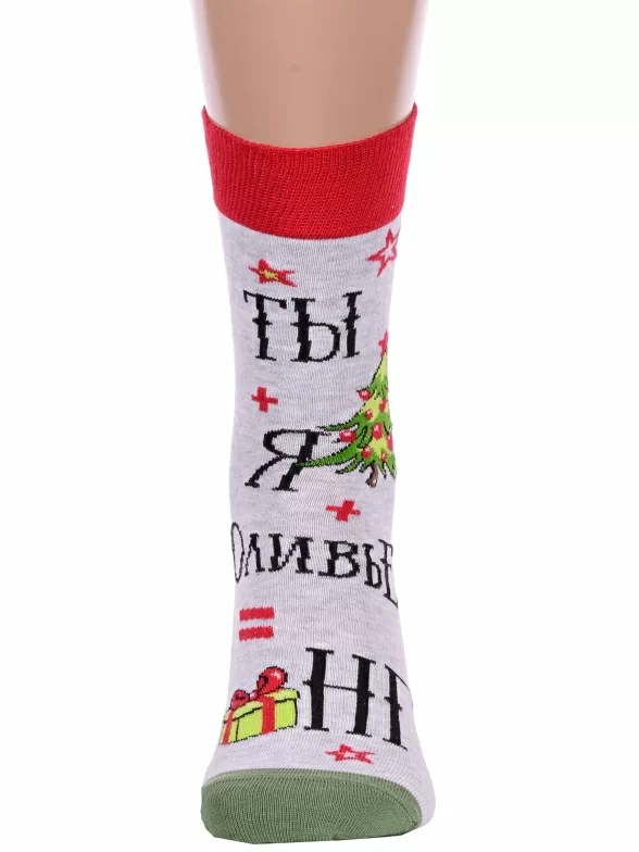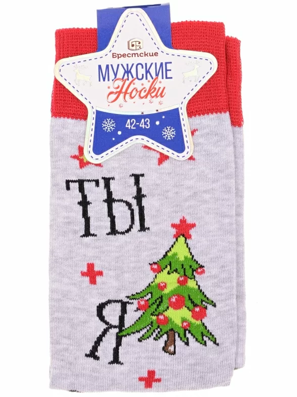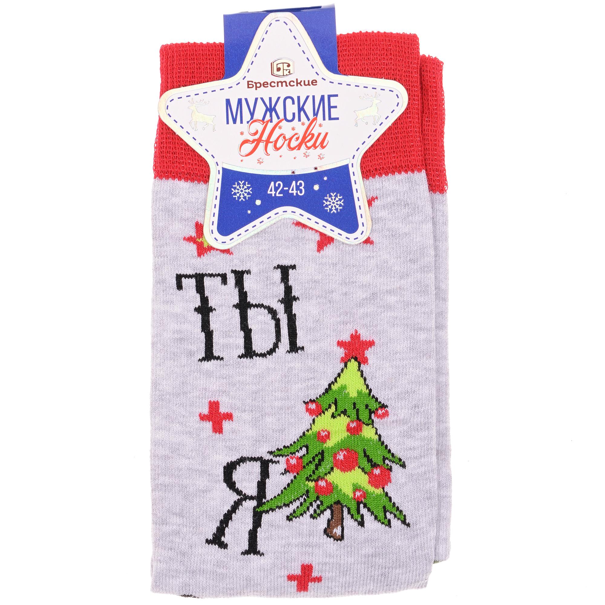Круглогодичные укороченные мужские носки, цвет светло-серый, повседневные, шов кеттельный (бесшовная технология), принт (рисунок): новый год, надписи, контрастные пятка / мысок / резинка, зимний, с узором, состав: 70% хлопок, 28% полиамид, 2% эластан, арт. 20С2146. Производитель «Брестский чулочный комбинат ОАО, Беларусь» под брендом «Брестские (бчк)».