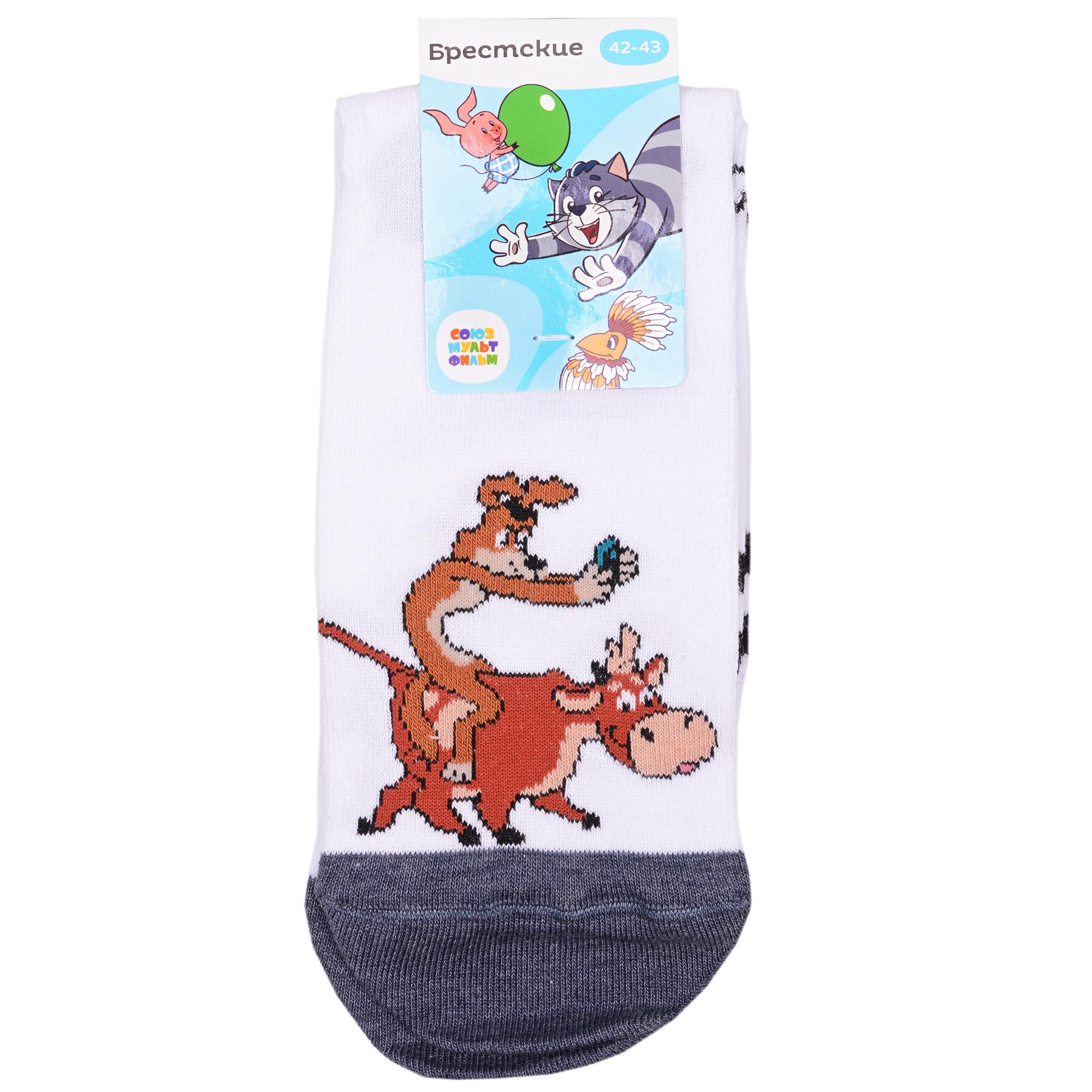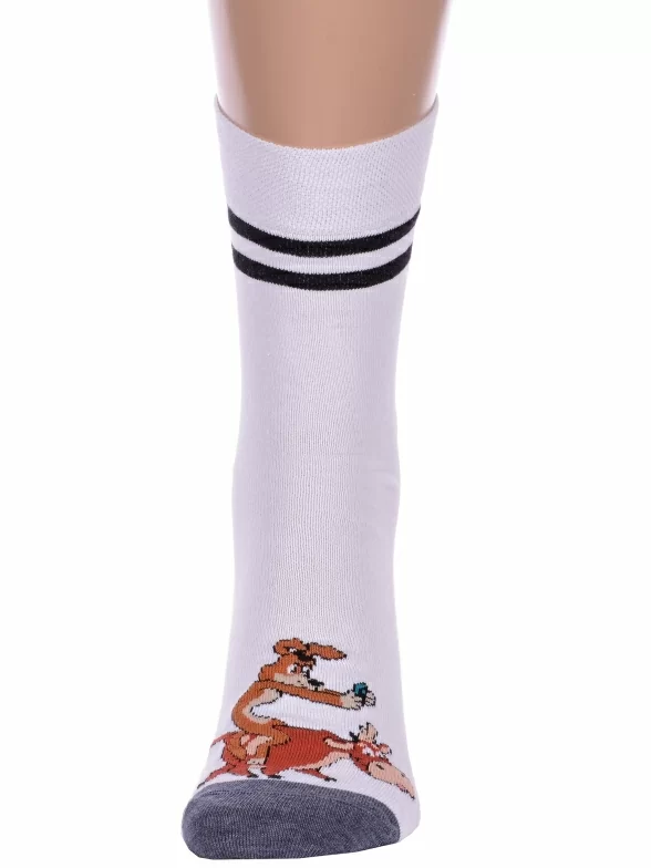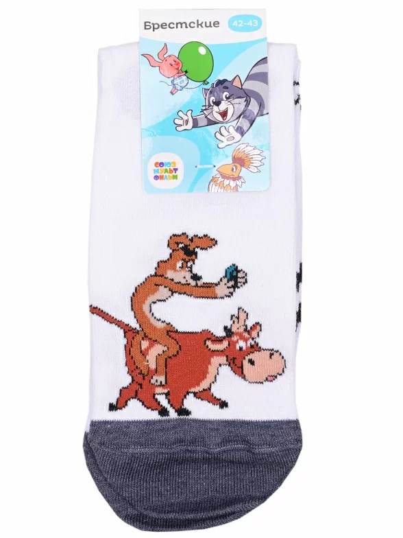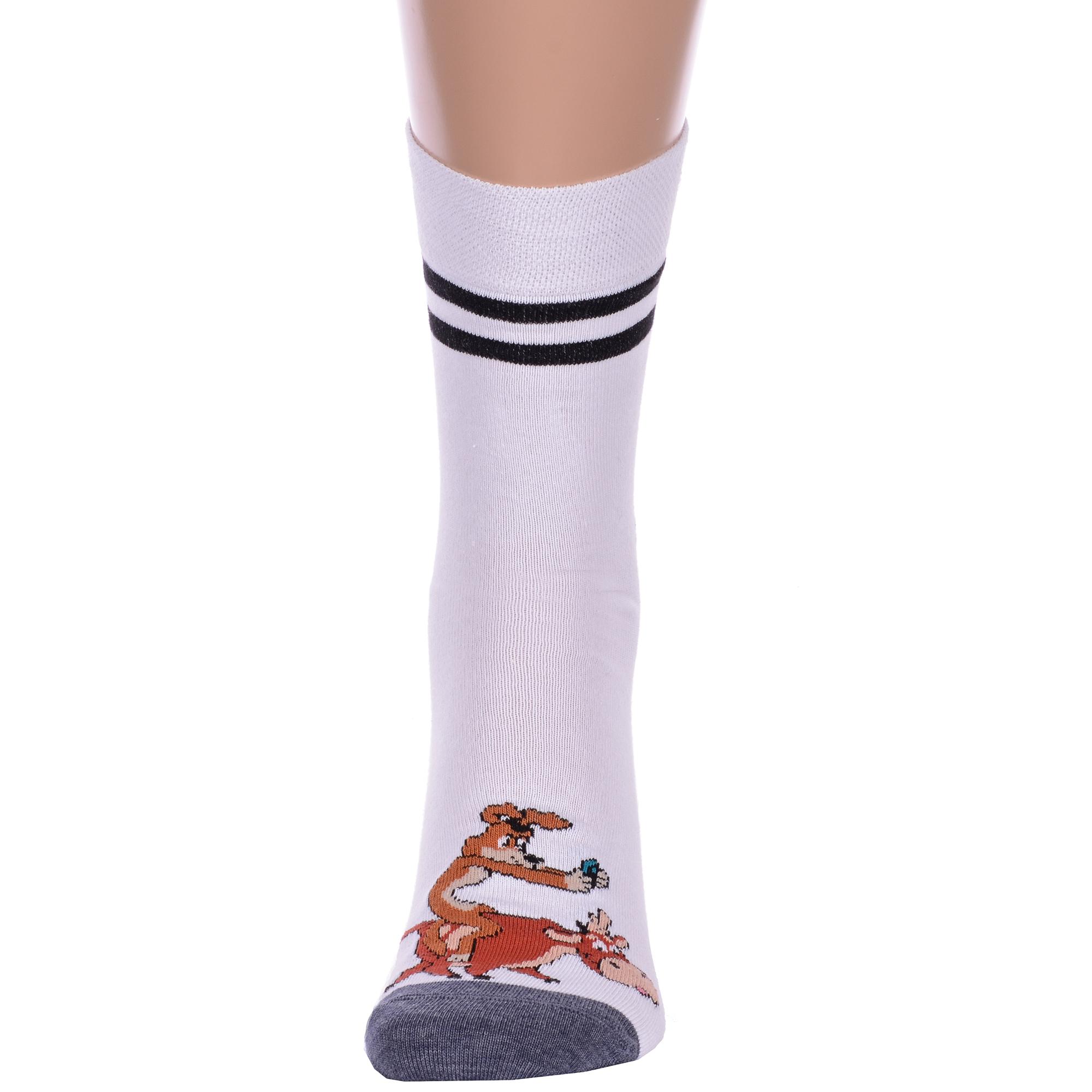 Круглогодичные укороченные мужские носки, цвет белый, повседневные, шов кеттельный (бесшовная технология), принт (рисунок): фильмы / сериалы / мультики, полоски, надписи, контрастные пятка / мысок / резинка, животные, с узором, состав: 70% хлопок, 28% полиамид, 2% эластан, арт. 23С2153. Производитель «Брестский чулочный комбинат ОАО, Беларусь» под брендом «Брестские (бчк)».