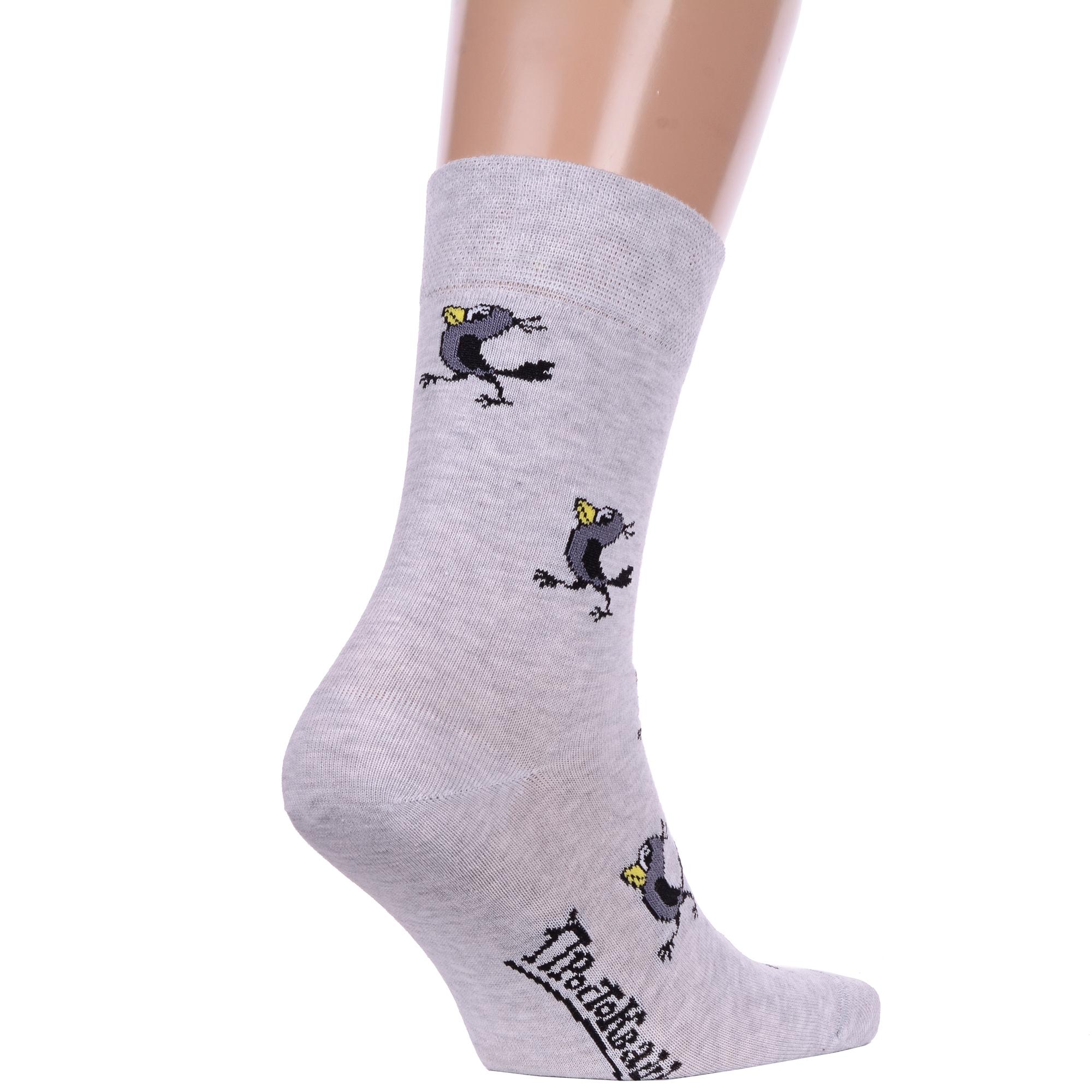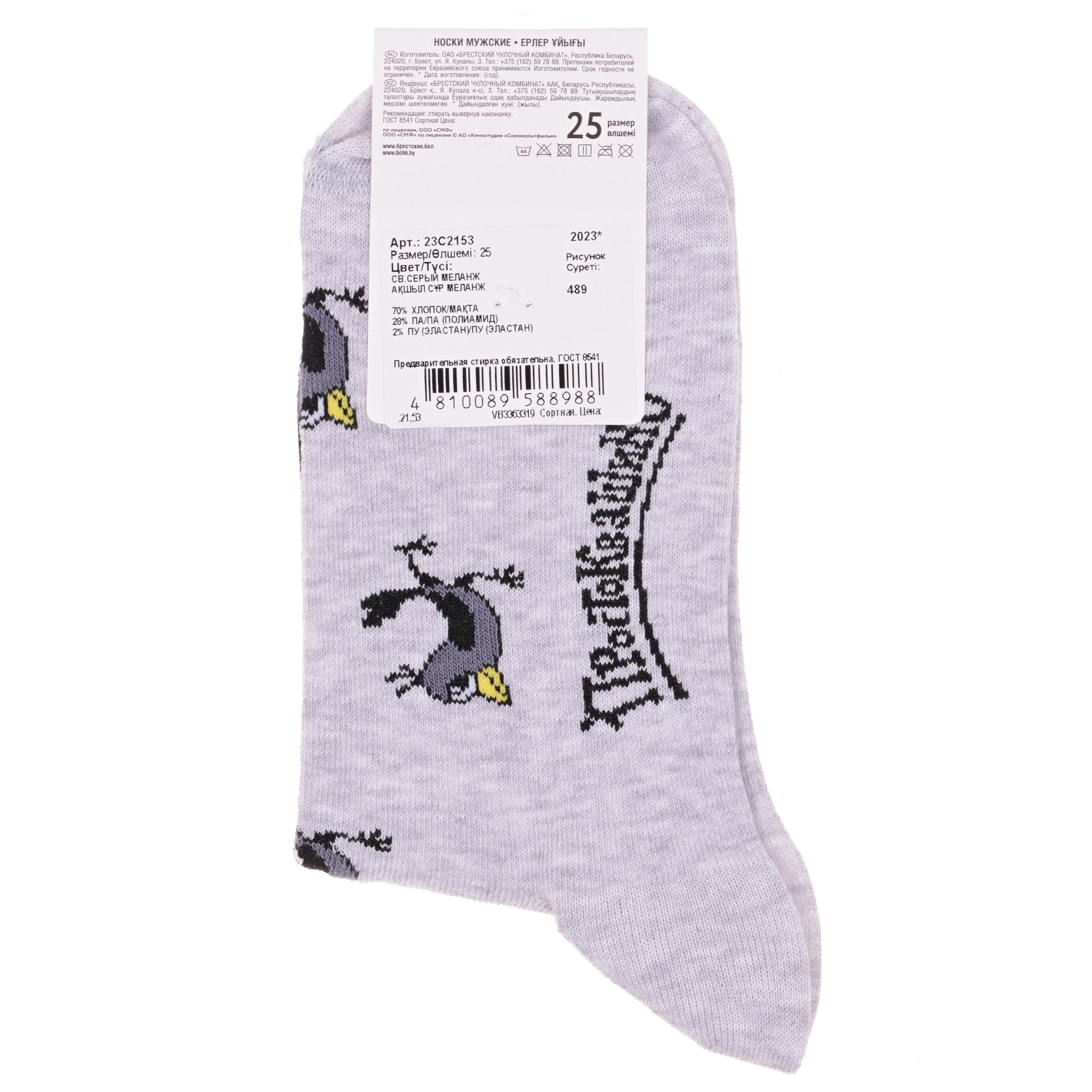 Круглогодичные средней длины мужские носки, цвет темно-серый, повседневные, шов кеттельный (бесшовная технология), принт (рисунок): фильмы / сериалы / мультики, животные, с узором, состав: 70% хлопок, 28% полиамид, 2% эластан, арт. 23С2153. Производитель «Брестский чулочный комбинат ОАО, Беларусь» под брендом «Брестские (бчк)».