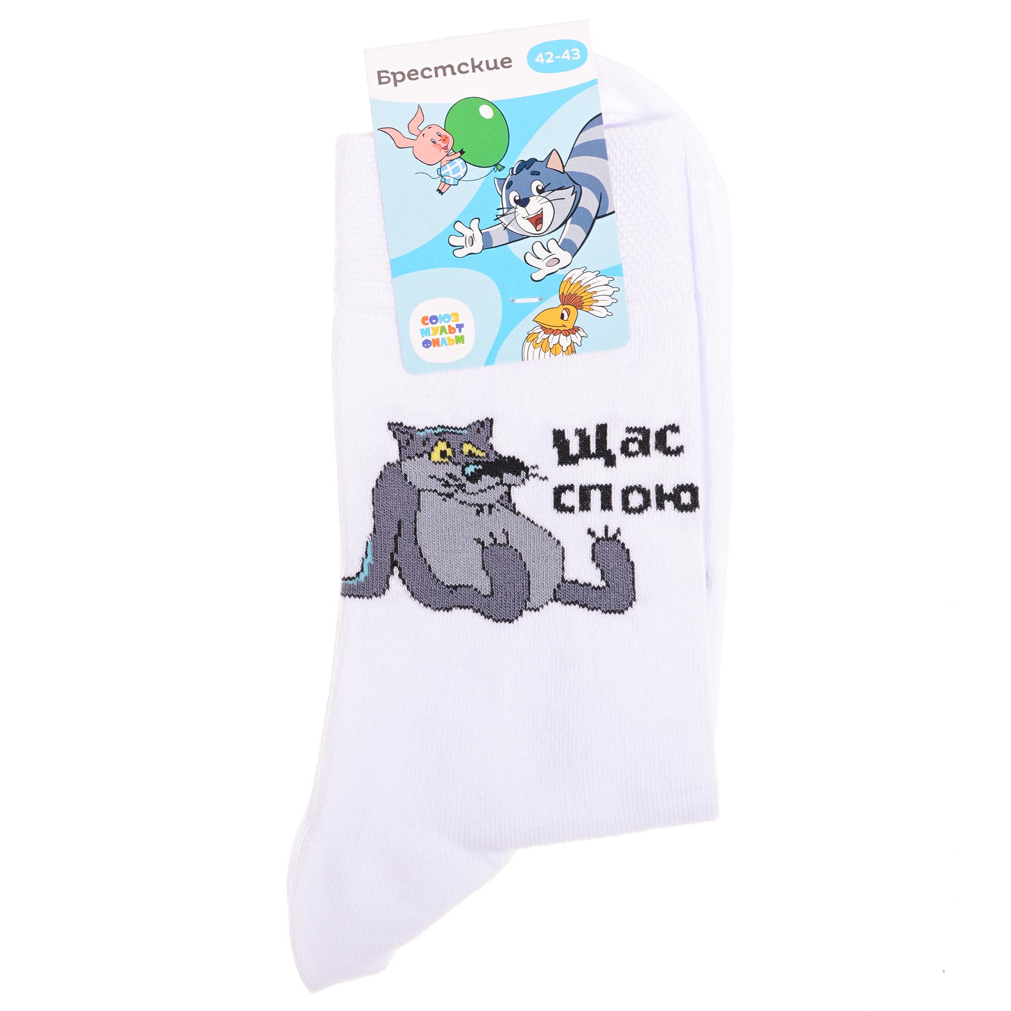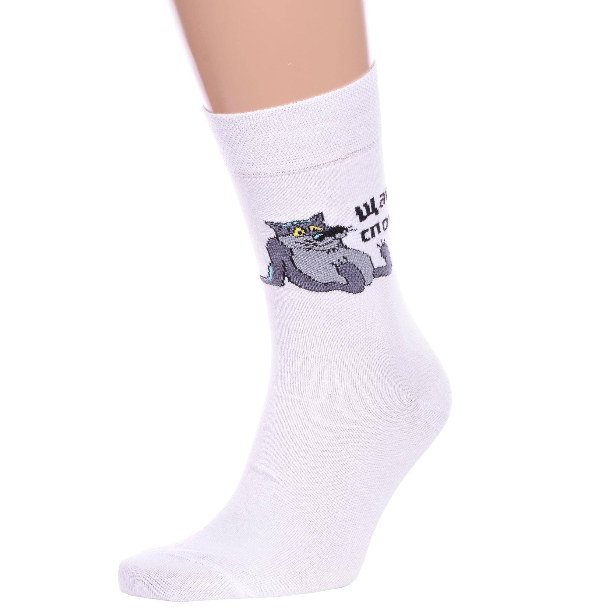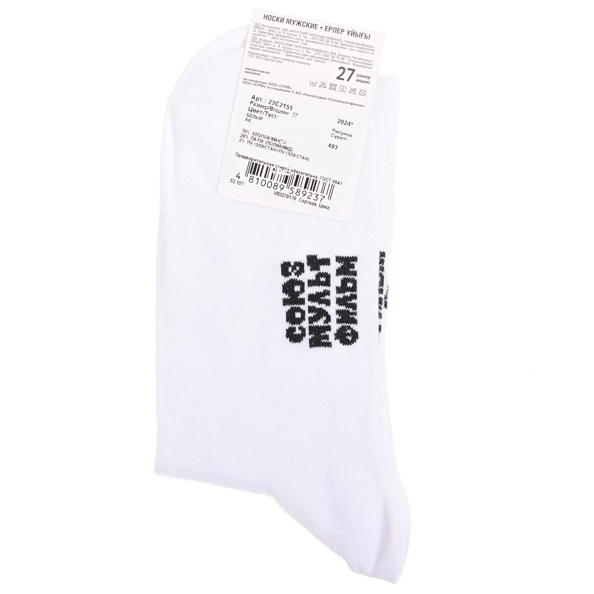 Круглогодичные средней длины мужские носки, цвет белый, повседневные, возможно бесшовные, принт (рисунок): фильмы / сериалы / мультики, надписи, животные, с узором, состав: 70% хлопок, 28% полиамид, 2% эластан, арт. 23С2155. Производитель «Брестский чулочный комбинат ОАО, Беларусь» под брендом «Брестские (бчк)».