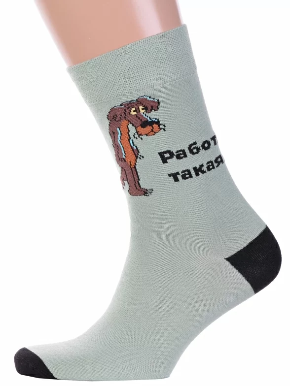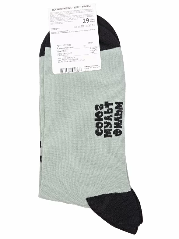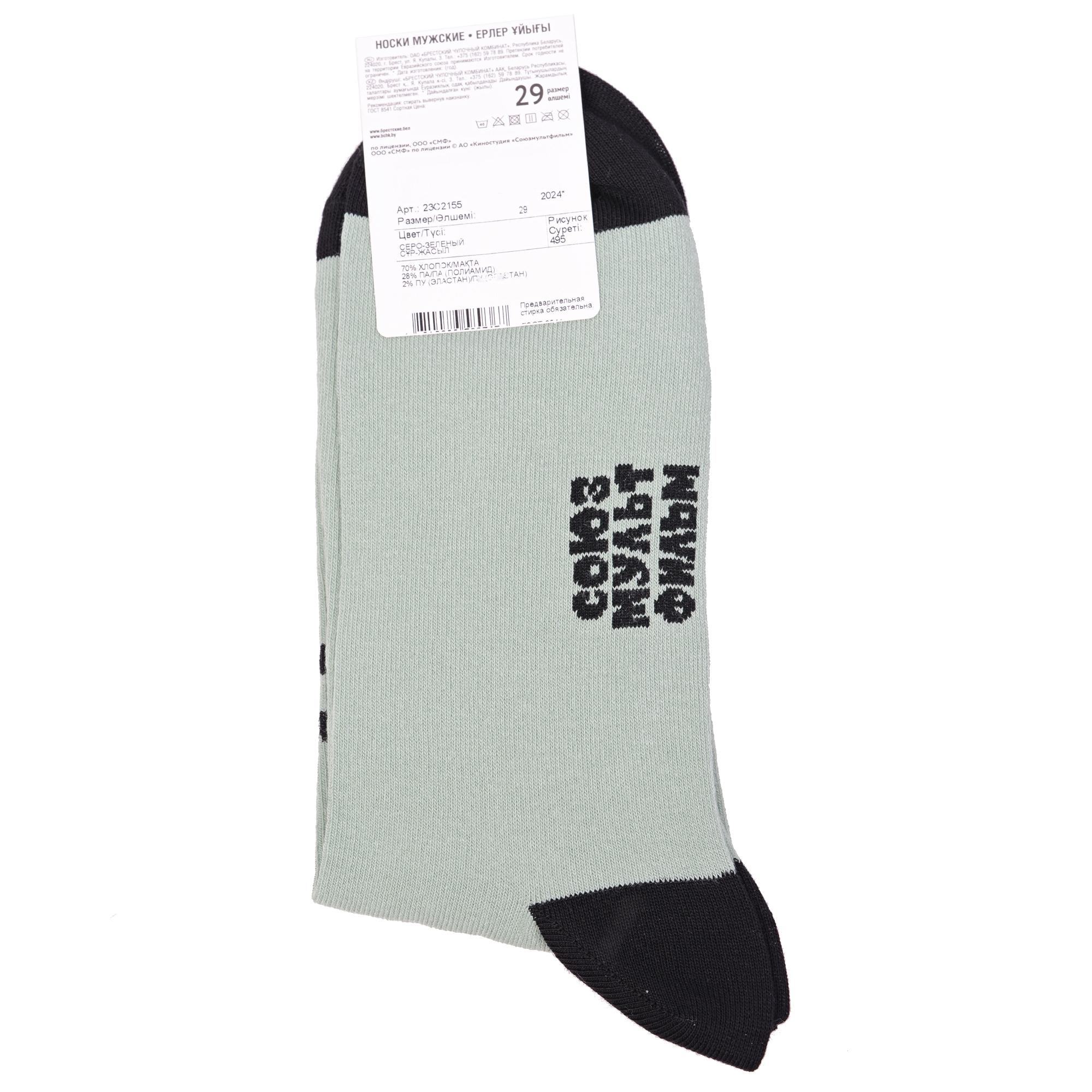 Круглогодичные укороченные мужские носки, цвет зеленый, повседневные, возможно бесшовные, принт (рисунок): фильмы / сериалы / мультики, надписи, контрастные пятка / мысок / резинка, животные, с узором, состав: 70% хлопок, 28% полиамид, 2% эластан, арт. 23С2155. Производитель «Брестский чулочный комбинат ОАО, Беларусь» под брендом «Брестские (бчк)».