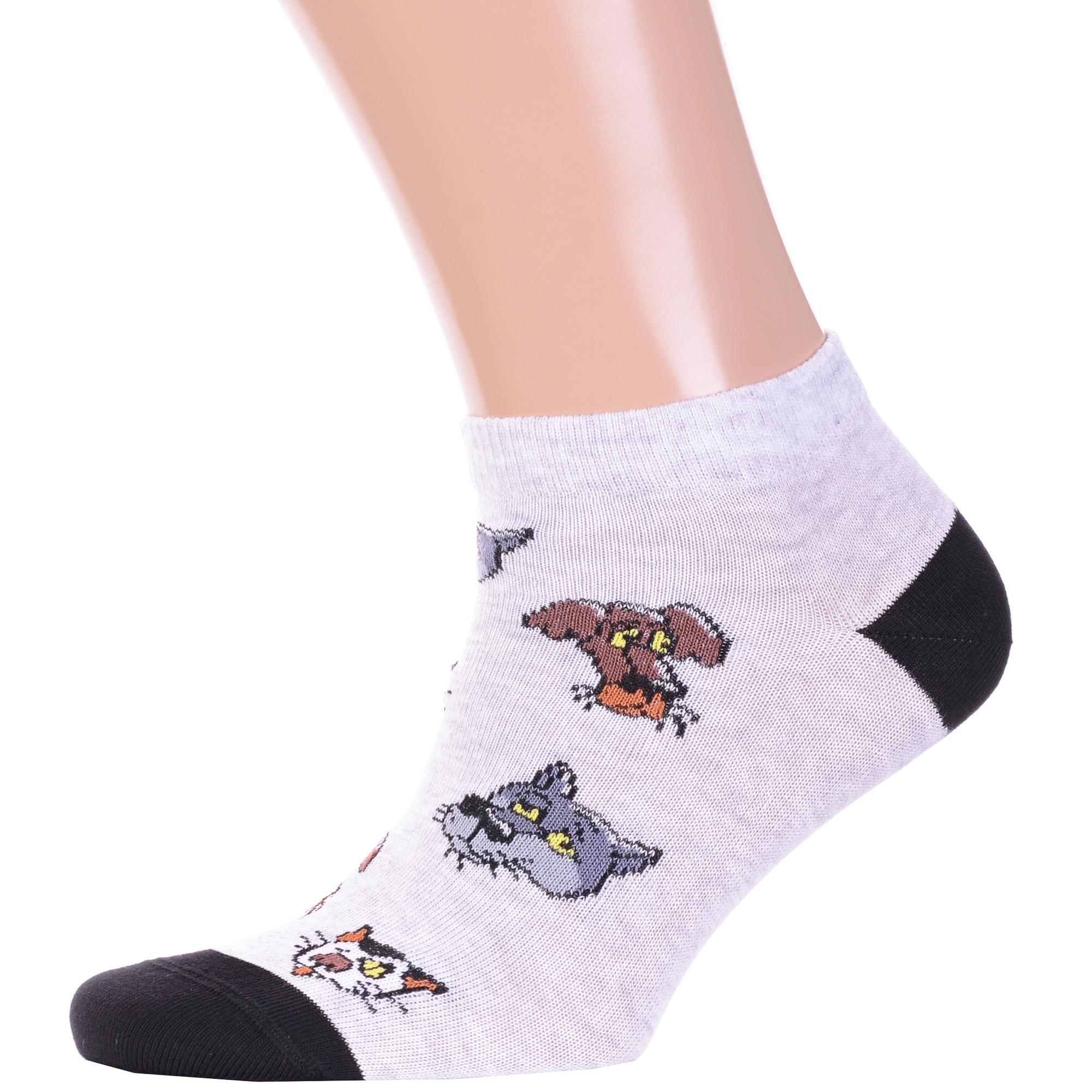 Межсезонные или летние короткие мужские носки, цвет светло-серый, повседневные, возможно бесшовные, принт (рисунок): фильмы / сериалы / мультики, контрастные пятка/мысок/резинка, животные, с узором, состав: 66% хлопок, 32% полиамид, 2% эластан, арт. 23С2156. Производитель «Брестский чулочный комбинат ОАО, Беларусь» под брендом «Брестские (бчк)».