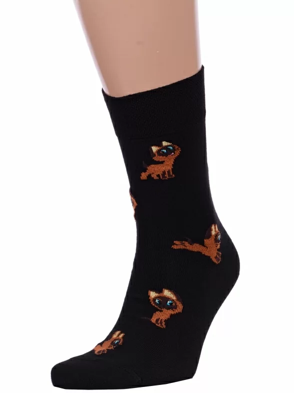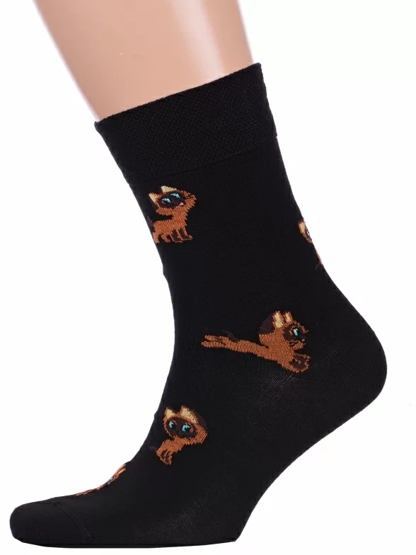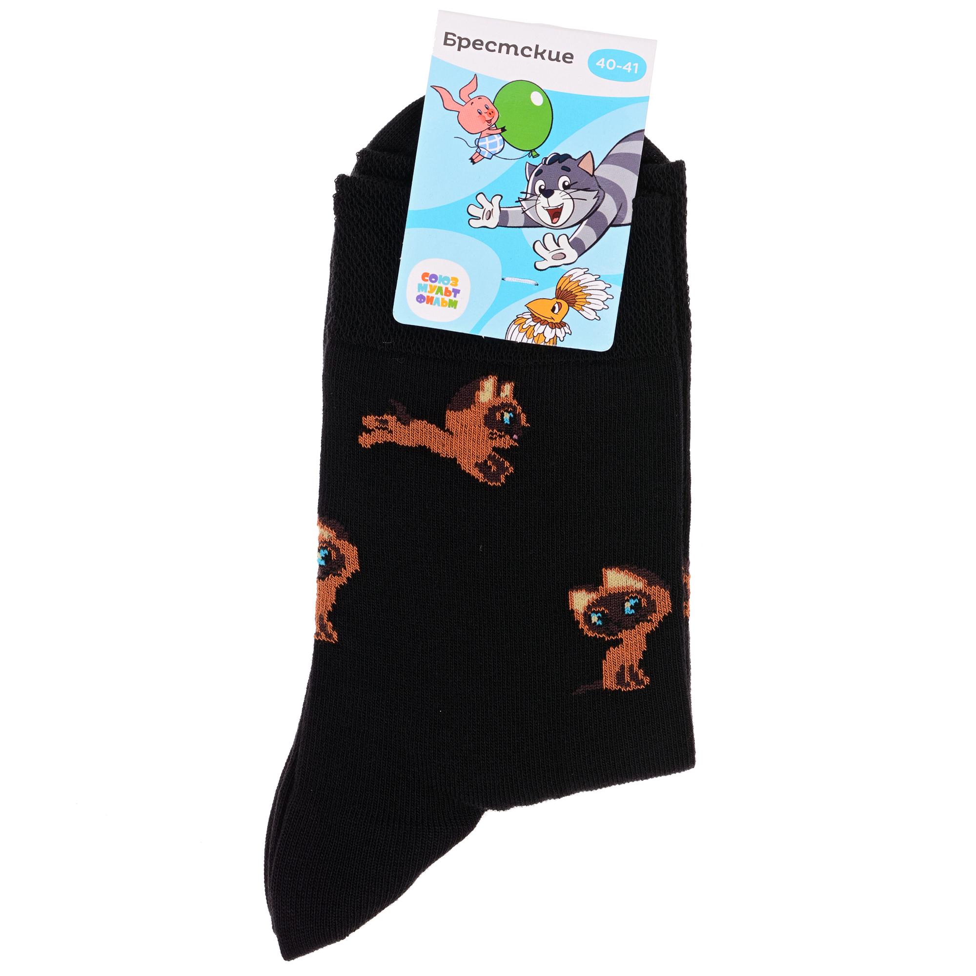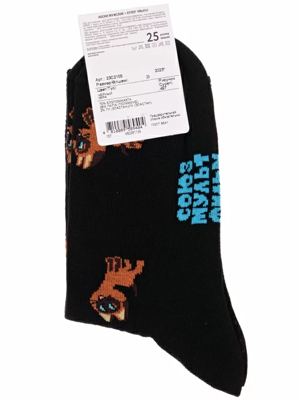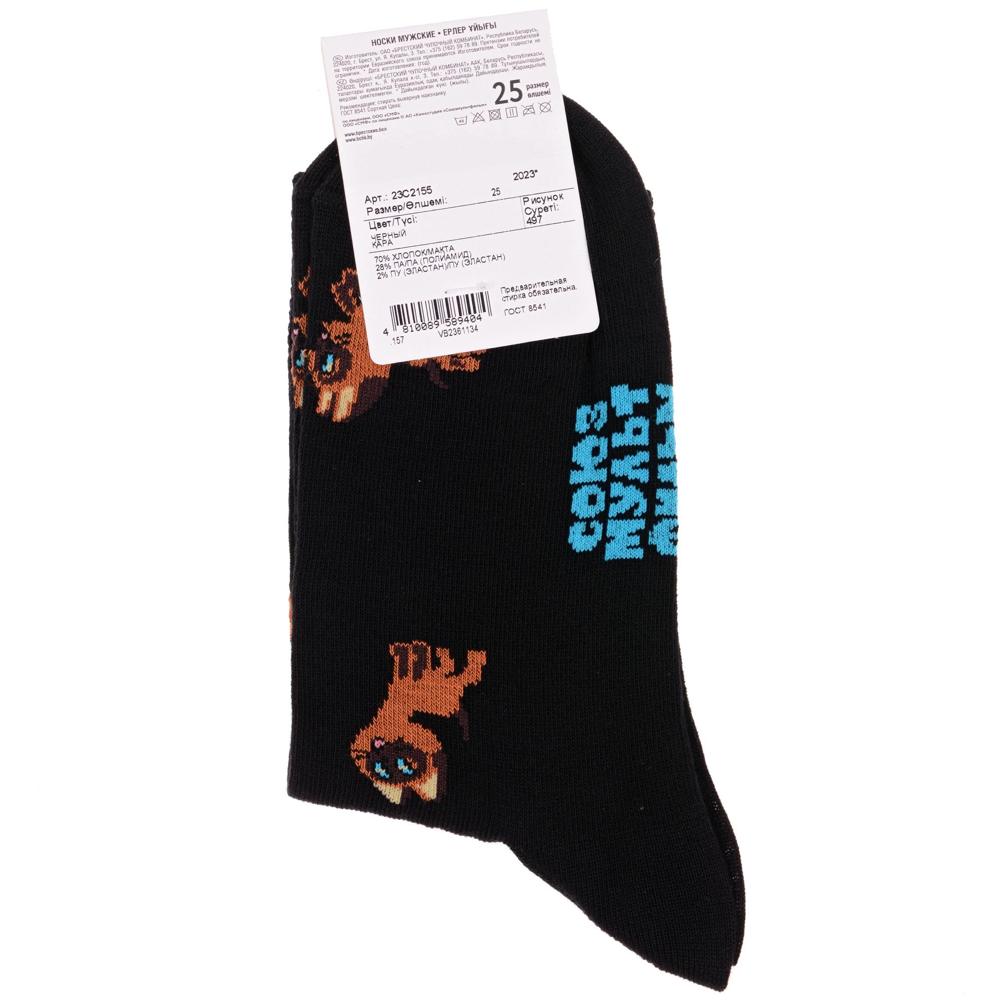 Круглогодичные средней длины мужские носки, цвет черный, повседневные, шов кеттельный (бесшовная технология), принт (рисунок): фильмы / сериалы / мультики, животные, с узором, состав: 70% хлопок, 28% полиамид, 2% эластан, арт. 23С2155. Производитель «Брестский чулочный комбинат ОАО, Беларусь» под брендом «Брестские (бчк)».