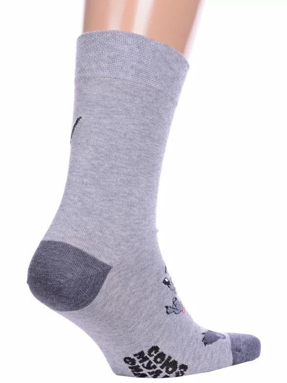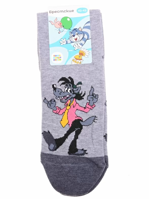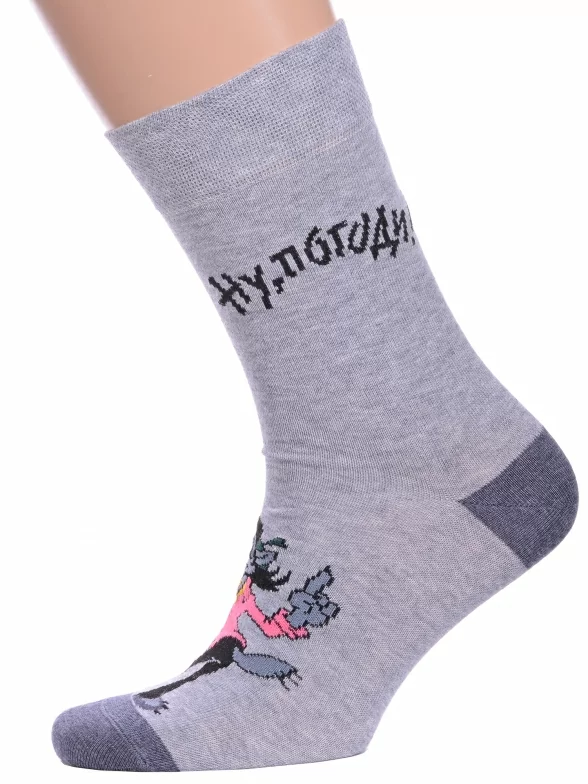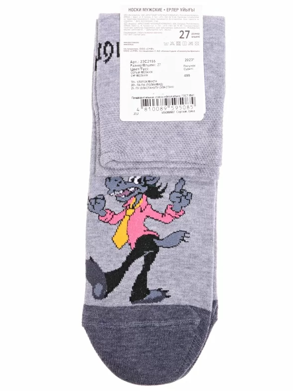 Круглогодичные укороченные мужские носки, цвет серый, повседневные, возможно бесшовные, принт (рисунок): фильмы / сериалы / мультики, надписи, контрастные пятка / мысок / резинка, животные, с узором, состав: 70% хлопок, 28% полиамид, 2% эластан, арт. 23С2155. Производитель «Брестский чулочный комбинат ОАО, Беларусь» под брендом «Брестские (бчк)».