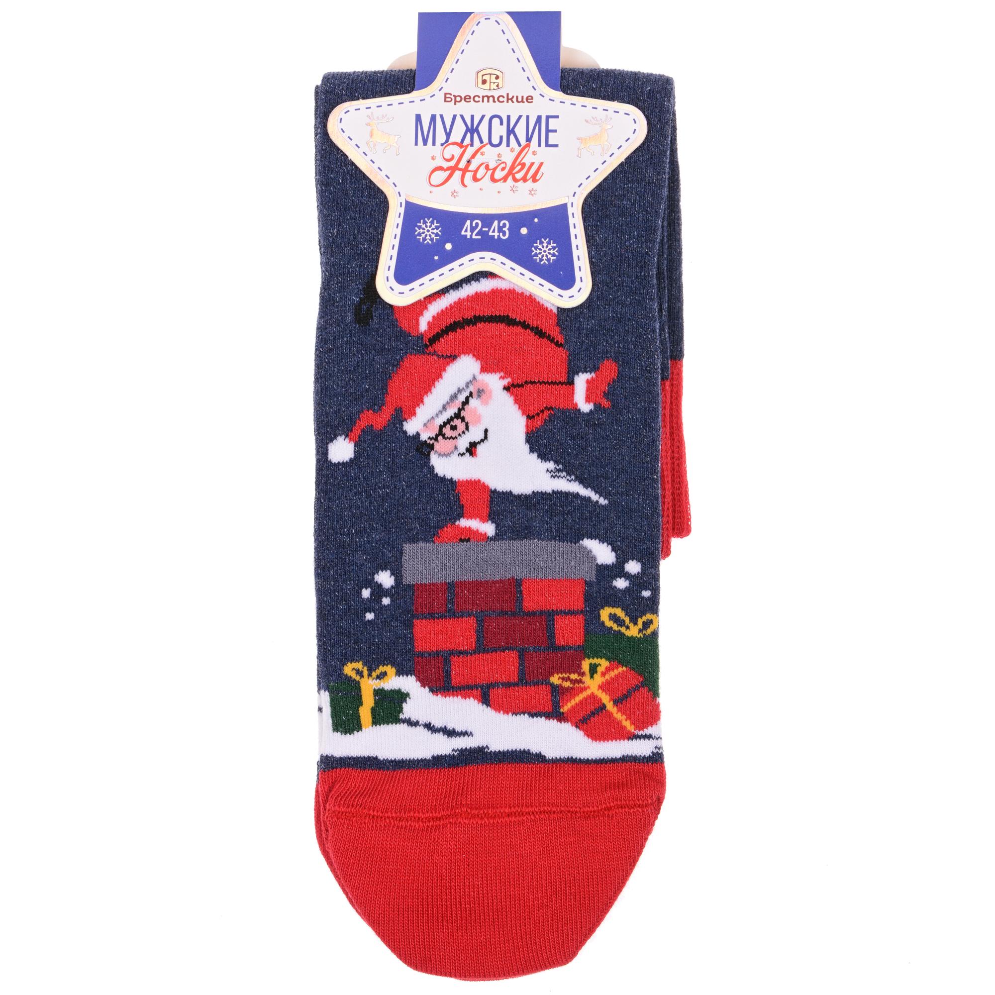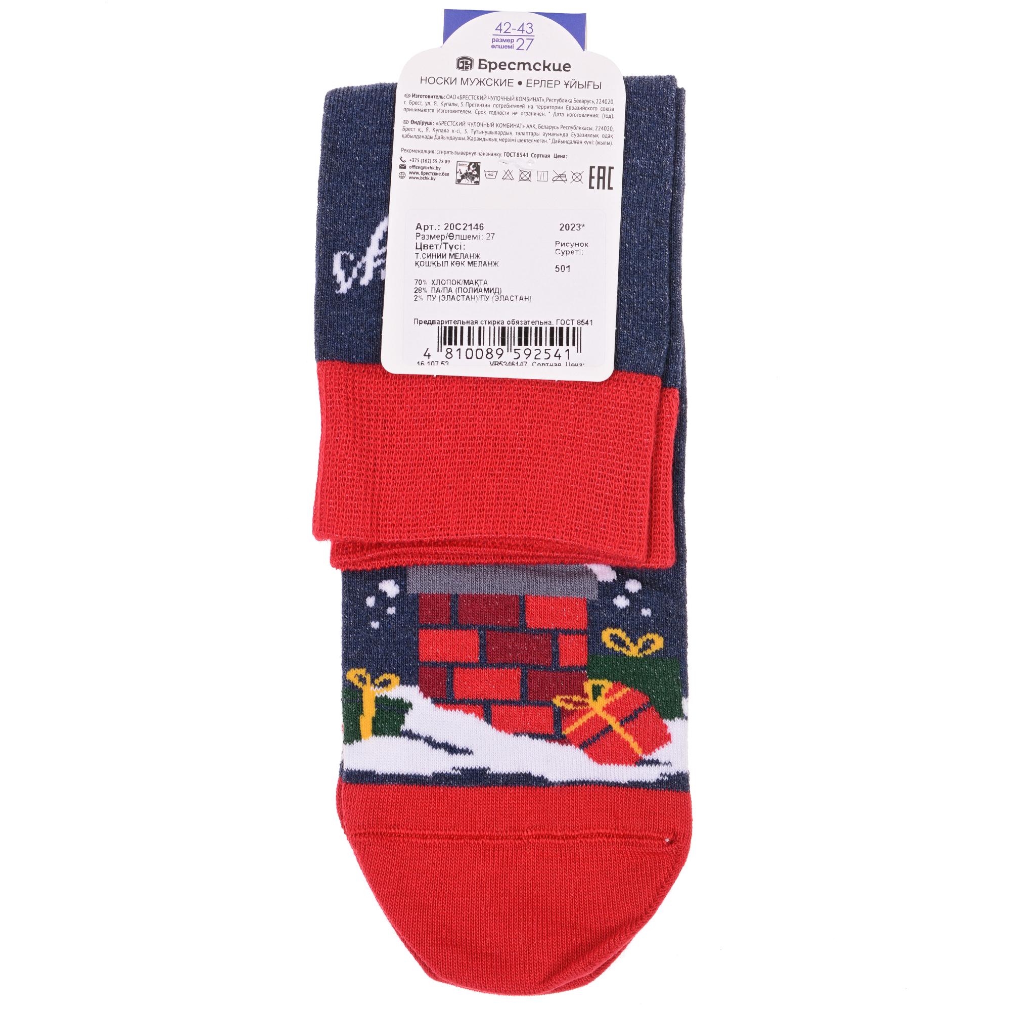 Круглогодичные укороченные мужские носки, цвет темно-синий, повседневные, шов кеттельный (бесшовная технология), принт (рисунок): новый год, надписи, контрастные пятка / мысок / резинка, зимний, с узором, состав: 70% хлопок, 28% полиамид, 2% эластан, арт. 20С2146. Производитель «Брестский чулочный комбинат ОАО, Беларусь» под брендом «Брестские (бчк)».