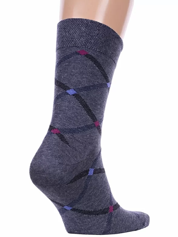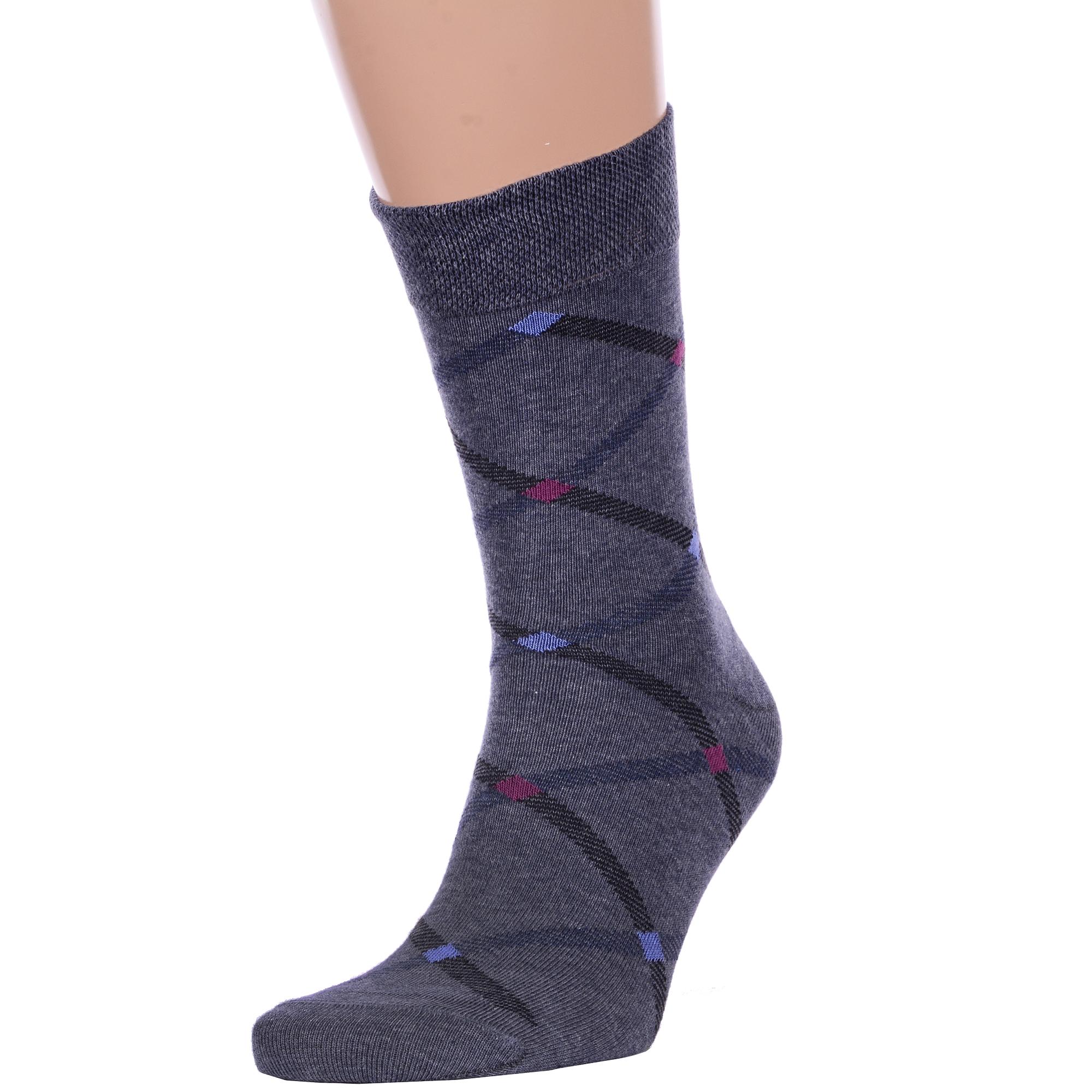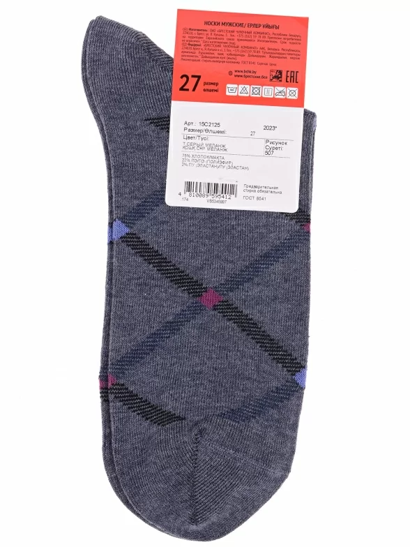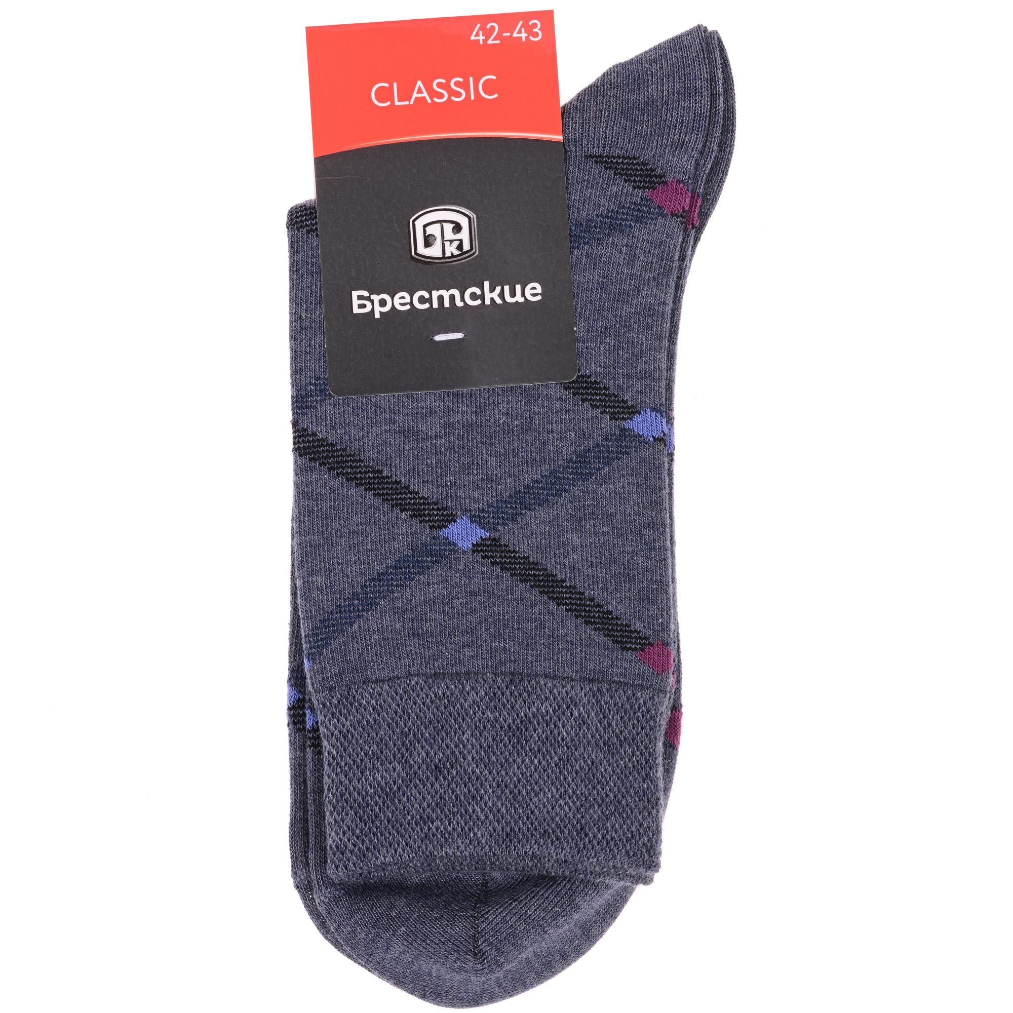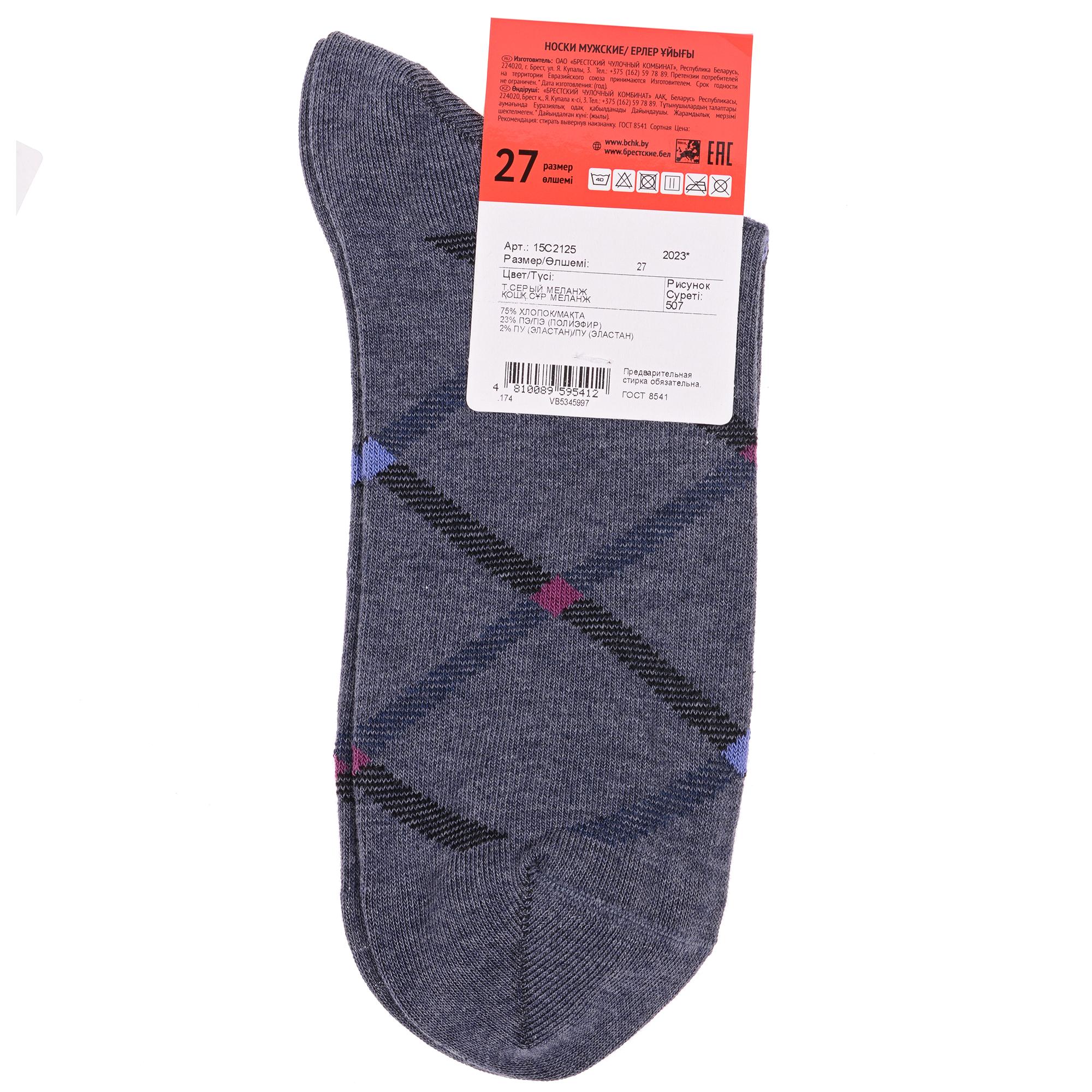 Круглогодичные средней длины мужские носки, цвет темно-серый, повседневные, шов кеттельный (бесшовная технология), принт (рисунок): геометрия, с узором, состав: 73% хлопок, 25% полиэстер, 2% эластан, арт. 15с2125. Производитель «Брестский чулочный комбинат ОАО, Беларусь» под брендом «Брестские (бчк)».
