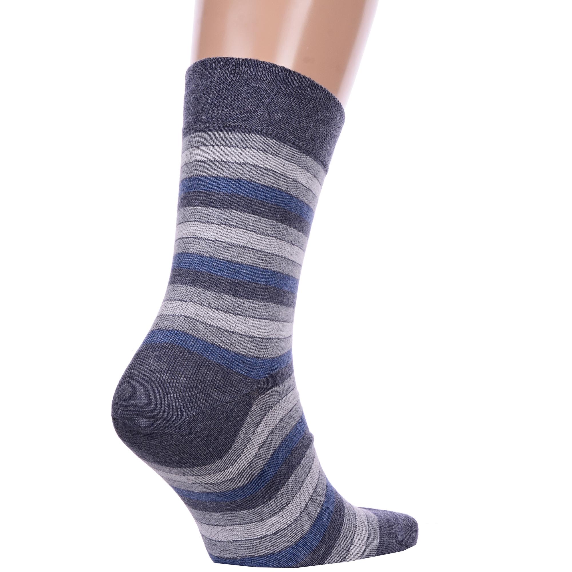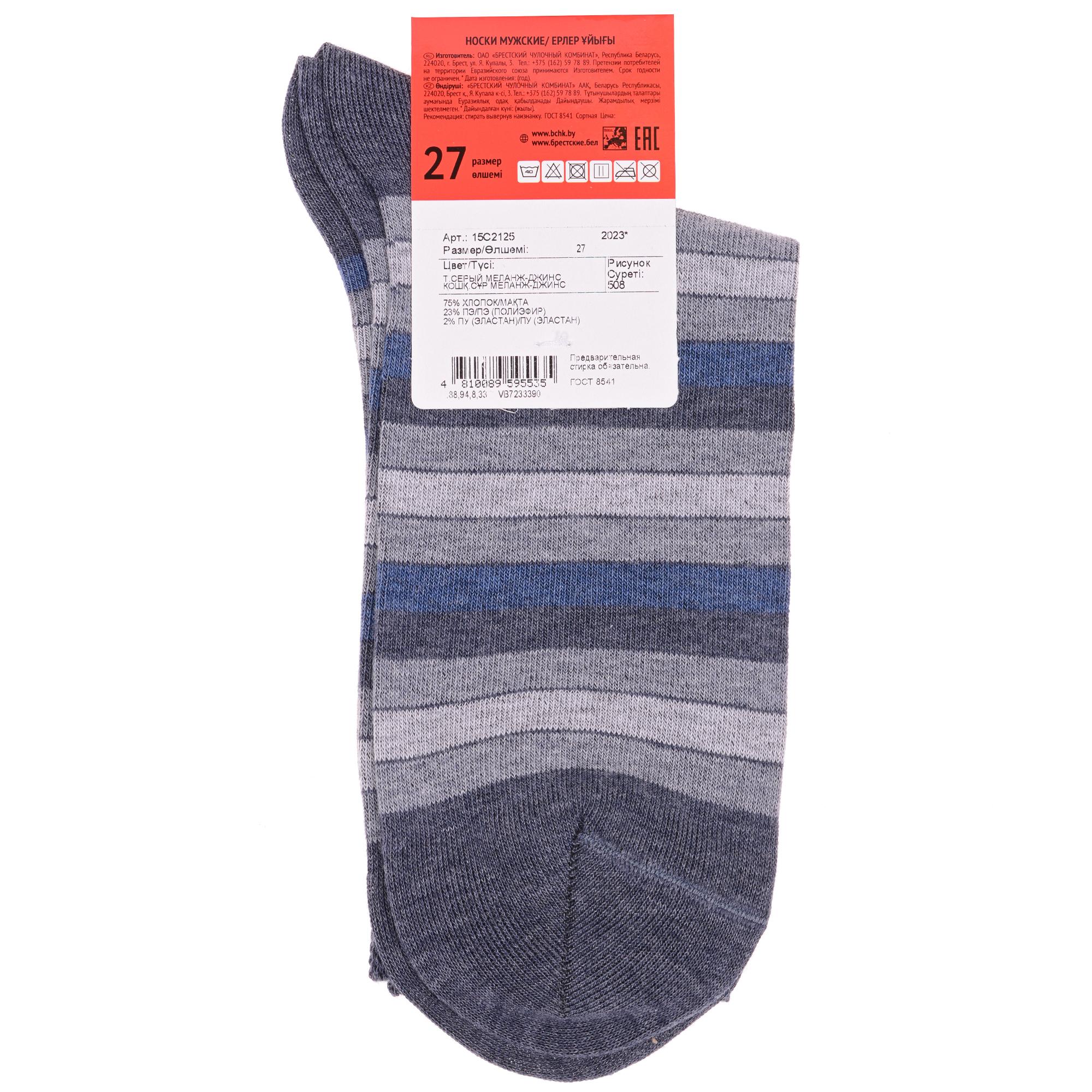 Круглогодичные средней длины мужские носки, цвет серый, повседневные, шов кеттельный (бесшовная технология), принт (рисунок): полоски, с узором, состав: 73% хлопок, 25% полиэстер, 2% эластан, арт. 15с2125. Производитель «Брестский чулочный комбинат ОАО, Беларусь» под брендом «Брестские (бчк)».