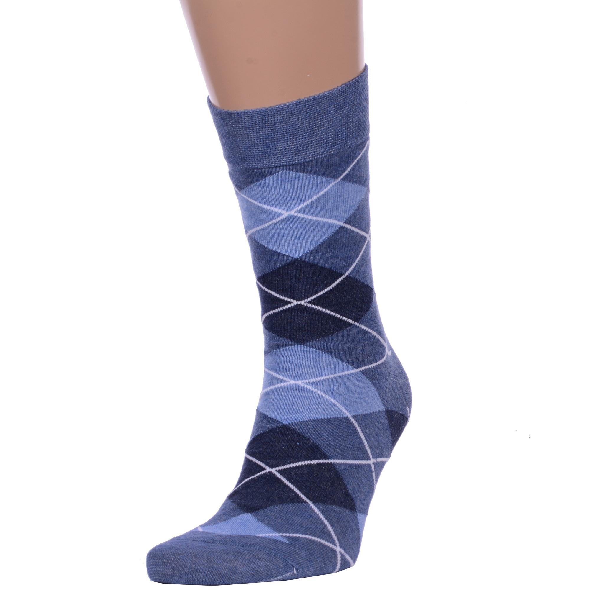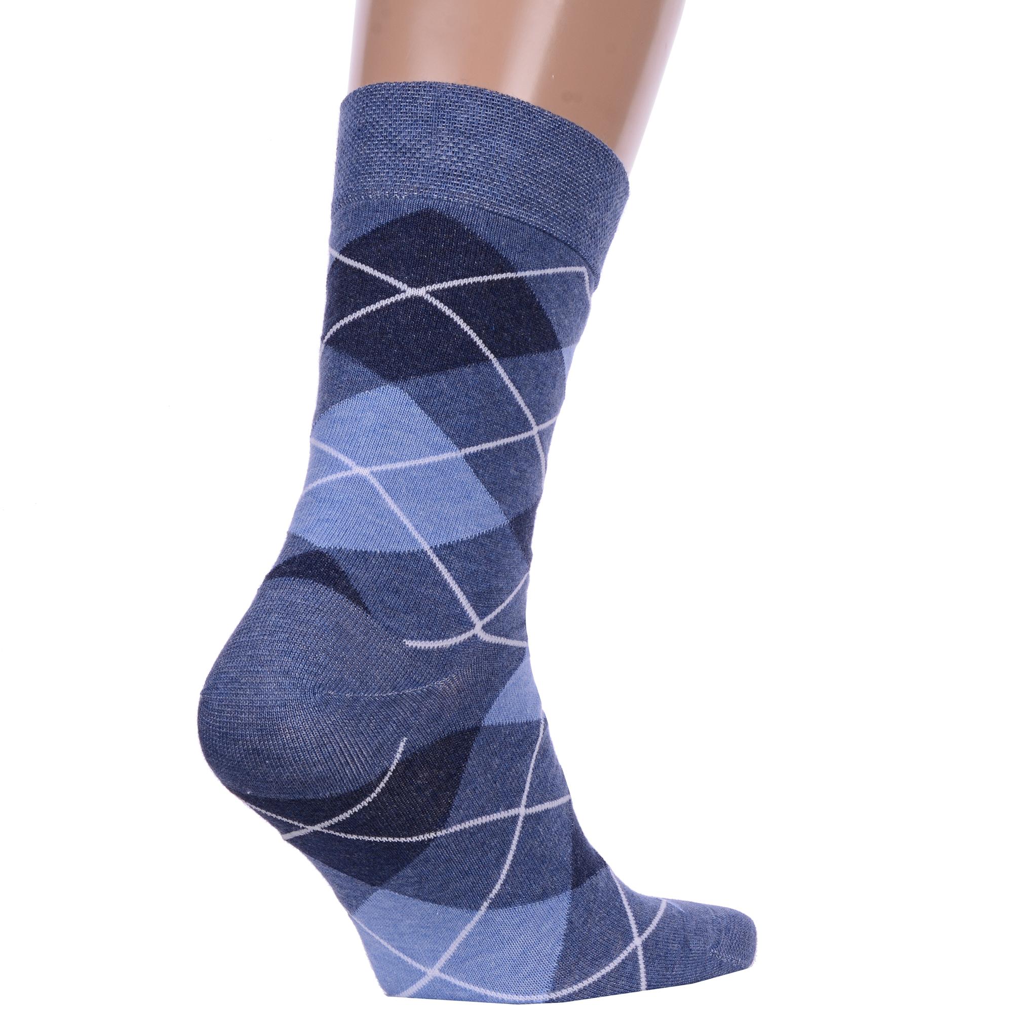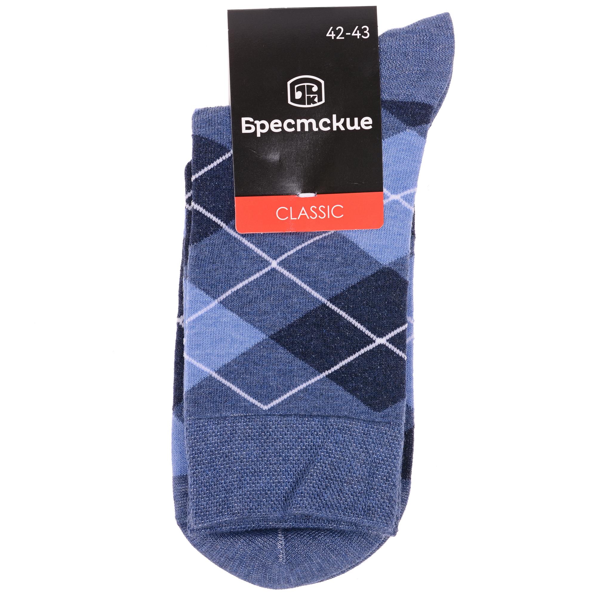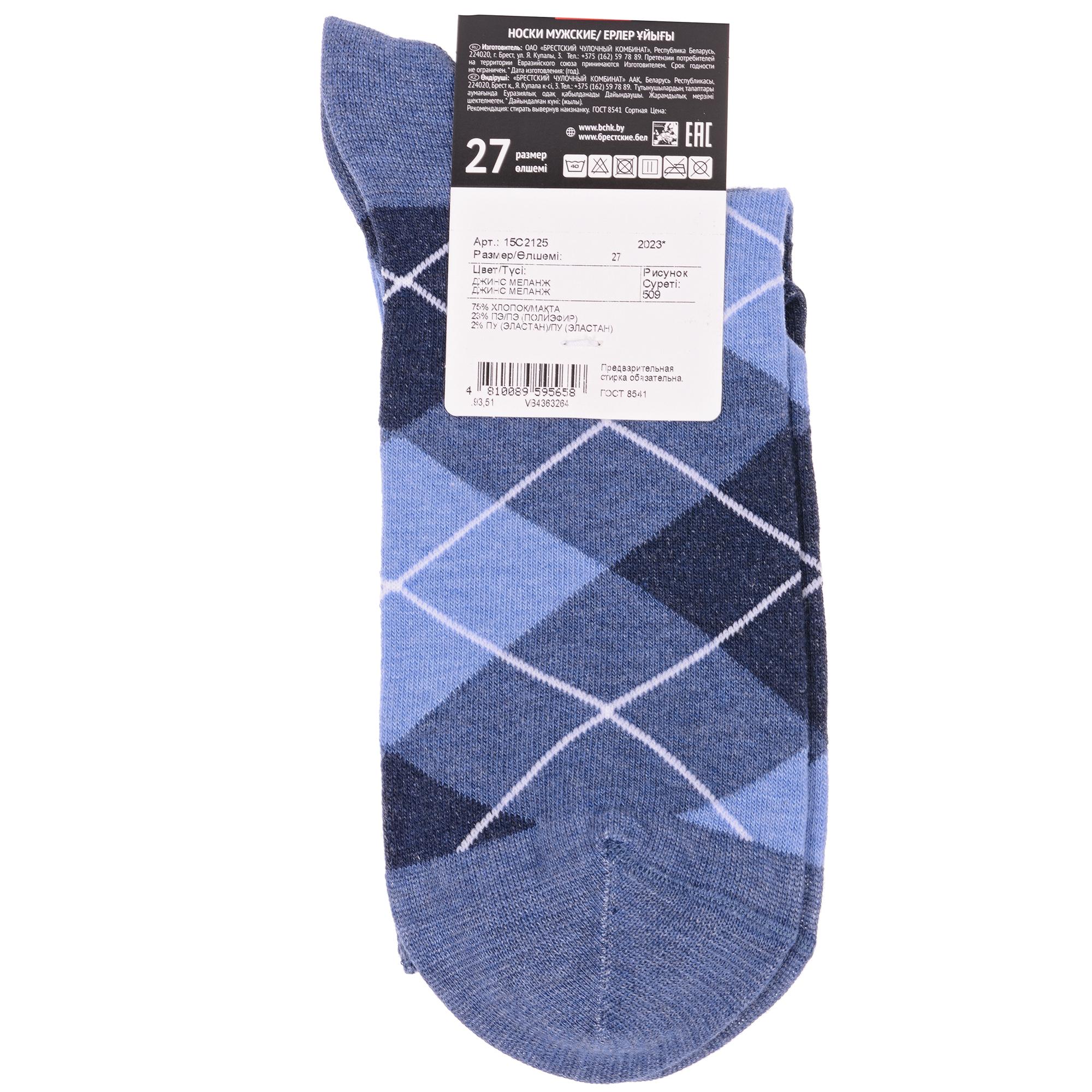 Круглогодичные средней длины мужские носки, цвет джинс, повседневные, шов кеттельный (бесшовная технология), принт (рисунок): клетка, аргайл, с узором, состав: 73% хлопок, 25% полиэстер, 2% эластан, арт. 15с2125. Производитель «Брестский чулочный комбинат ОАО, Беларусь» под брендом «Брестские (бчк)».