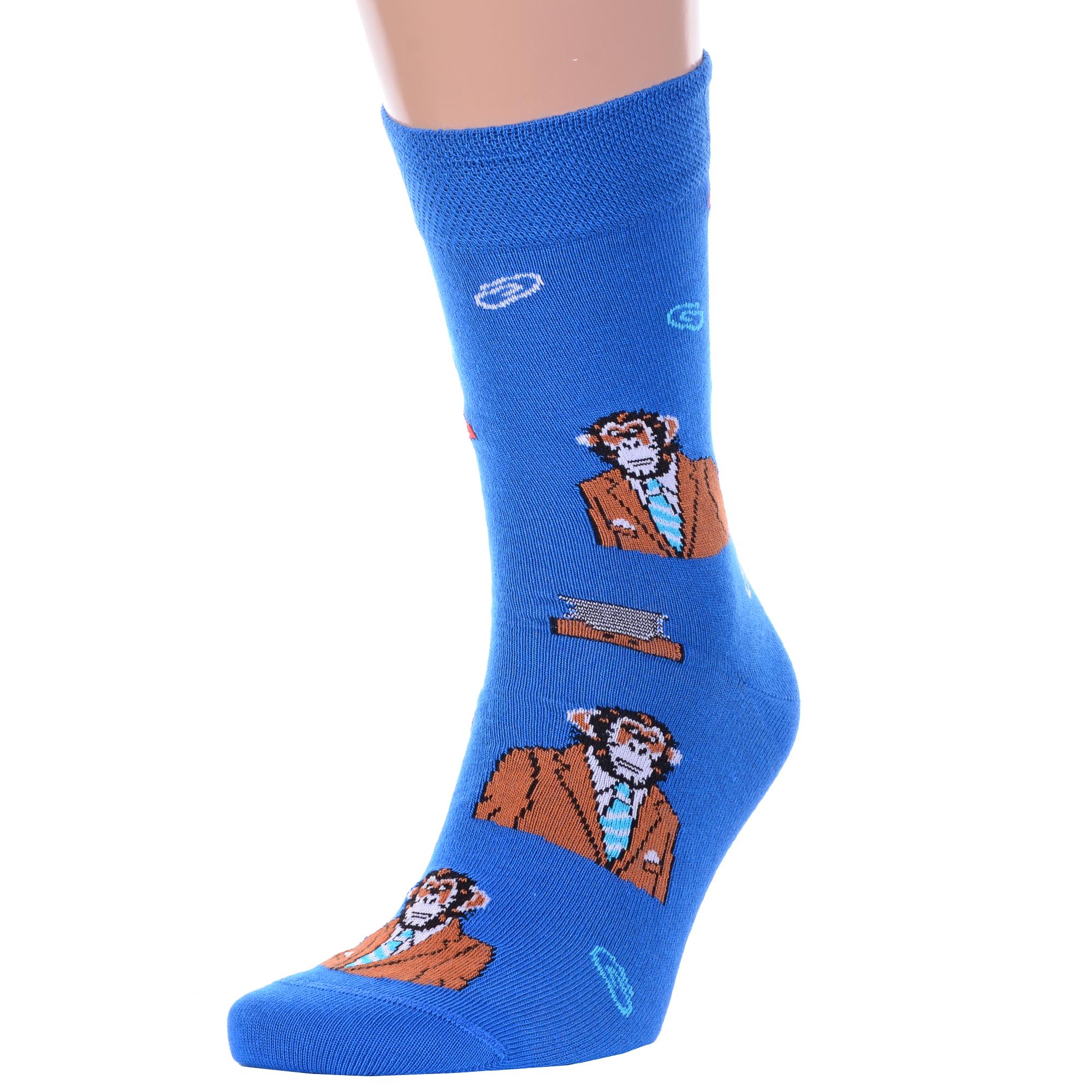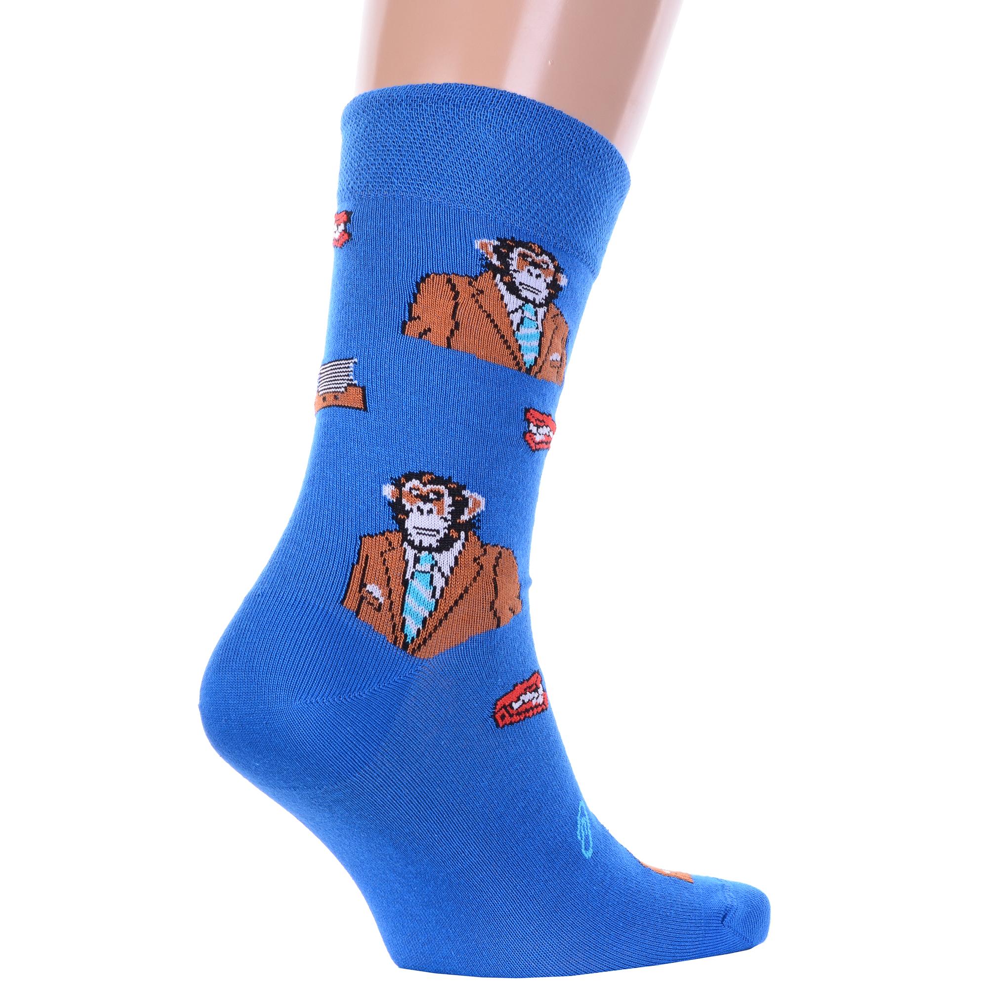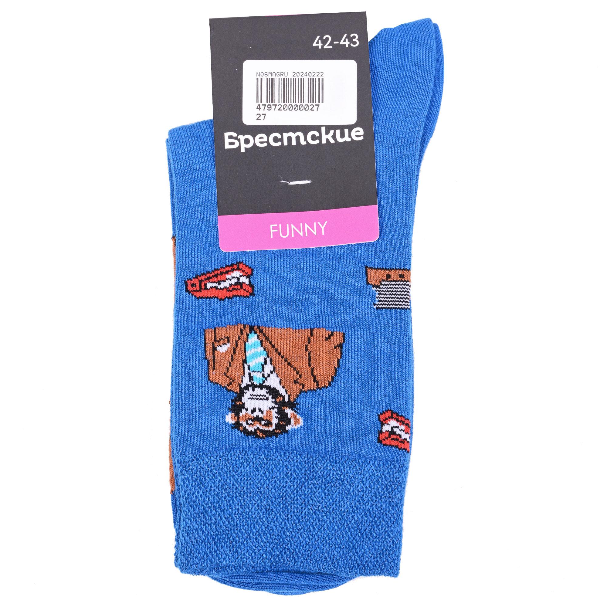 Круглогодичные средней длины мужские носки, цвет синий, повседневные, возможно бесшовные, принт (рисунок): животные, с узором, состав: 70% хлопок, 28% полиамид, 2% эластан, арт. 16С2127. Производитель «Брестский чулочный комбинат ОАО, Беларусь» под брендом «Брестские (бчк)».