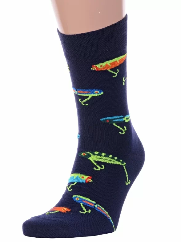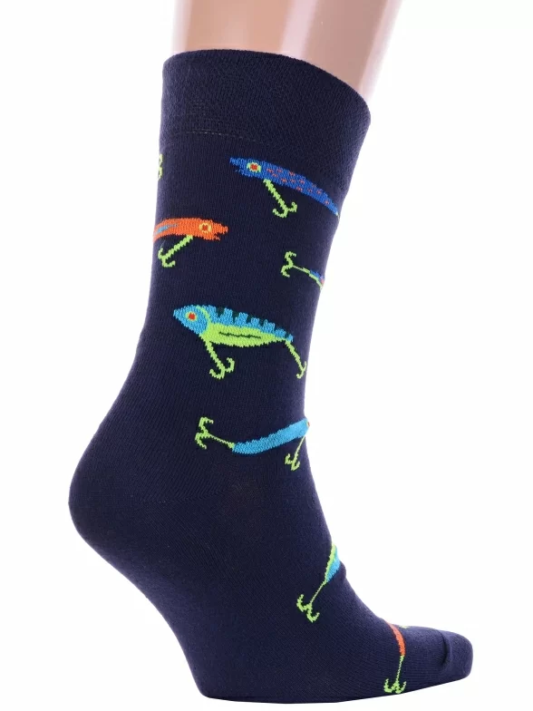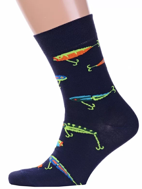 Круглогодичные средней длины мужские носки, цвет темно-синий, повседневные, возможно бесшовные, принт (рисунок): охота / рыбалка, животные, с узором, состав: 70% хлопок, 28% полиамид, 2% эластан, арт. 16С2127. Производитель «Брестский чулочный комбинат ОАО, Беларусь» под брендом «Брестские (бчк)».