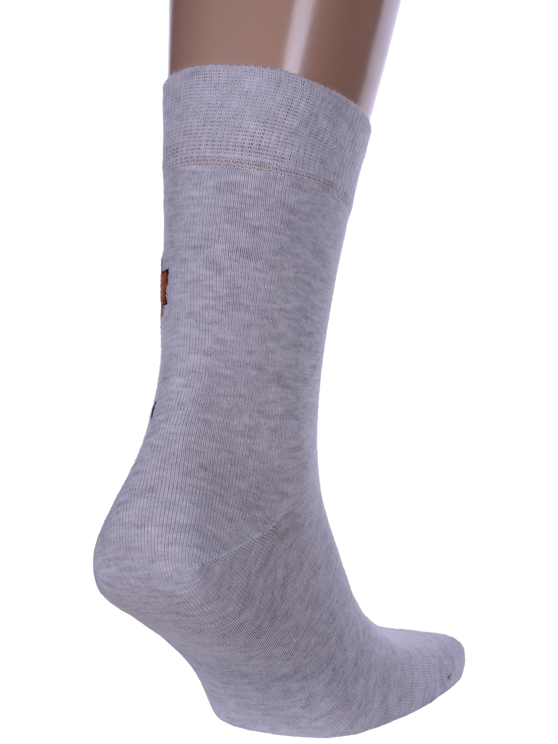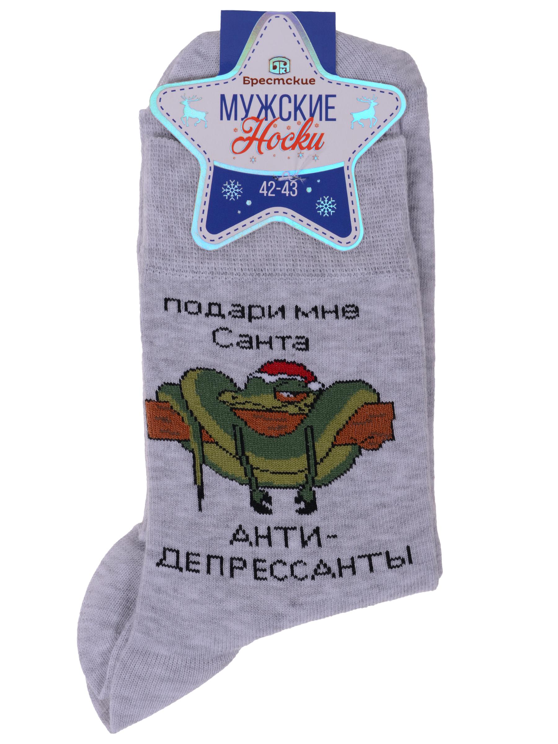 Круглогодичные средней длины мужские носки, цвет серый, шов плоский, принт (рисунок): новый год, состав: 70% хлопок, 28% полиамид, 2% эластан, арт. 20С2146. Производитель «Брестский чулочный комбинат ОАО, Беларусь» под брендом «Брестские (бчк)».
