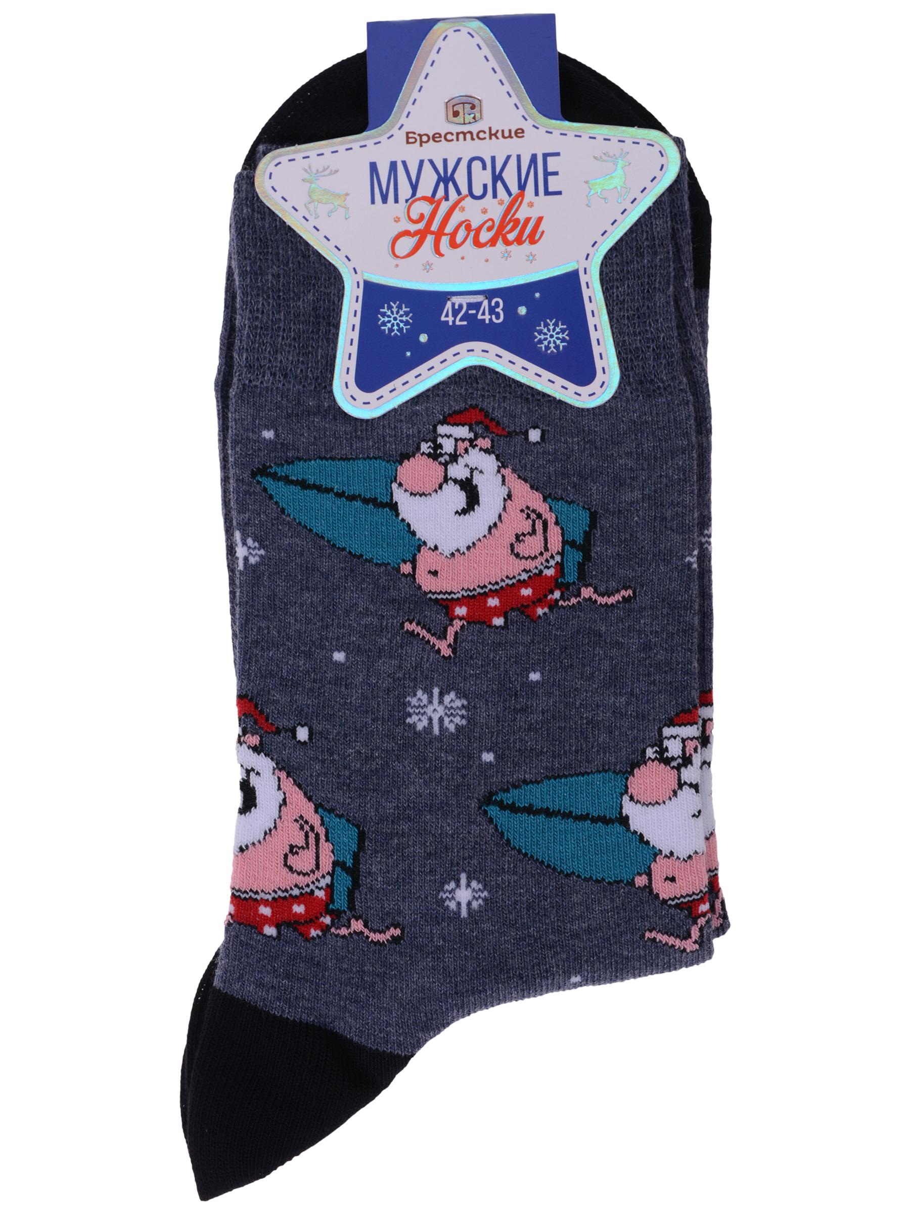 Круглогодичные средней длины мужские носки, цвет серый, шов плоский, принт (рисунок): новый год, состав: 70% хлопок, 28% полиамид, 2% эластан, арт. 20С2146. Производитель «Брестский чулочный комбинат ОАО, Беларусь» под брендом «Брестские (бчк)».