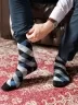 Мужские носки классической длины сделаны из хлопка с добавлением полиамида и эластана. Модель украшена разноцветными пересекающимися полосками, образующими ромбы.
