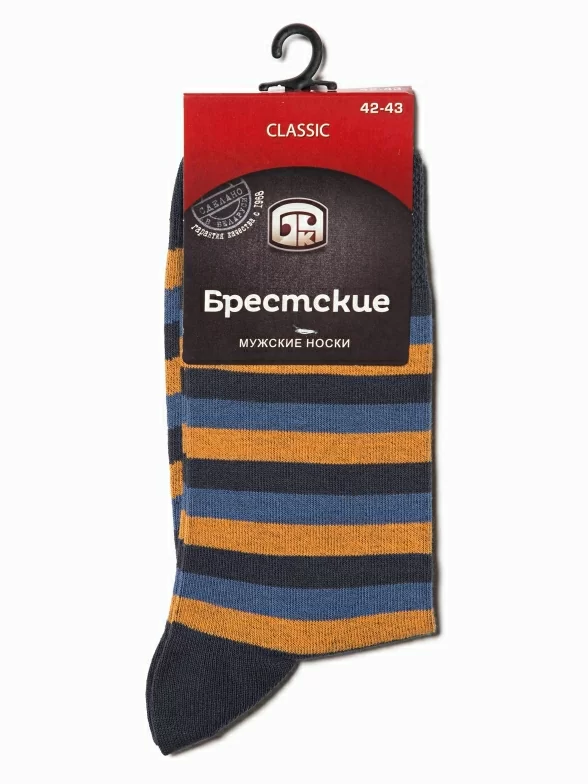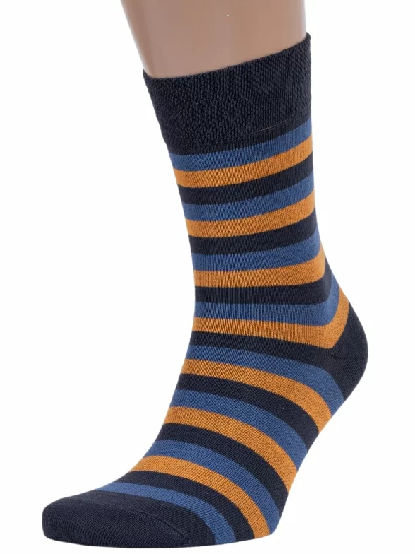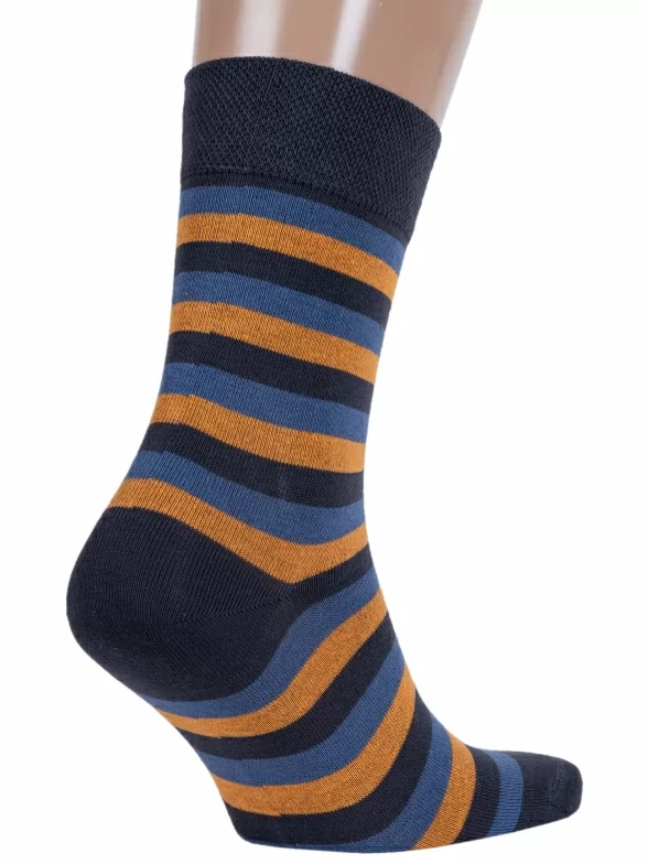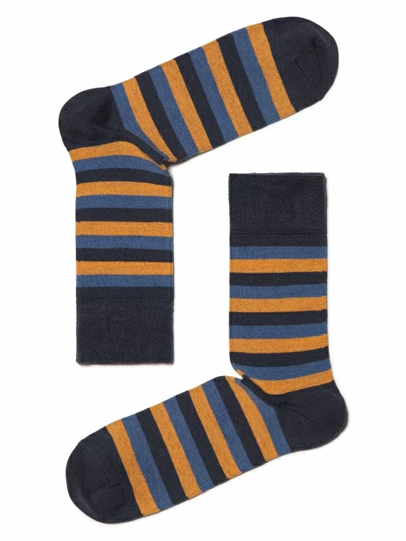 Удобные мужские носки в полоску. Они сделаны из плотного трикотажа и отличаются высокой мягкой резинкой. Носки приятны к телу и хорошо сочетаются с любой одеждой в стиле Casual.