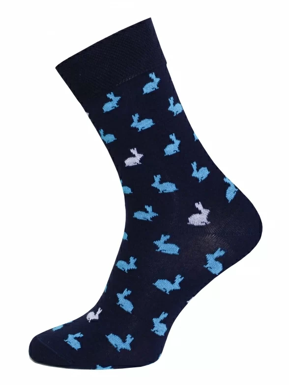 Оригинальные мужские носки классической длины. Они сделаны из качественного хлопкового трикотажа и очень приятны в носке. Носки оформлены необычным принтом с кроликами и станут отличным дополнением веселого образа.