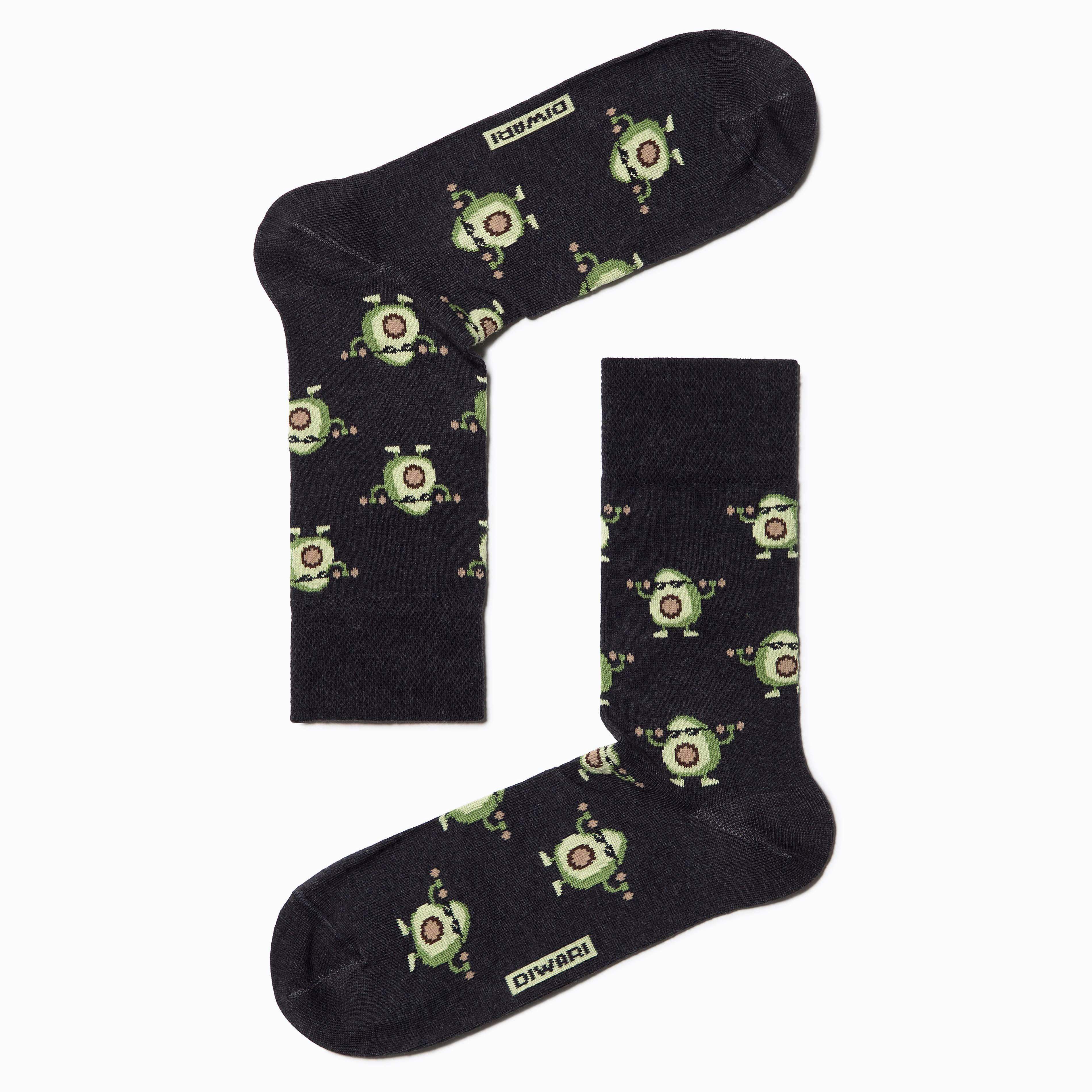 Мужские носки с принтом в виде авокадо в солнечных очках, поднимающего гантели.