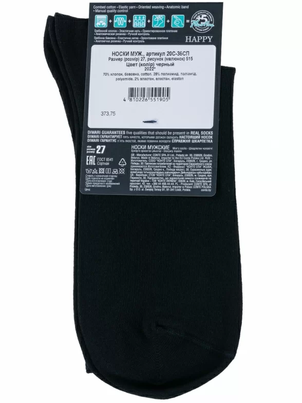 Бренд DiWaRi производится в Беларуси. Носки сохраняют форму и цвет после стирки при температуре до 40 градусов. Артикул 20С-36СП — функциональный вариант для ежедневного использования.