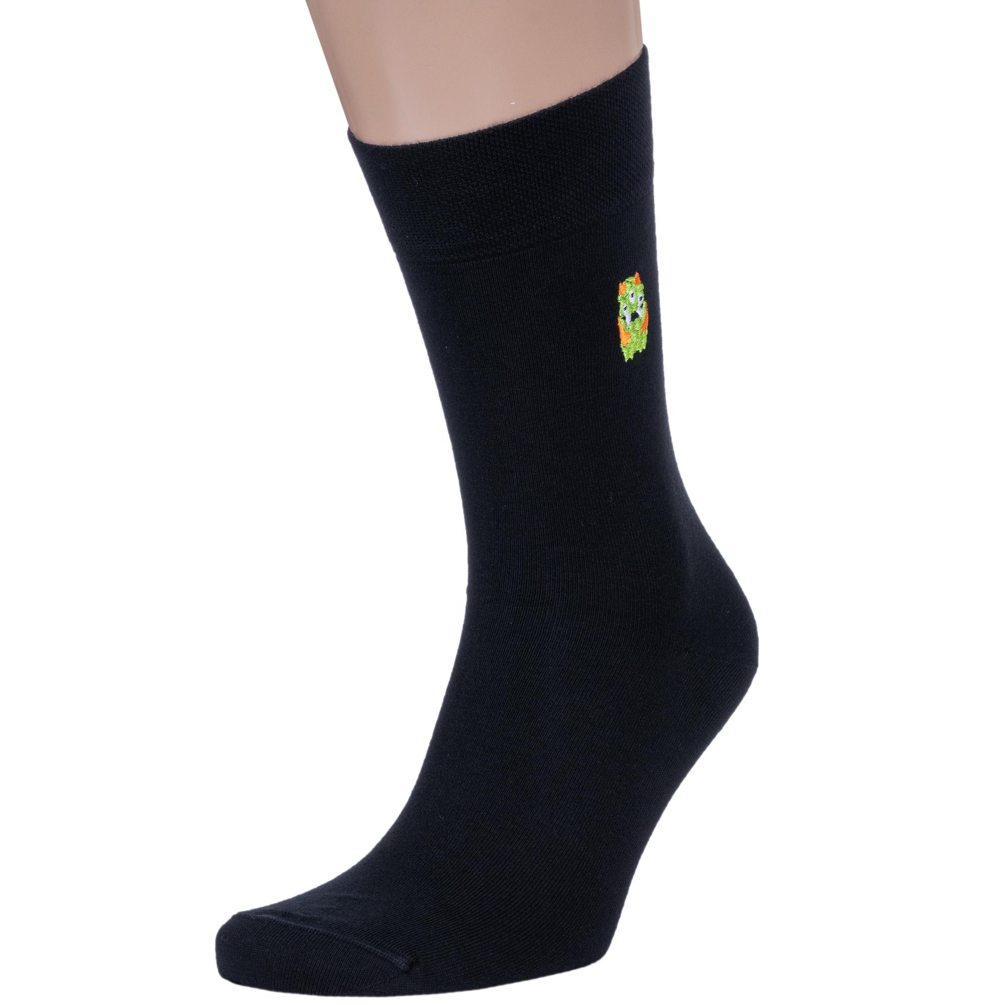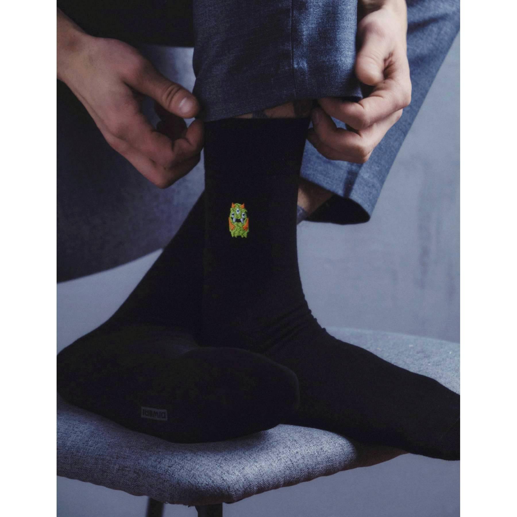 Мужские носки с объемной вышивкой в виде монстрика салатового цвета на паголенке.