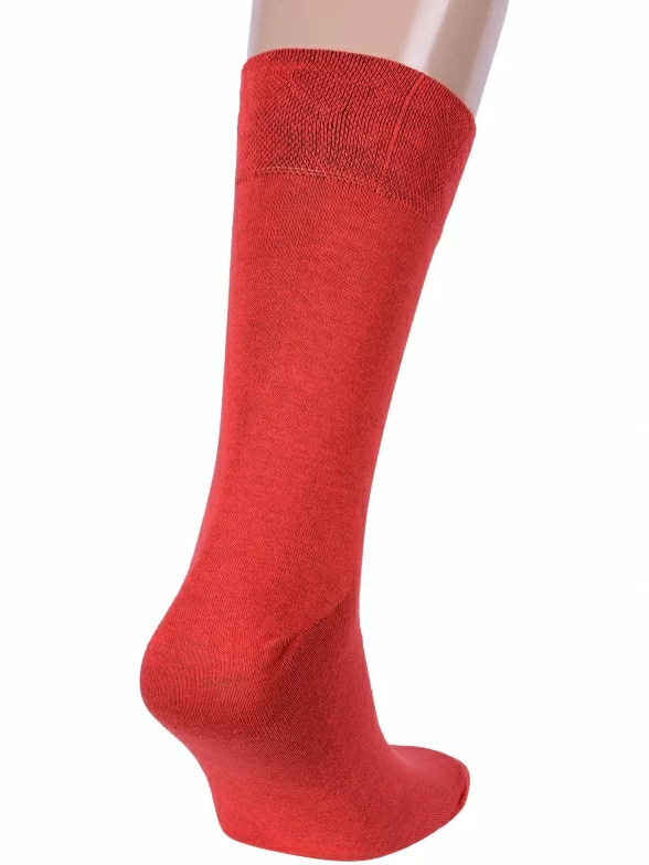Круглогодичные средней длины мужские носки, цвет красный, классические, шов обычный (не бесшовные), принт (рисунок): однотонный, без рисунков/узоров, состав: 82% хлопок, 15% полиамид, 3% эластан, арт. ПН-01Э. Производитель «ИП Рыбалкин В.С., Московская область, г. Щелково» под брендом «Msclub».