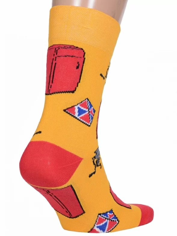 Мужские носки от фабрики VIRTUOSO украшены рисунком в виде пушек и воздушных змеев. Модель связана из итальянской пряжи на основе хлопка.