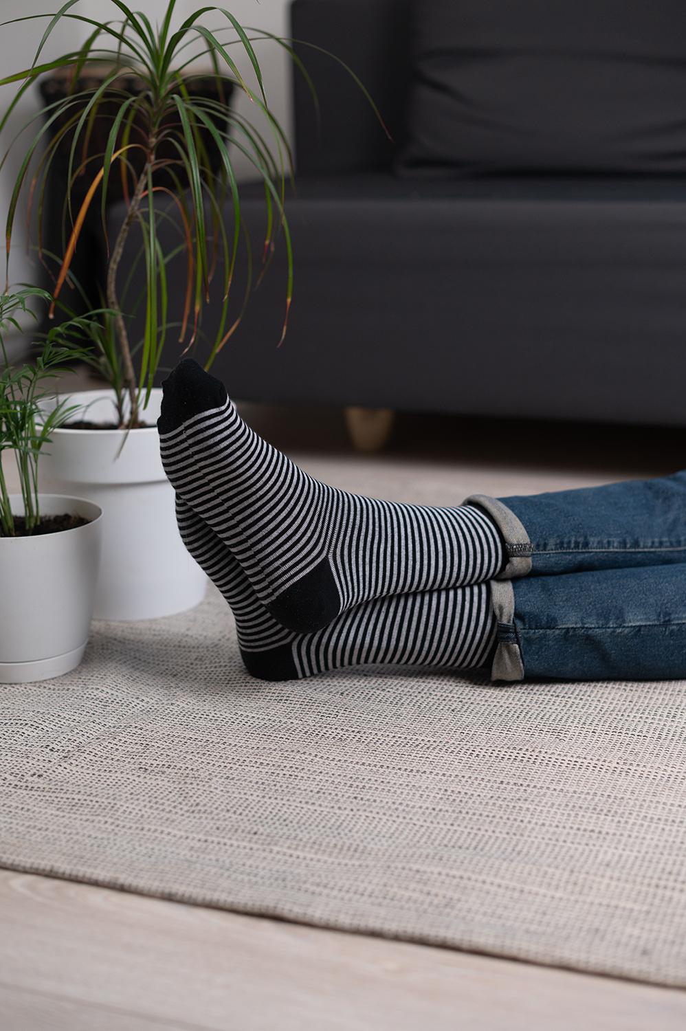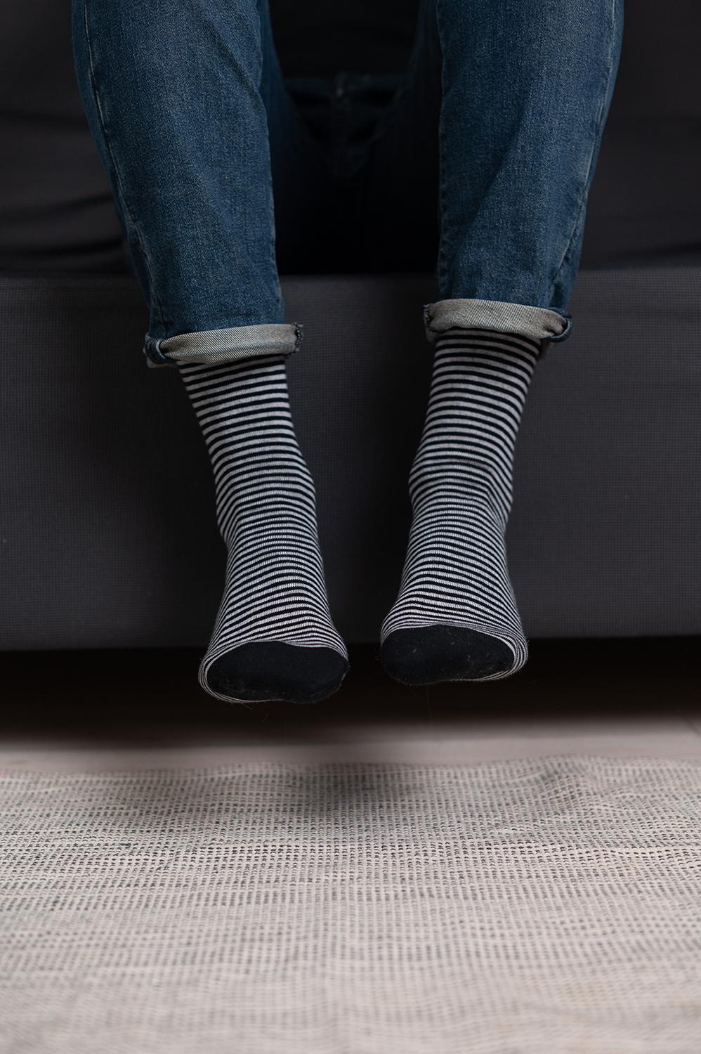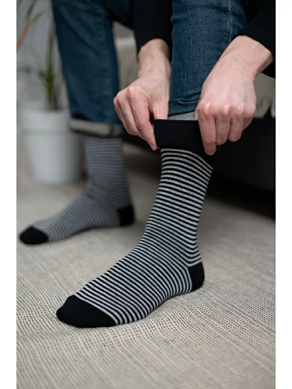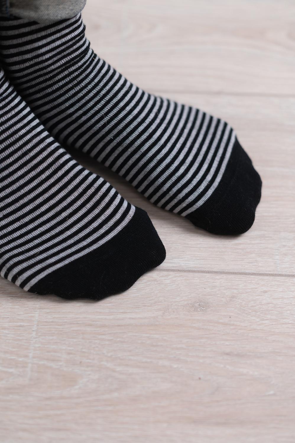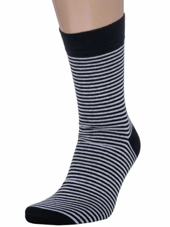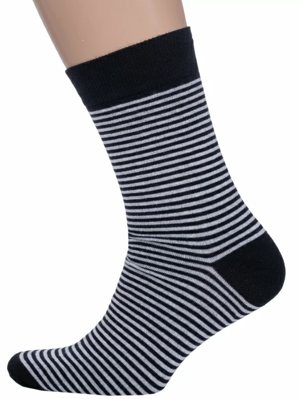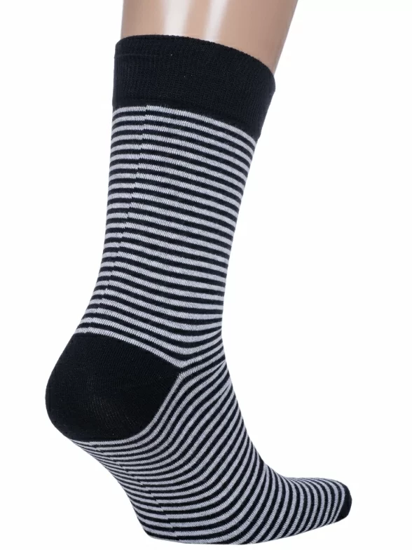 Круглогодичные средней длины мужские носки, цвет черный, классические, шов обычный (не бесшовные), принт (рисунок): полоски, с узором, состав: 80% хлопок, 17% полиамид, 3% эластан, арт. FP_006. Производитель «Flappers Peppers» Россия под брендом «Flappers peppers».