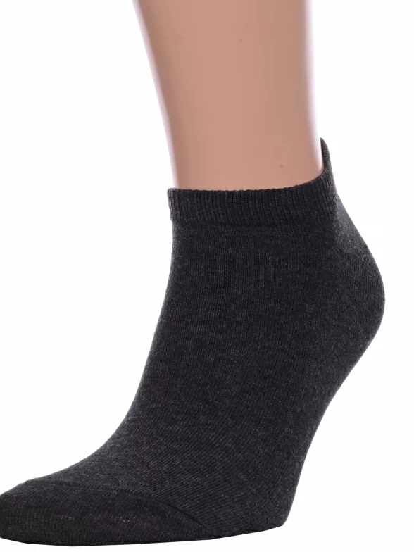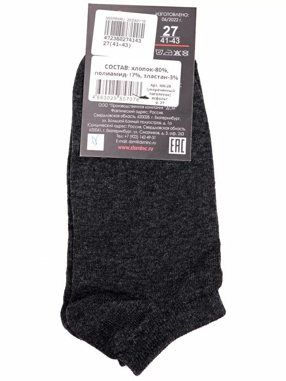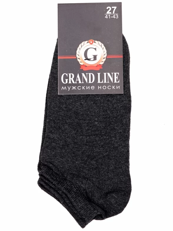 Межсезонные или летние короткие мужские носки, цвет темно-серый, классические, шов обычный (не бесшовные), принт (рисунок): однотонный, без рисунков/узоров, состав: 80% хлопок, 17% полиамид, 3% эластан, арт. МК-29. Производитель «ООО Производственная компания "ДСМ", Россия» под брендом «Grand line».