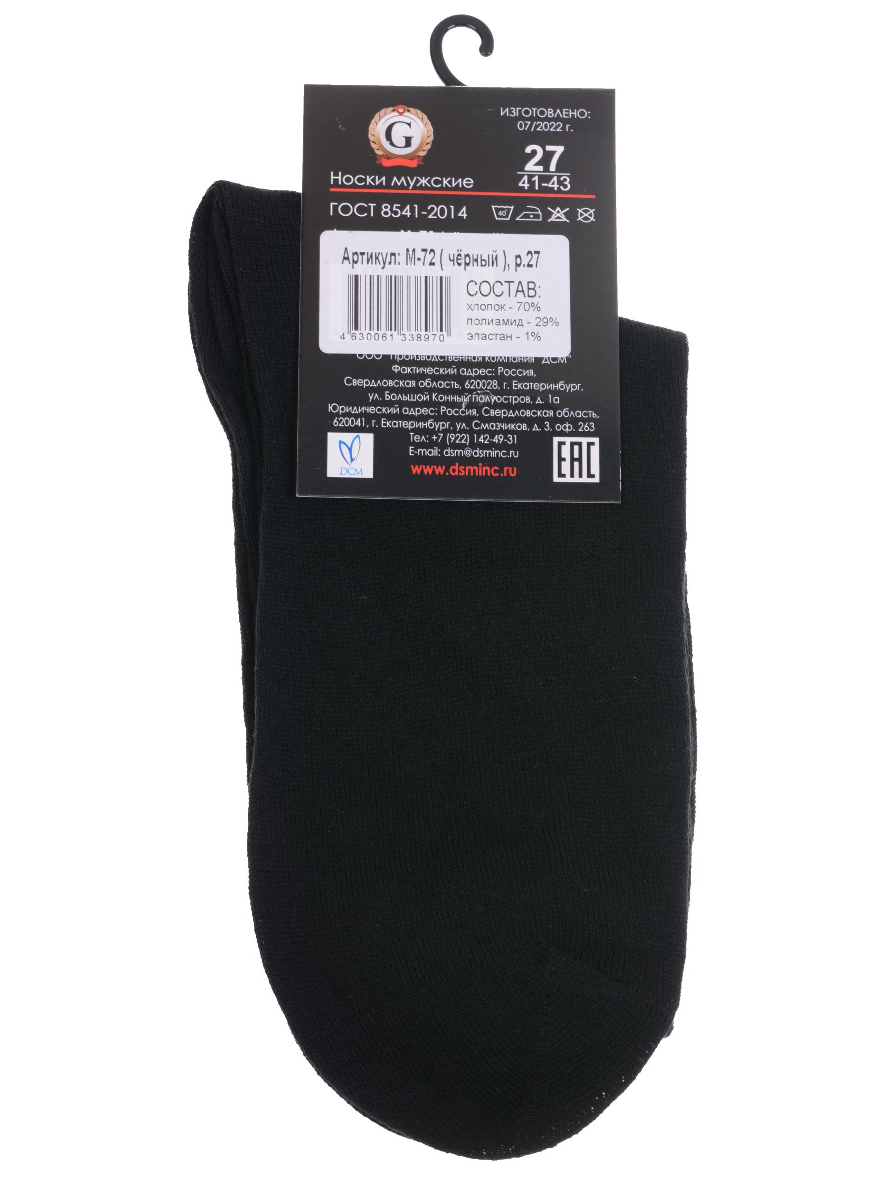 Круглогодичные средней длины мужские носки, цвет черный, классические, шов обычный (не бесшовные), принт (рисунок): без рисунков/узоров, состав: 70% хлопок, 29% полиамид, 1% эластан, арт. М-72. Производитель «ООО Производственная компания "ДСМ", Россия» под брендом «Grand line».