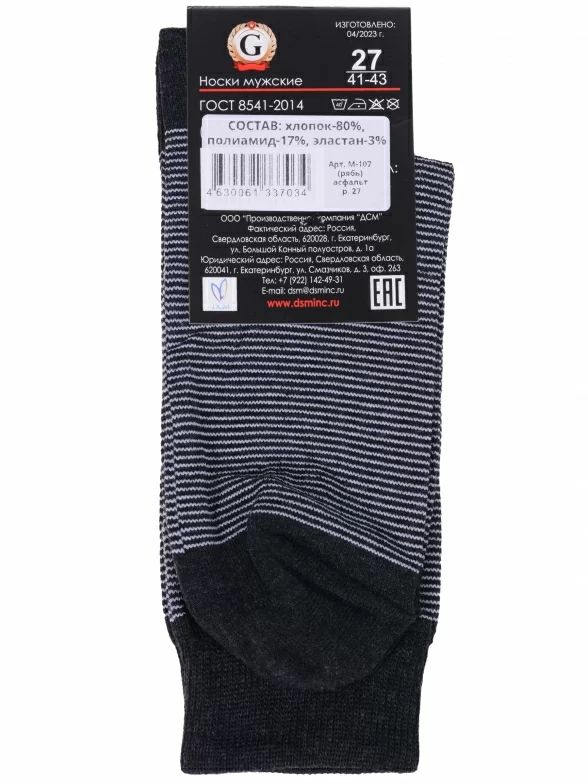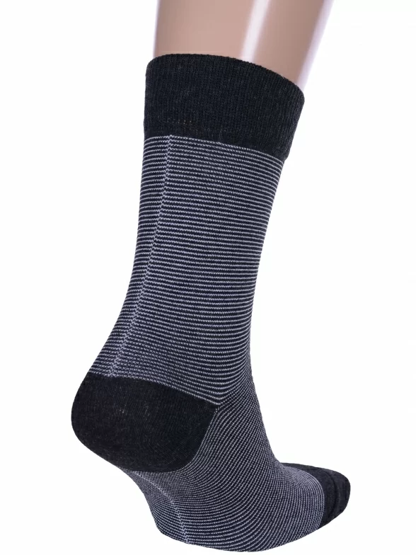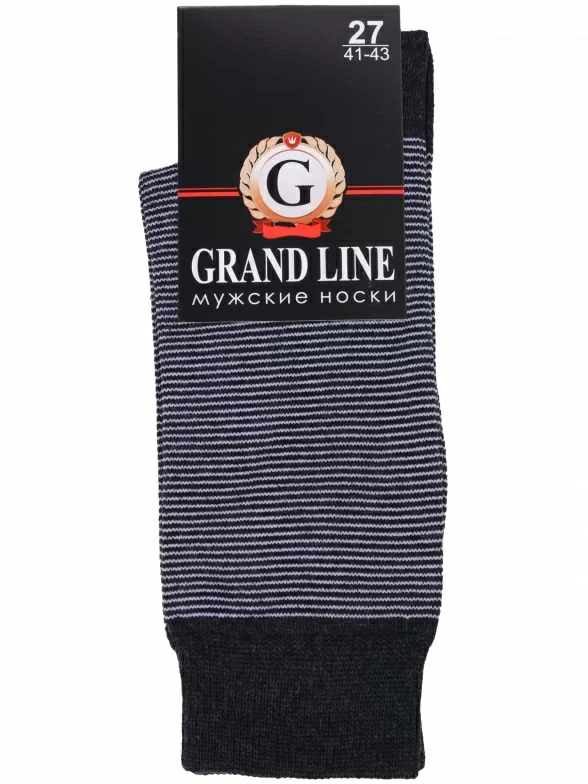 Круглогодичные средней длины мужские носки, цвет темно-серый, классические, шов обычный (не бесшовные), принт (рисунок): полоски, состав: 80% хлопок, 17% полиамид, 3% эластан, арт. М-107. Производитель «ООО Производственная компания "ДСМ", Россия» под брендом «Grand line».