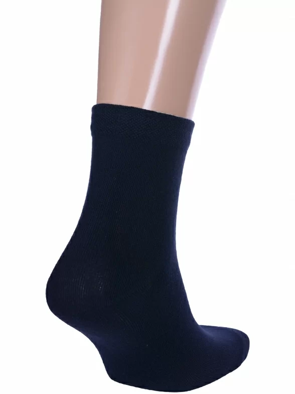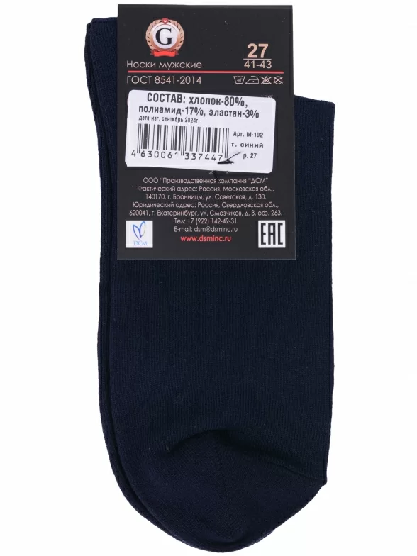 Межсезонные или летние укороченные мужские носки, цвет темно-синий, классические, шов обычный (не бесшовные), принт (рисунок): однотонный, без рисунков / узоров, состав: 80% хлопок, 17% полиамид, 3% эластан, арт. М-102. Производитель «ООО Производственная компания "ДСМ", Россия» под брендом «Grand line».