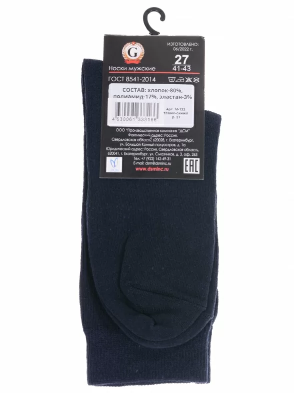 Круглогодичные средней длины мужские носки, цвет темно-синий, классические, шов обычный (не бесшовные), принт (рисунок): небольшой рисунок, состав: 80% хлопок, 17% полиамид, 3% эластан, арт. М-132. Производитель «ООО Производственная компания "ДСМ", Россия» под брендом «Grand line».