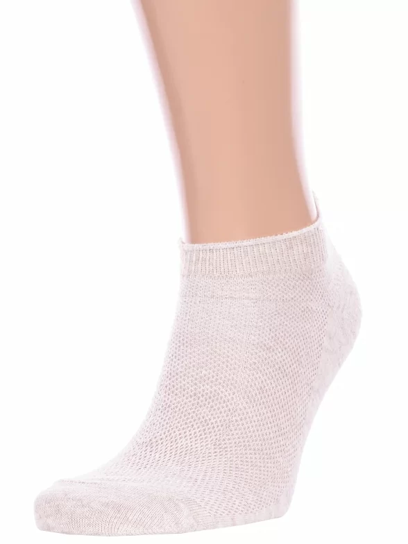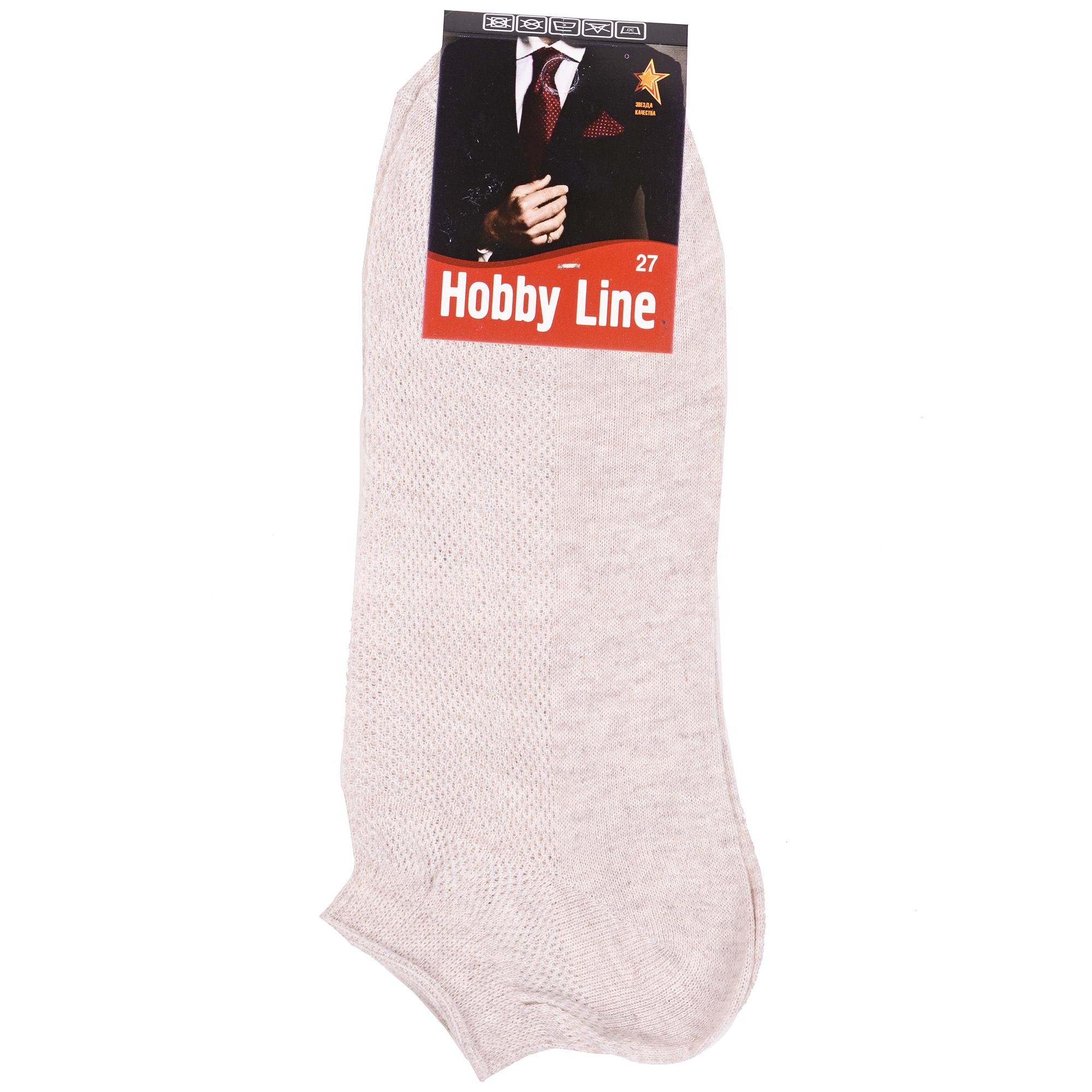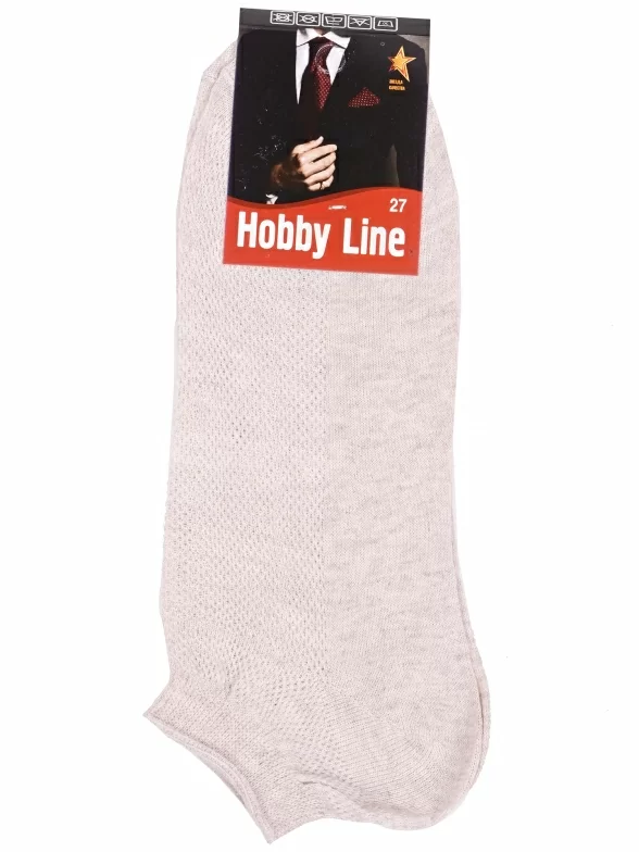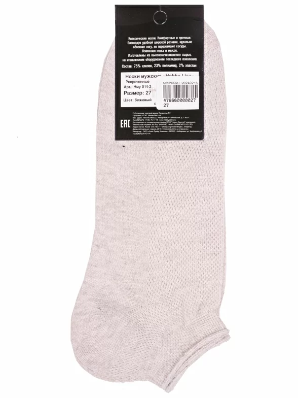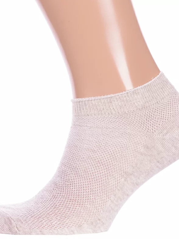 Летние короткие мужские носки, цвет бежевый, в сеточку, классические, шов обычный (не бесшовные), принт (рисунок): однотонный, без рисунков/узоров, состав: 75% хлопок, 23% полиамид, 2% эластан, арт. Нму014-2. Производитель «Китай, страна бренда - Россия» под брендом «Hobby line».