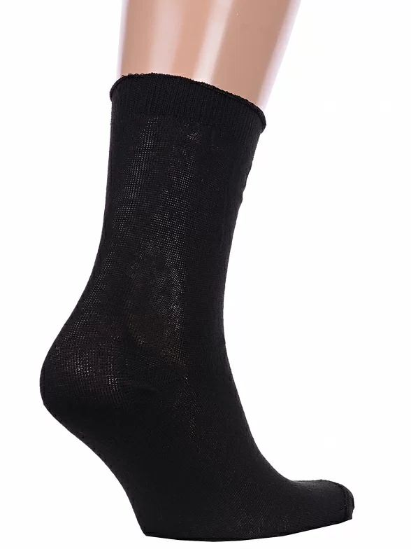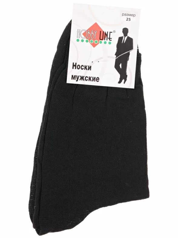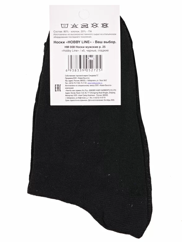 Круглогодичные укороченные мужские носки, цвет черный, классические, шов обычный (не бесшовные), принт (рисунок): однотонный, без рисунков/узоров, состав: 80% хлопок, 20% полиамид, арт. Нм008. Производитель «Китай, страна бренда - Россия» под брендом «Hobby line».